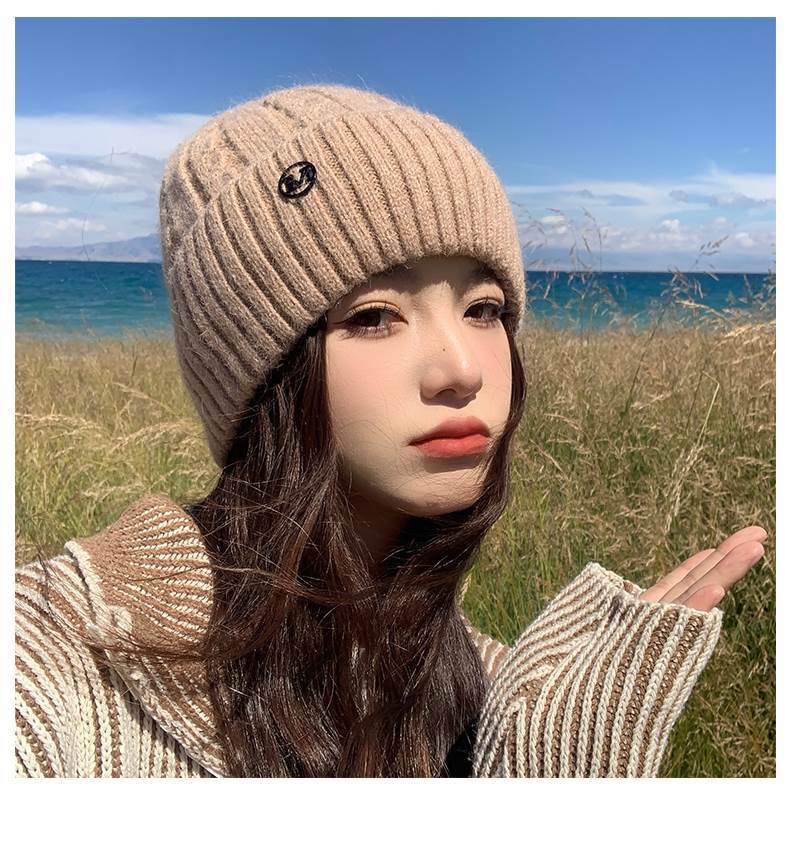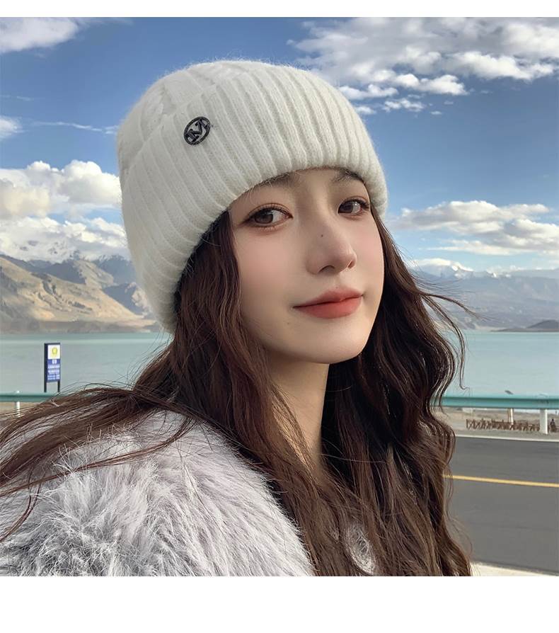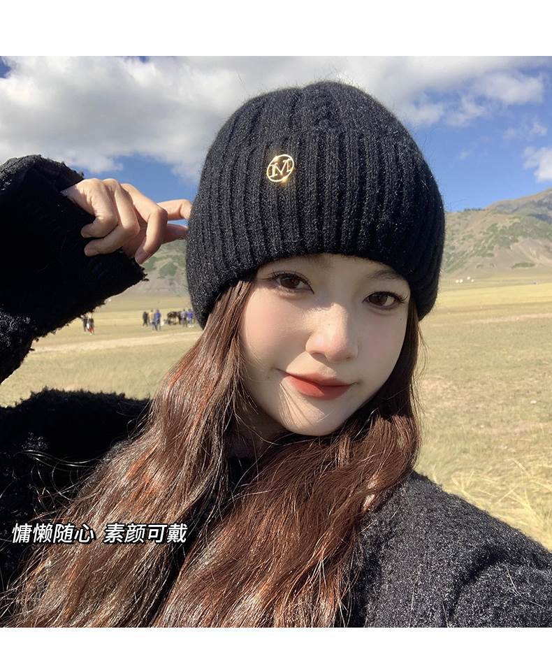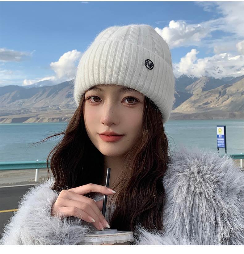 Gorro de Punto Suave de Color Sólido para Mujer Invierno Grueso Cálido Protección para las Orejas Gorro Pulóver Letra Simple Versátil Gorro de Lana para Hombre