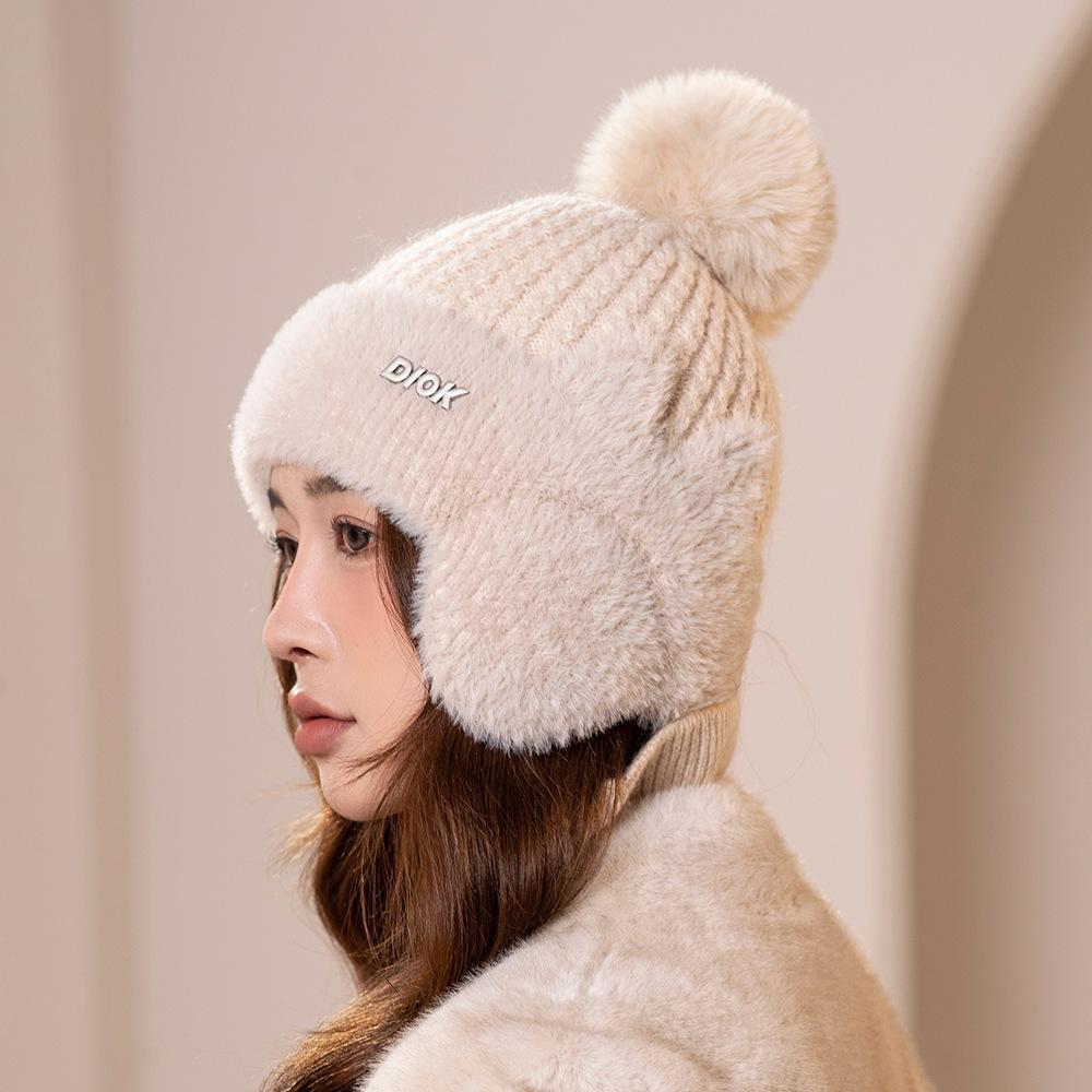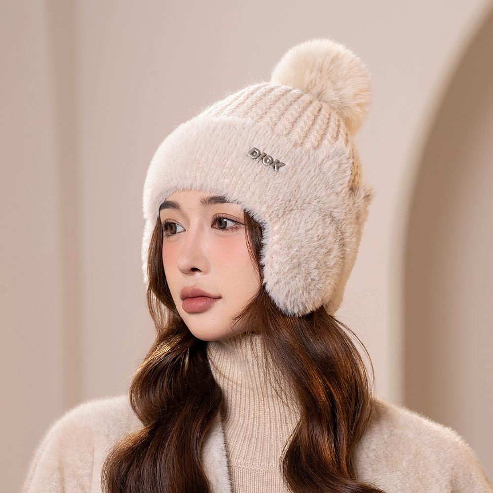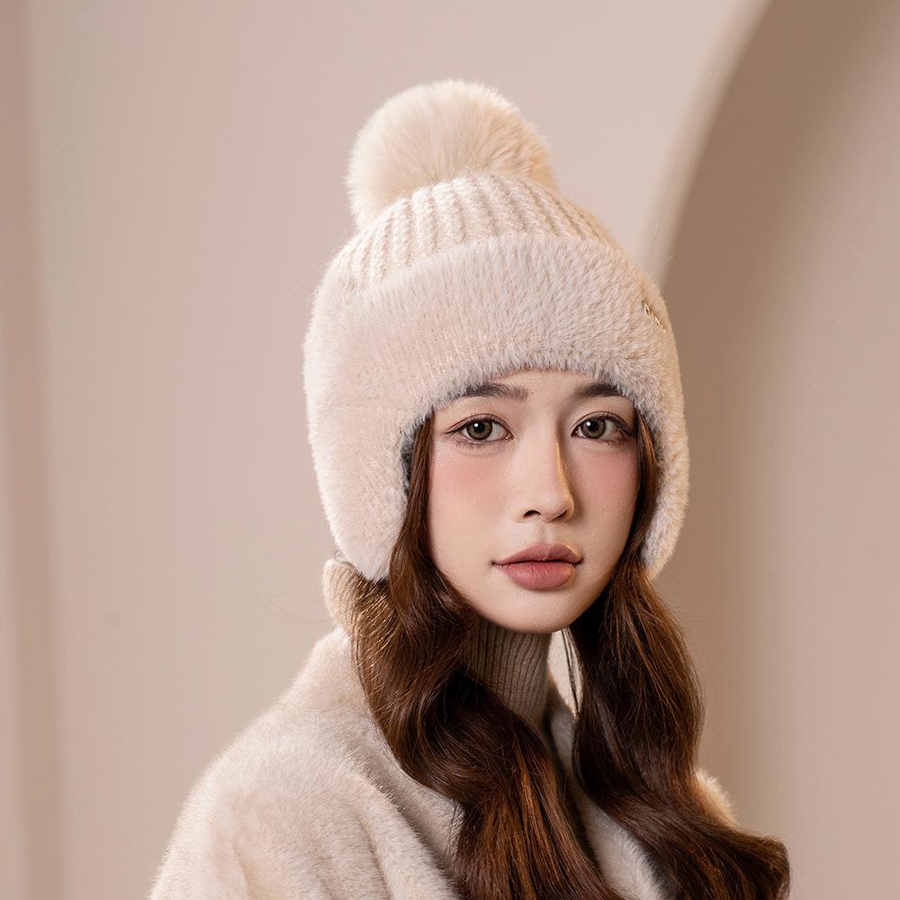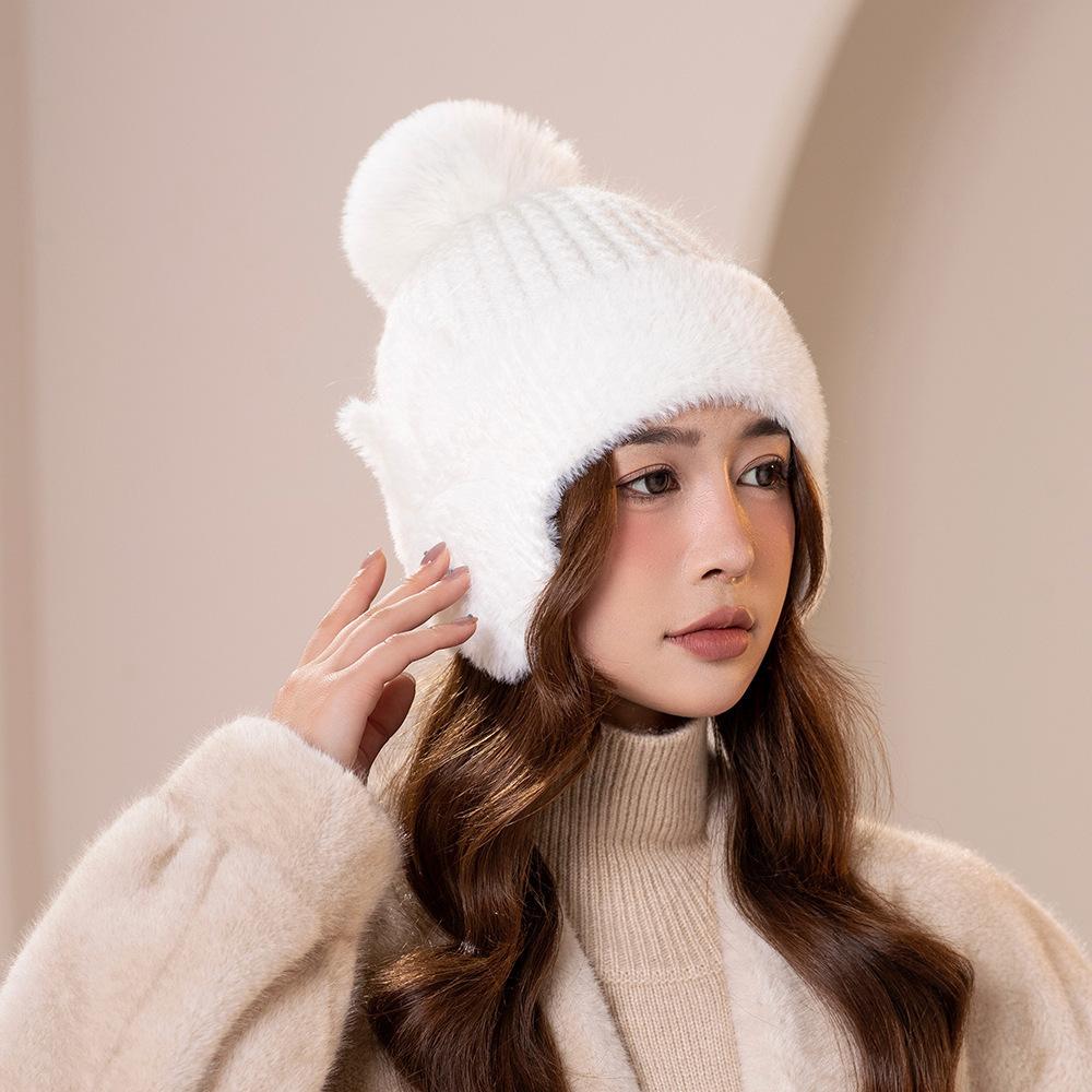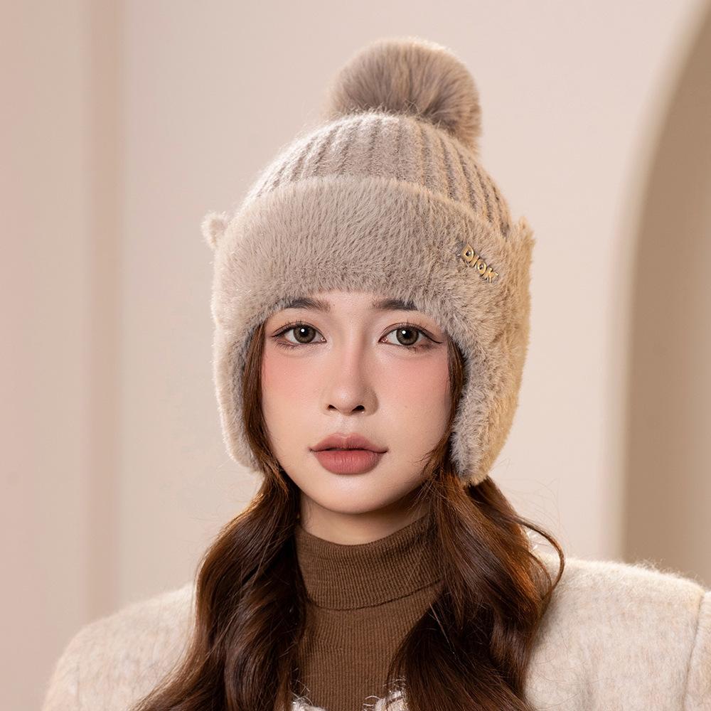 Invierno Nuevo Color Block Orejeras de Piel de Zorro Sombrero de Lana Estilo Coreano para Mujer Simple Forrado de Vellón Grueso Cálido Sombrero de Punto Tendencia