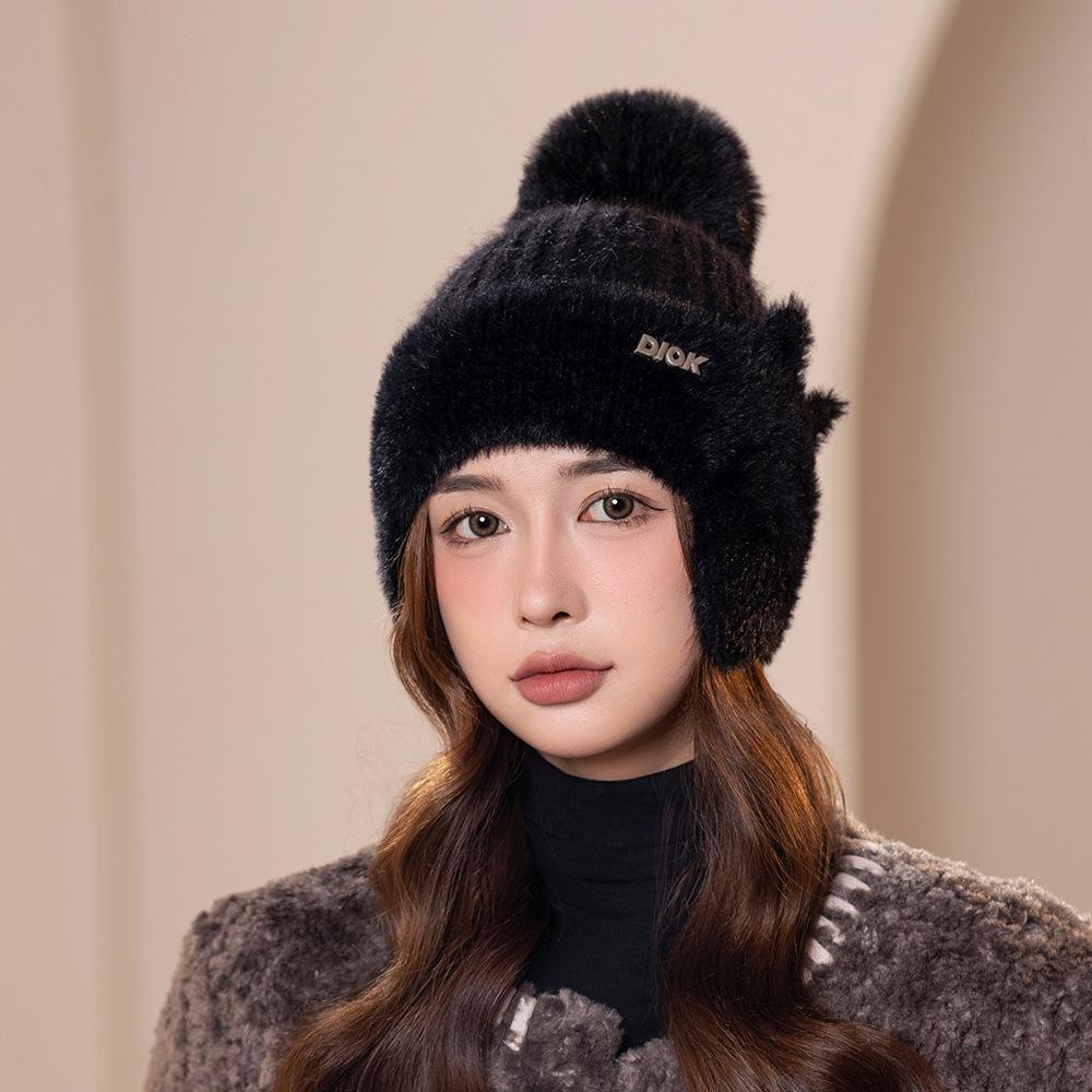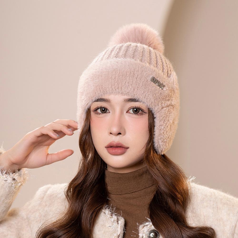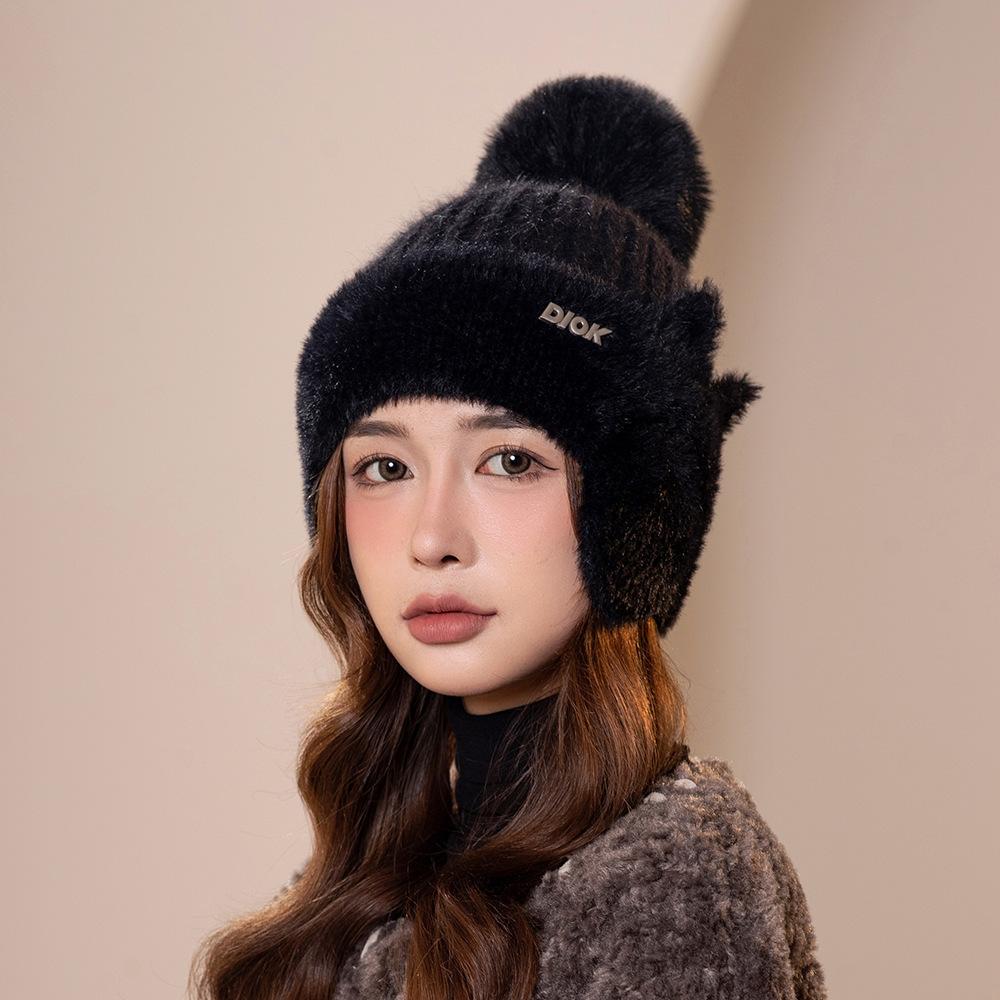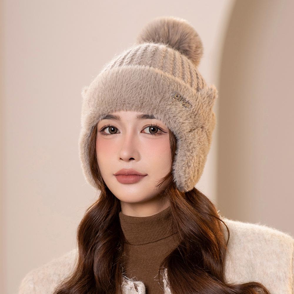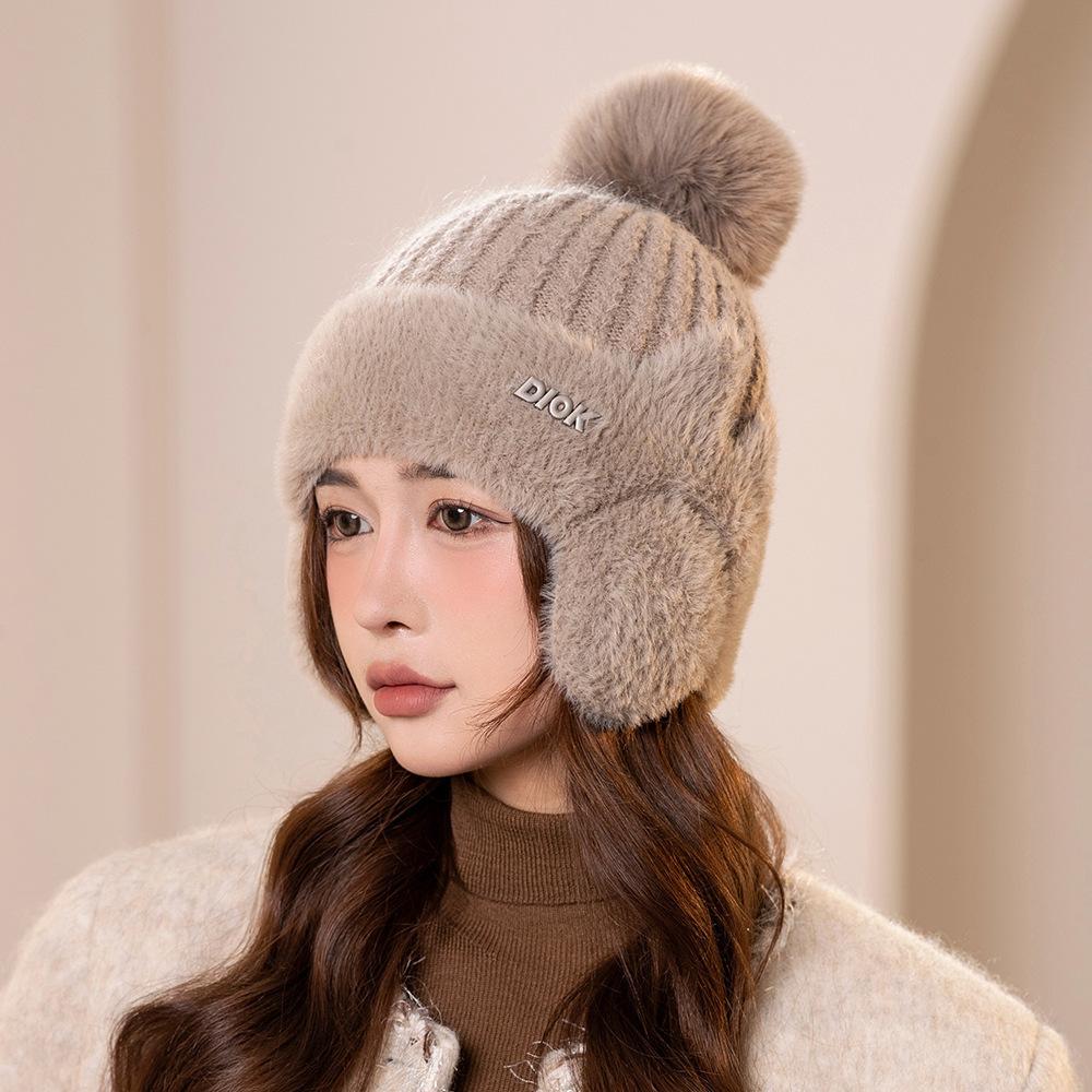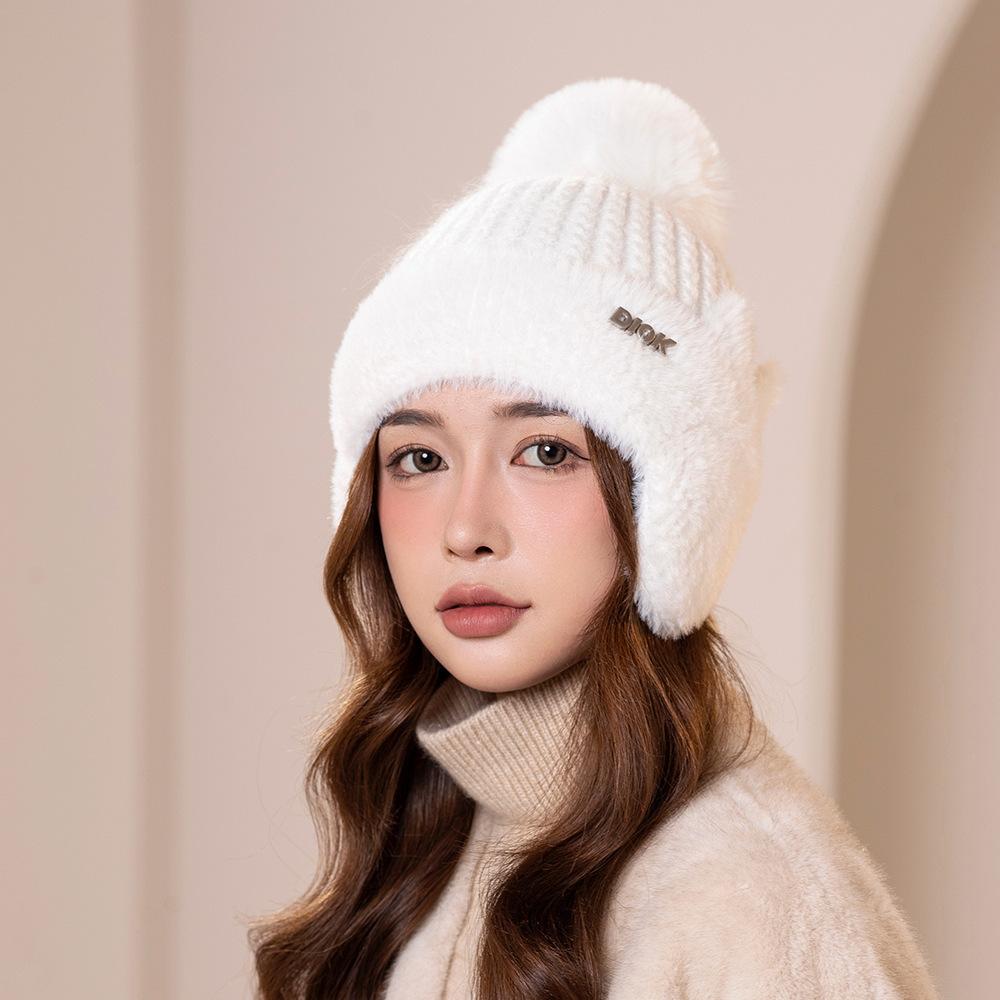 Invierno Nuevo Color Block Orejeras de Piel de Zorro Sombrero de Lana Estilo Coreano para Mujer Simple Forrado de Vellón Grueso Cálido Sombrero de Punto Tendencia
