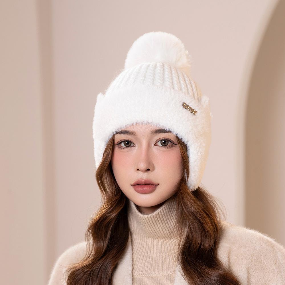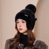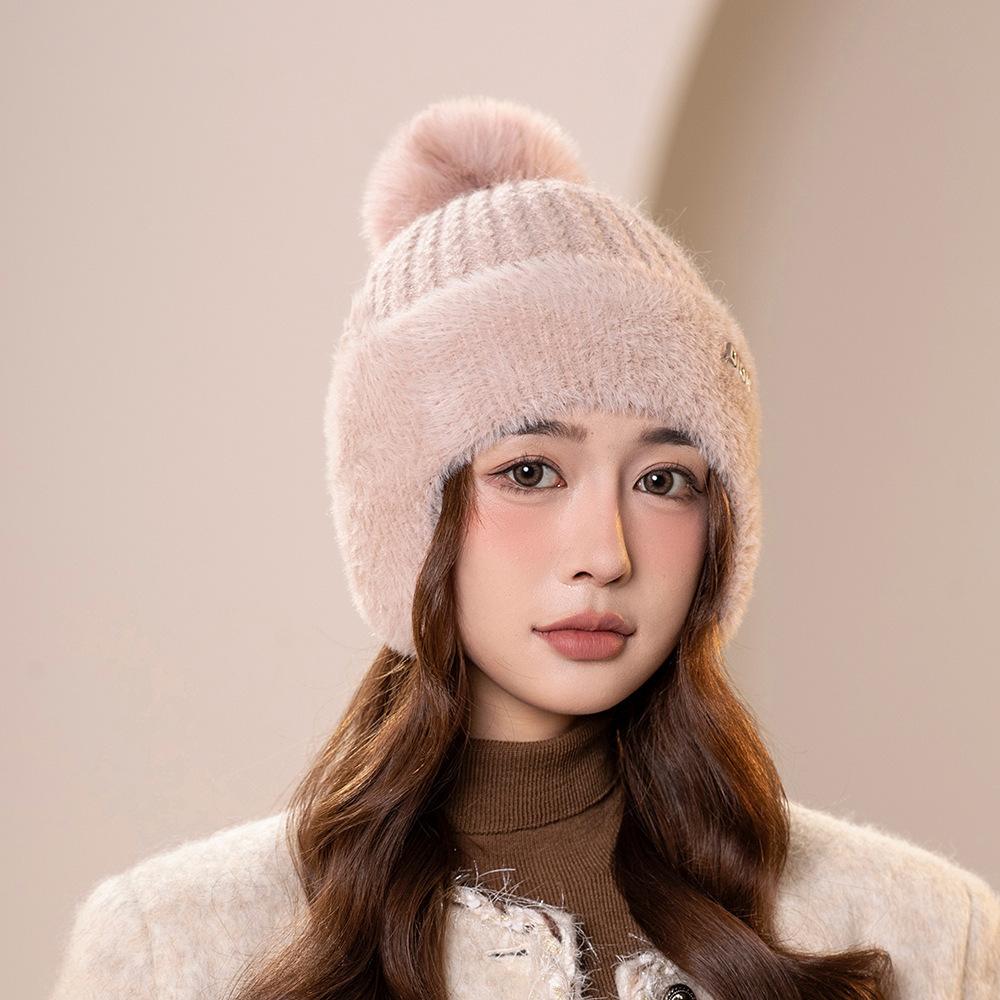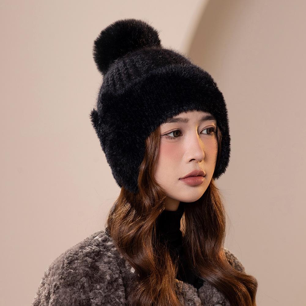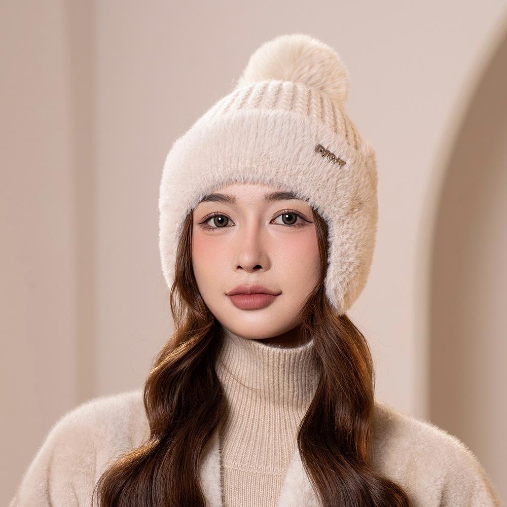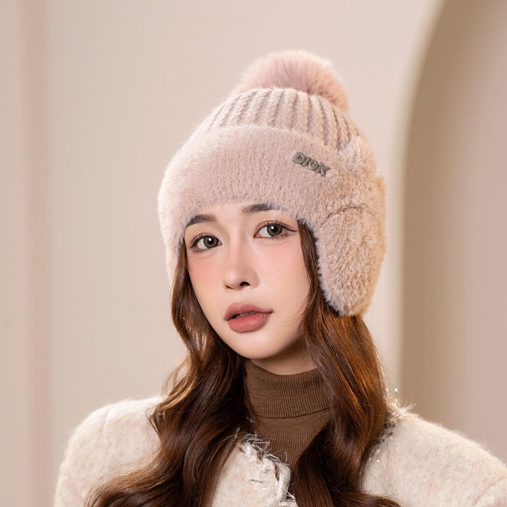 Invierno Nuevo Color Block Orejeras de Piel de Zorro Sombrero de Lana Estilo Coreano para Mujer Simple Forrado de Vellón Grueso Cálido Sombrero de Punto Tendencia