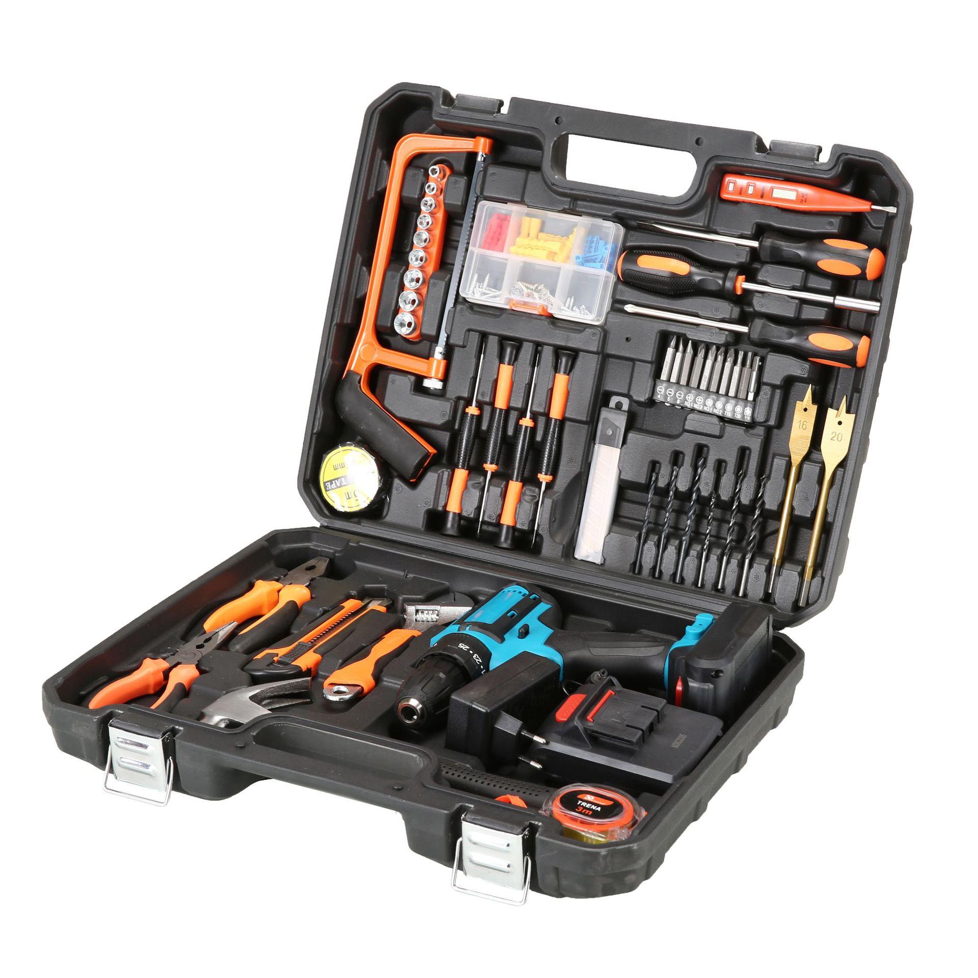 Nuevo juego combinado de herramientas de hardware multifunción para mantenimiento de 124 piezas, taladro eléctrico de impacto de litio, caja de herramientas, venta al por mayor