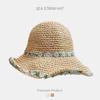 Khaki [broken flower green leaves-straw hat]