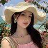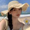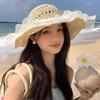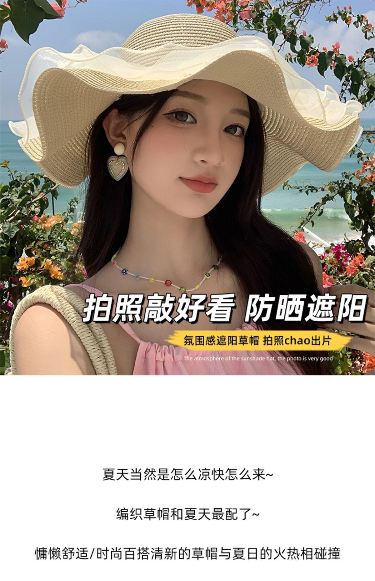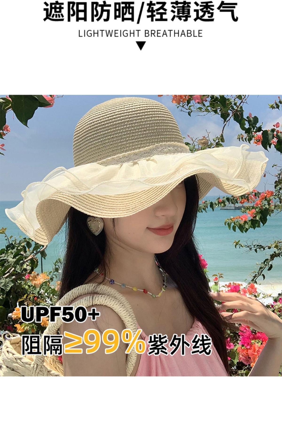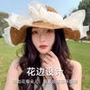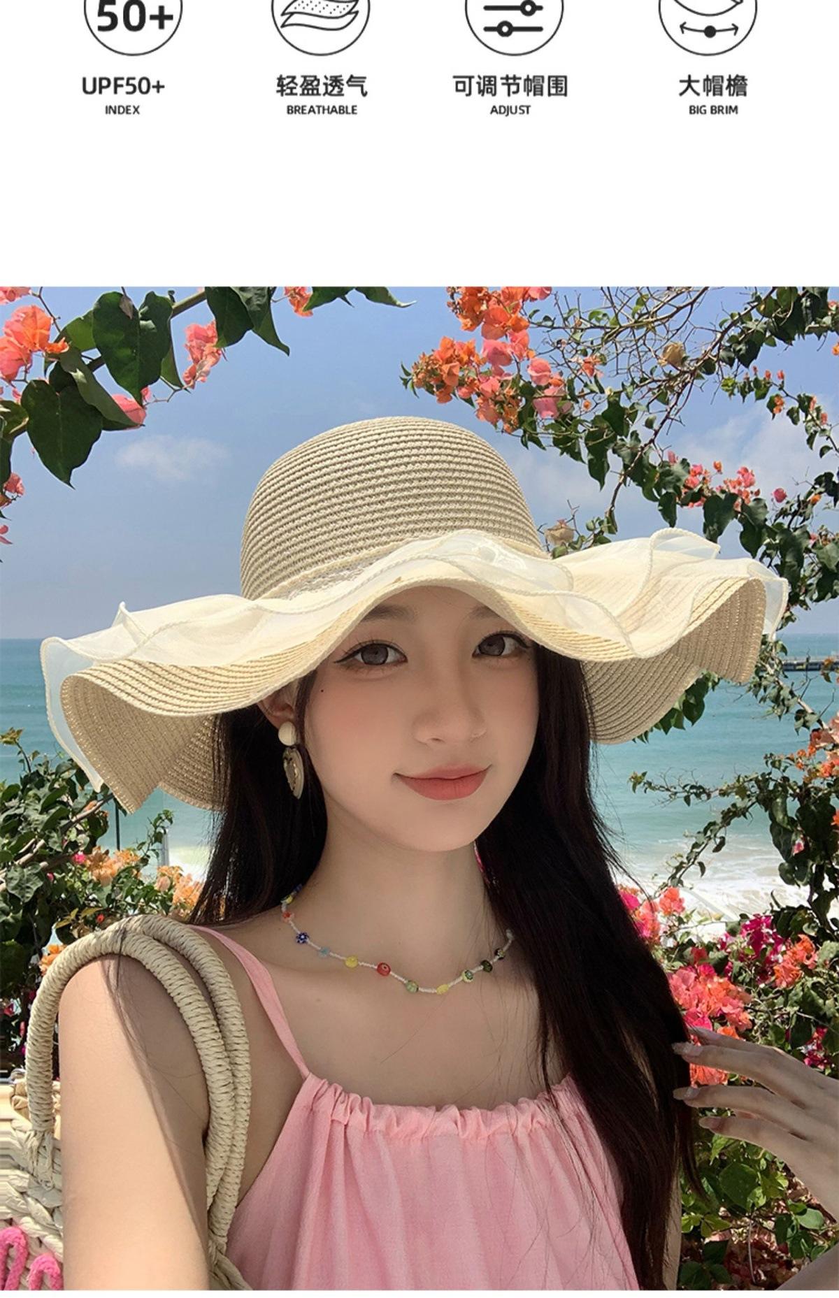 Sombrero de Sol de Paja con Encaje para Mujer con Ala Ancha, Sombrero de Paja para Viaje de Verano, Sombrero de Protección Solar para Toda la Cara para la Playa, Moderno