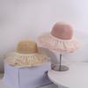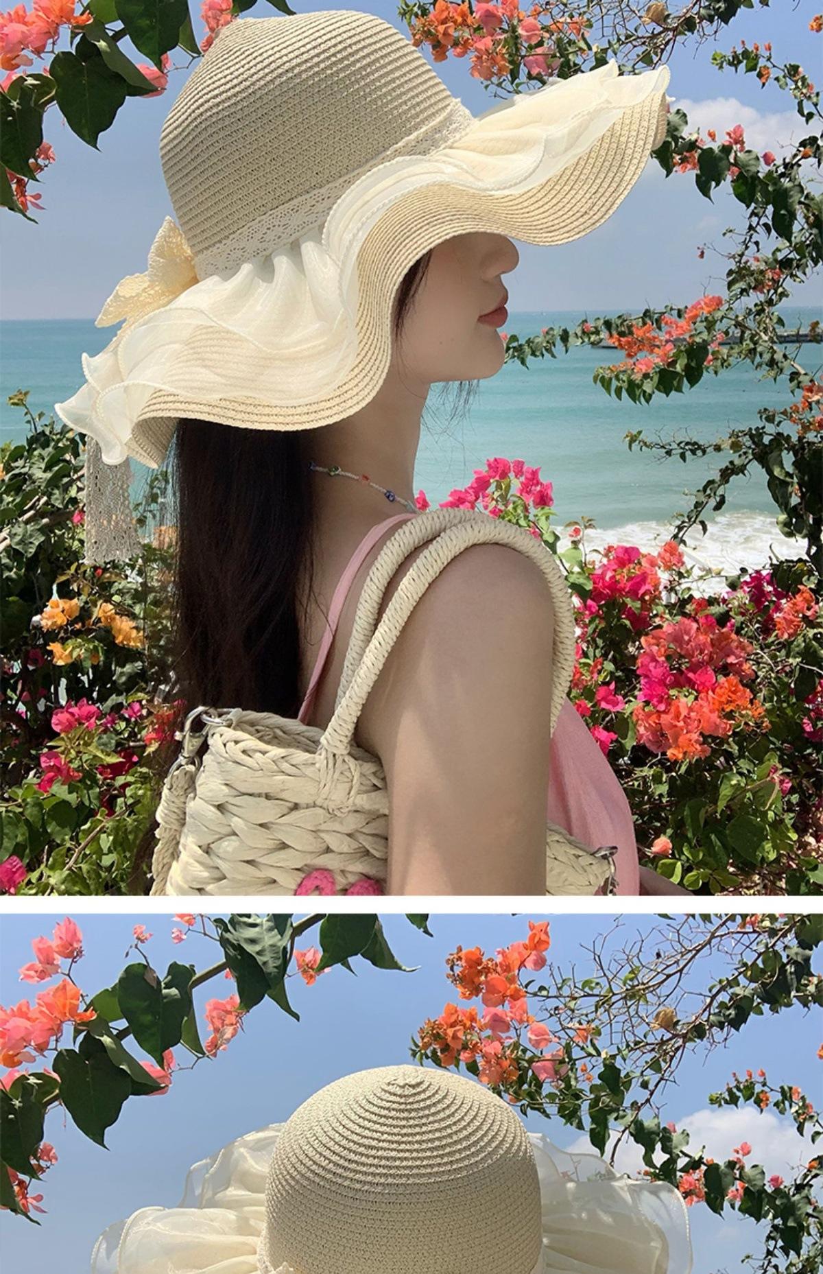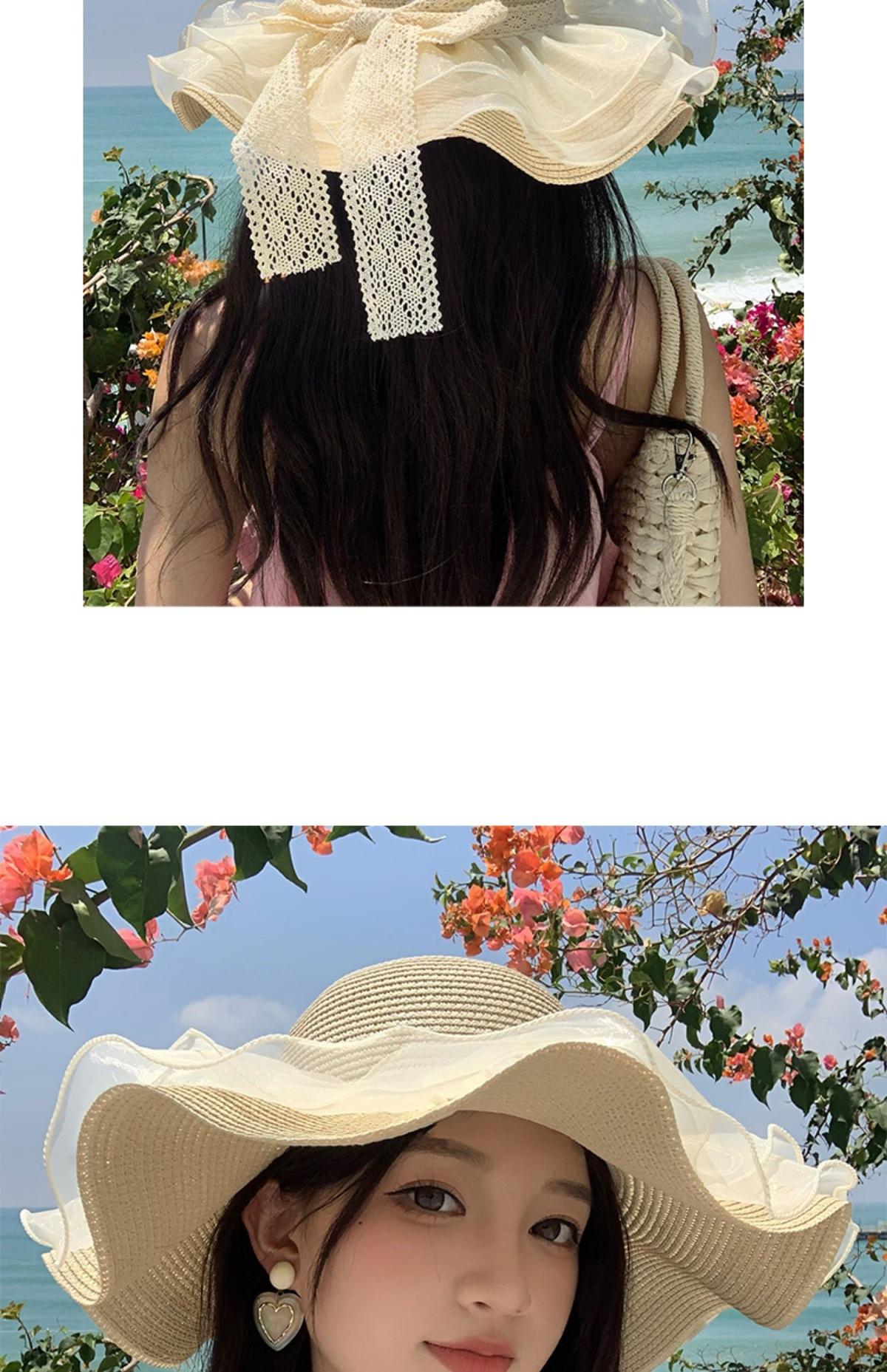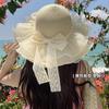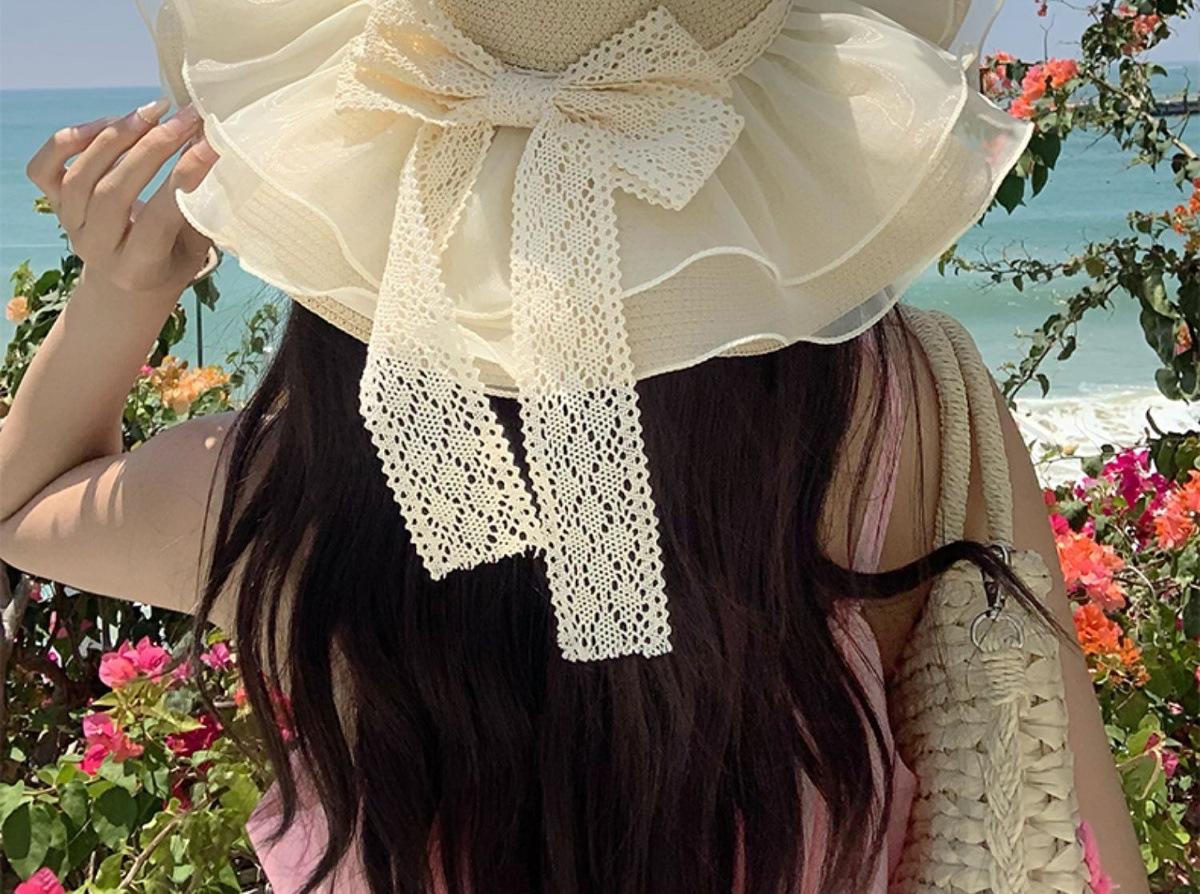 Beige [double-layer lace - bow straw hat]