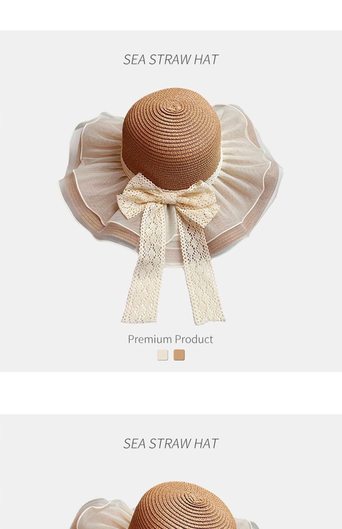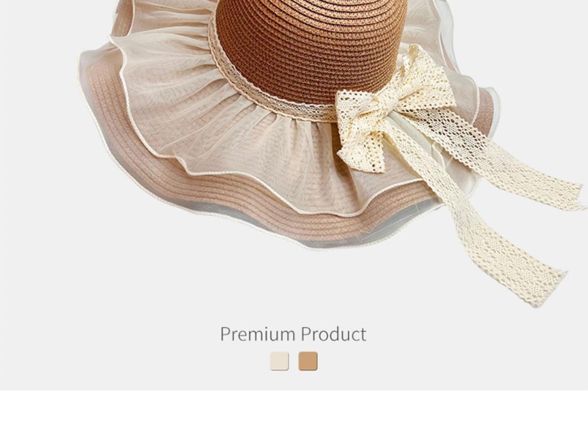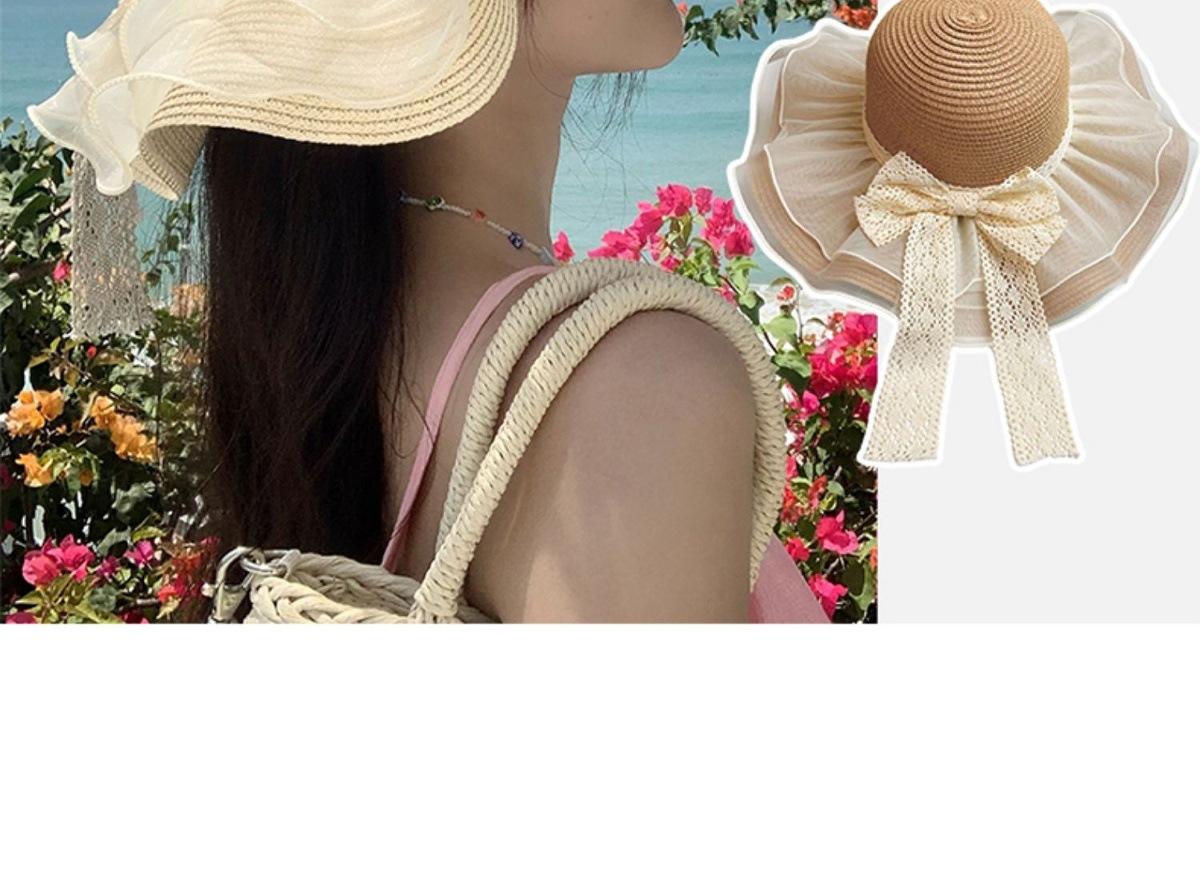 Beige [double-layer lace - bow straw hat], Khaki [double-layered lace - bow straw hat], Beige (lace ~ straw ha...