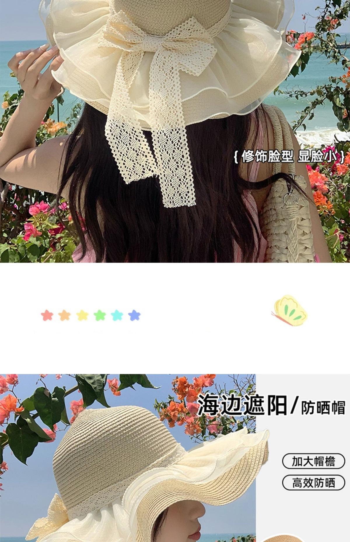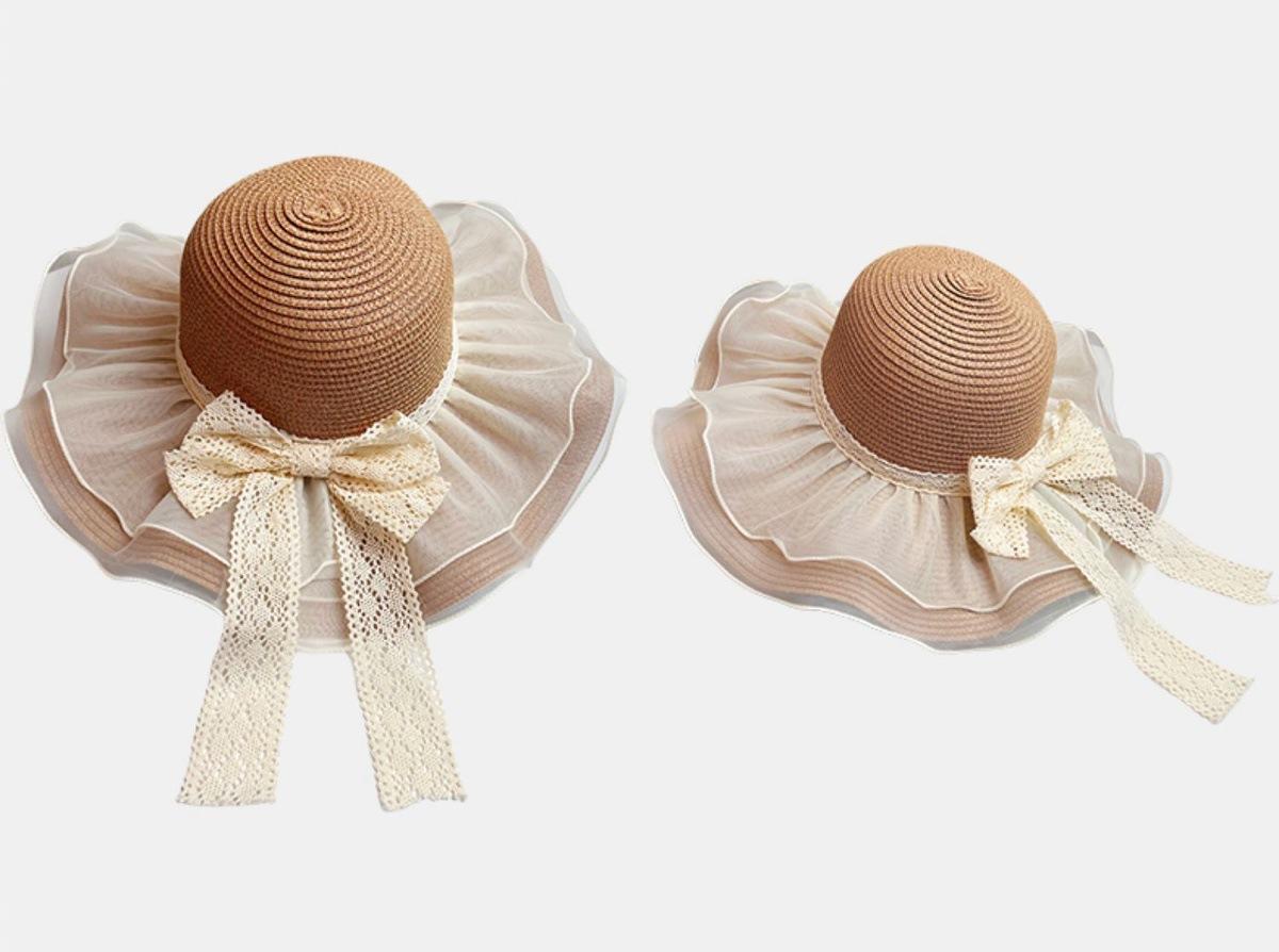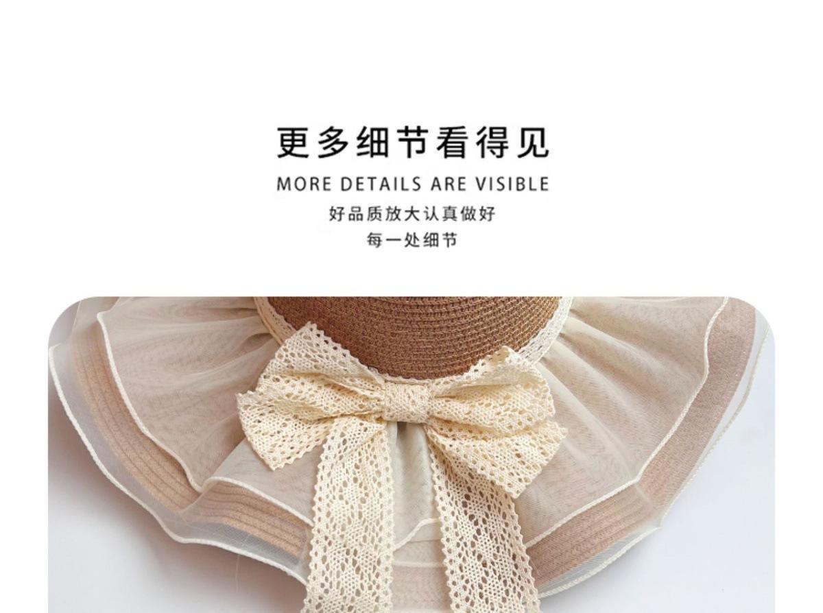 Beige [double-layer lace - bow straw hat], Khaki [double-layered lace - bow straw hat], Beige (lace ~ straw ha...