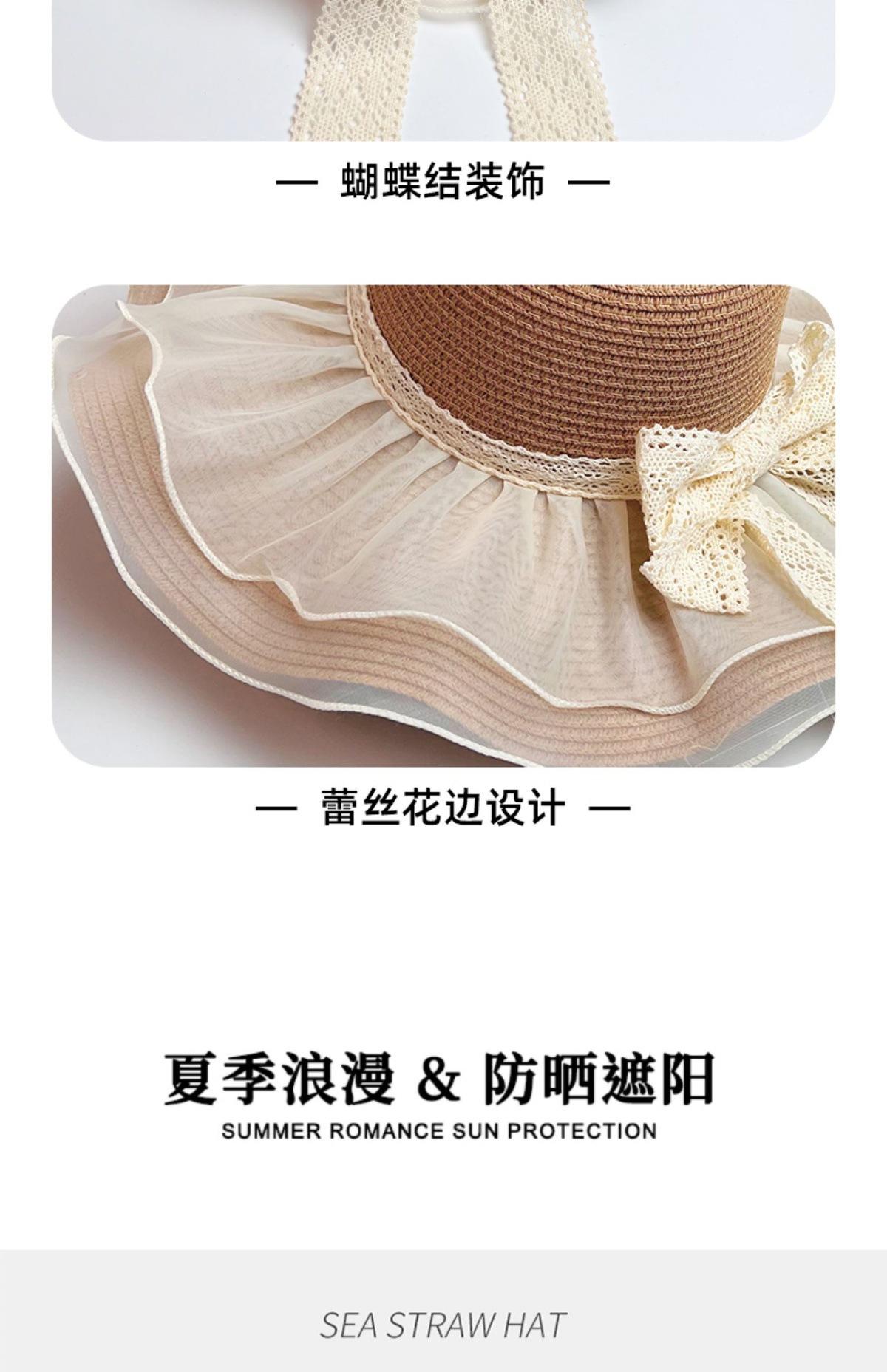 Khaki [double-layered lace - bow straw hat]