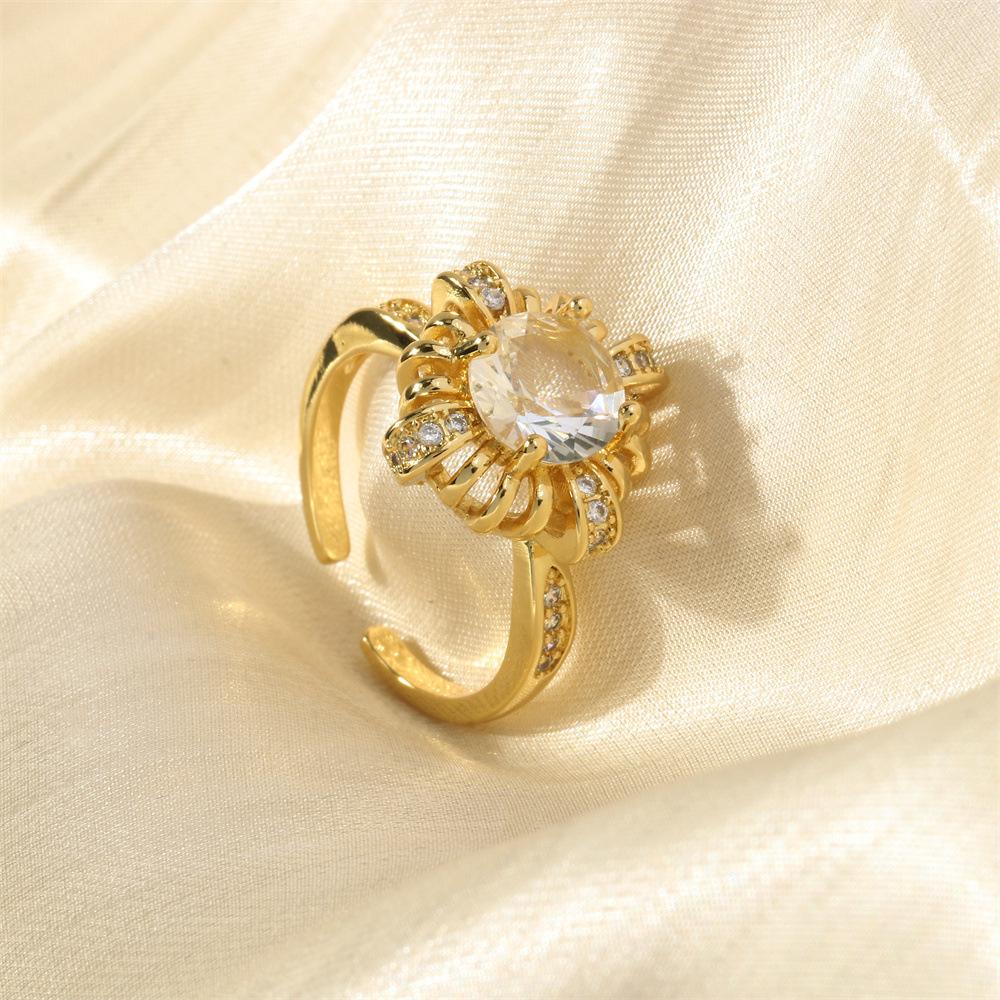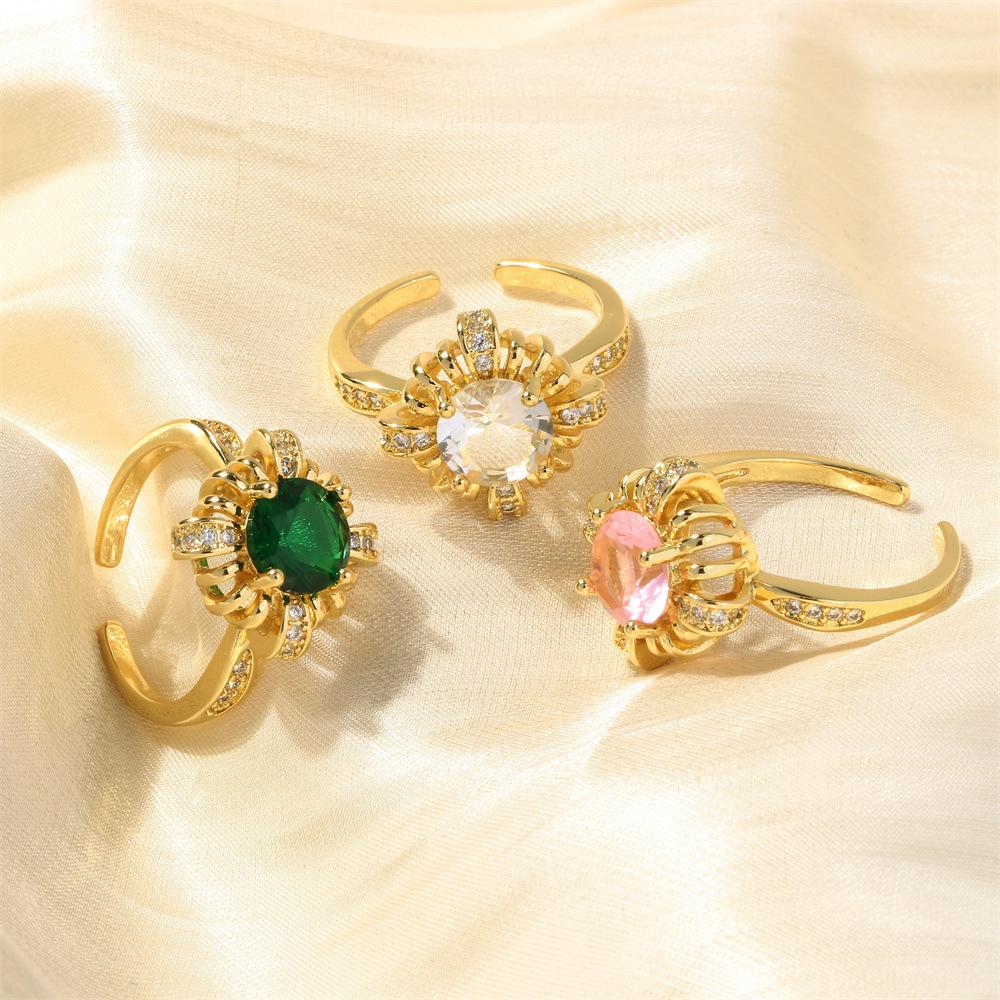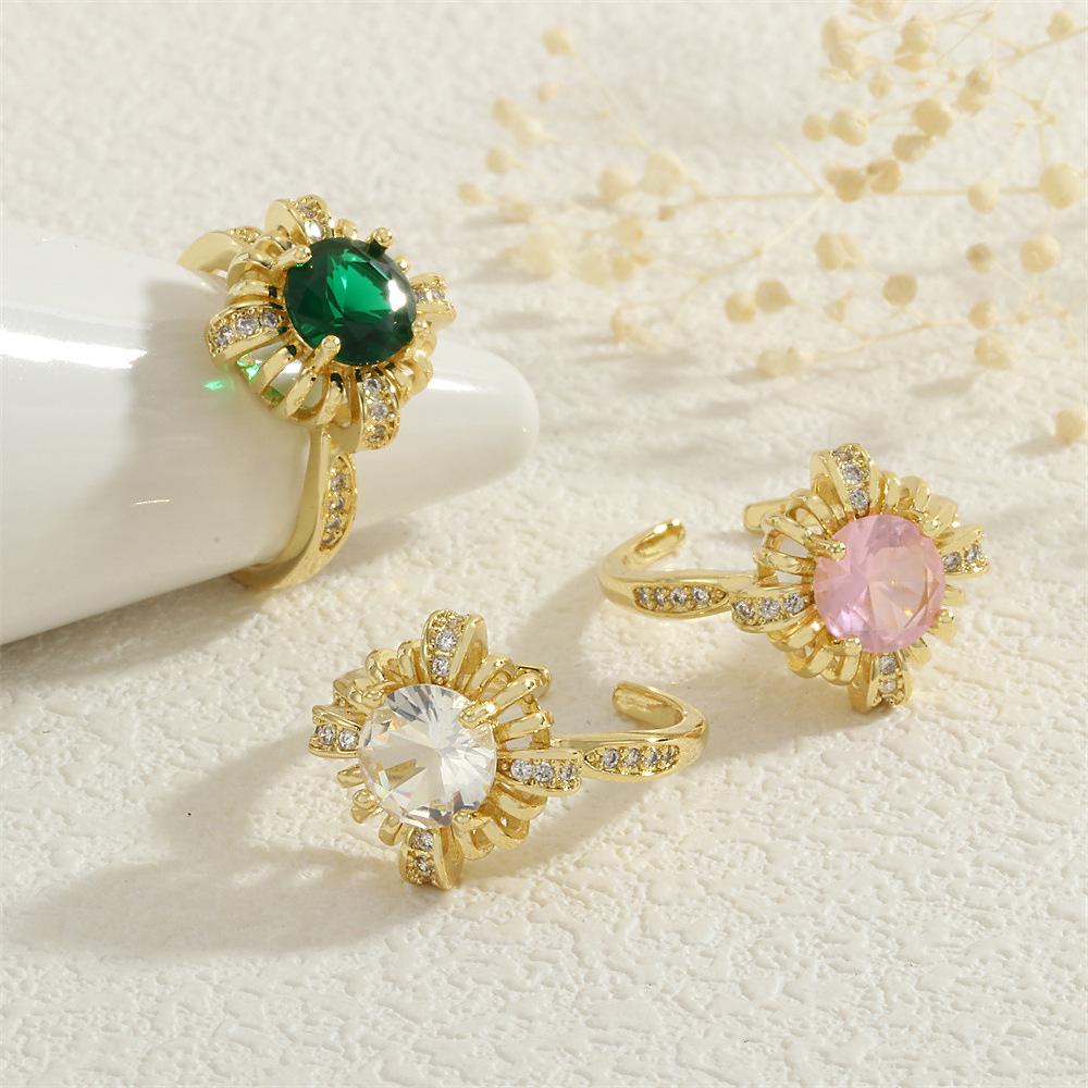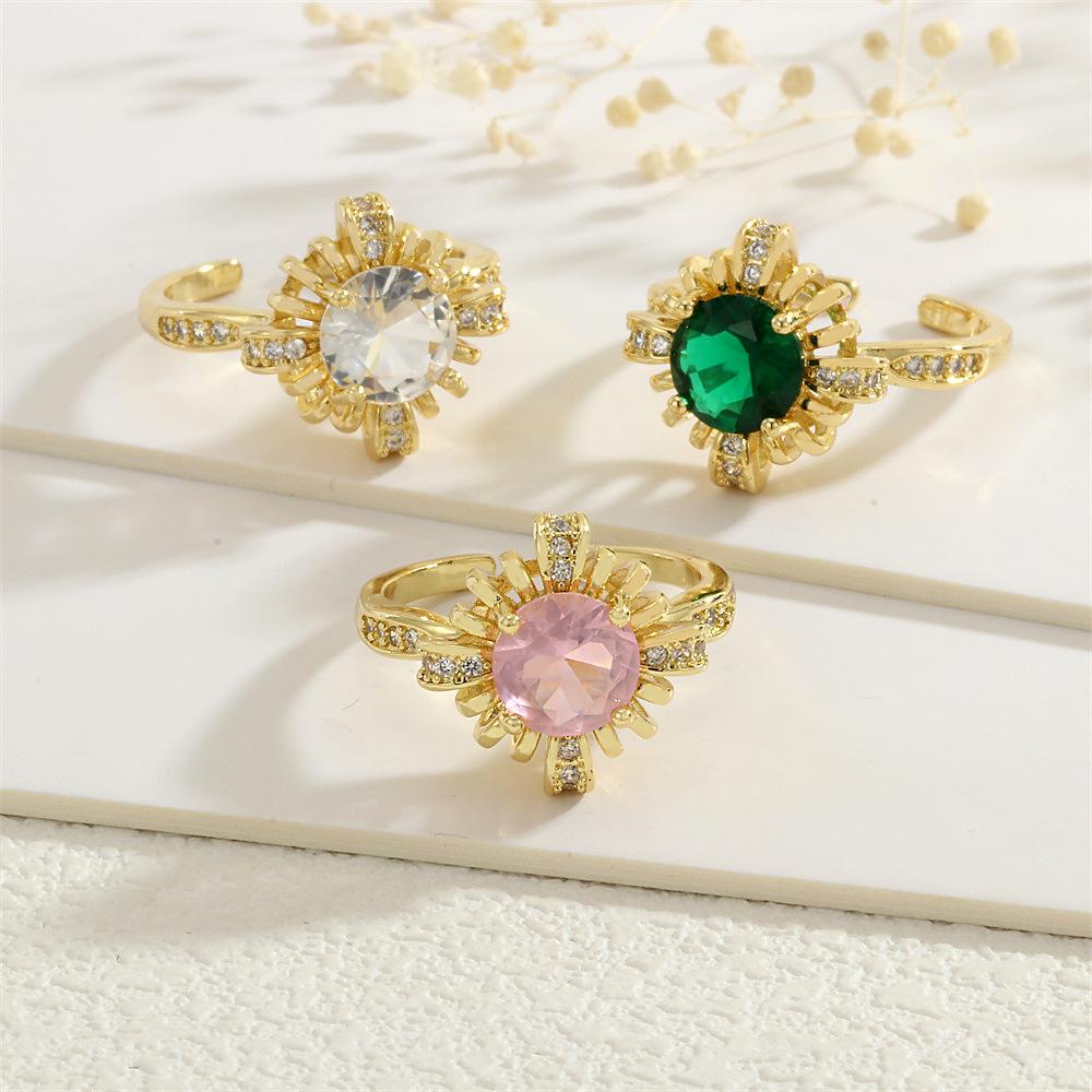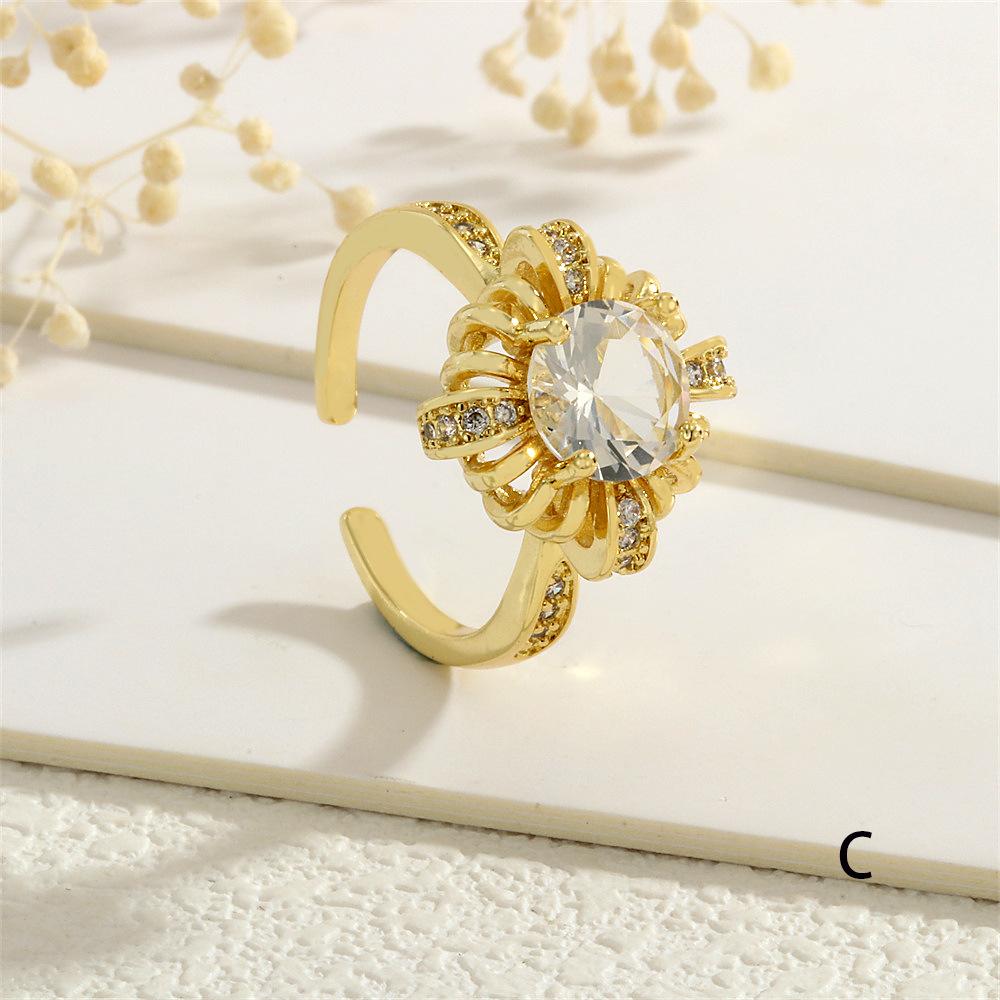 Moda transfronteriza chapado en cobre con incrustaciones de circonio de color anillo de lujo ligero geométrico oro girasol anillo de temperamento femenino al por mayor