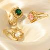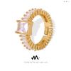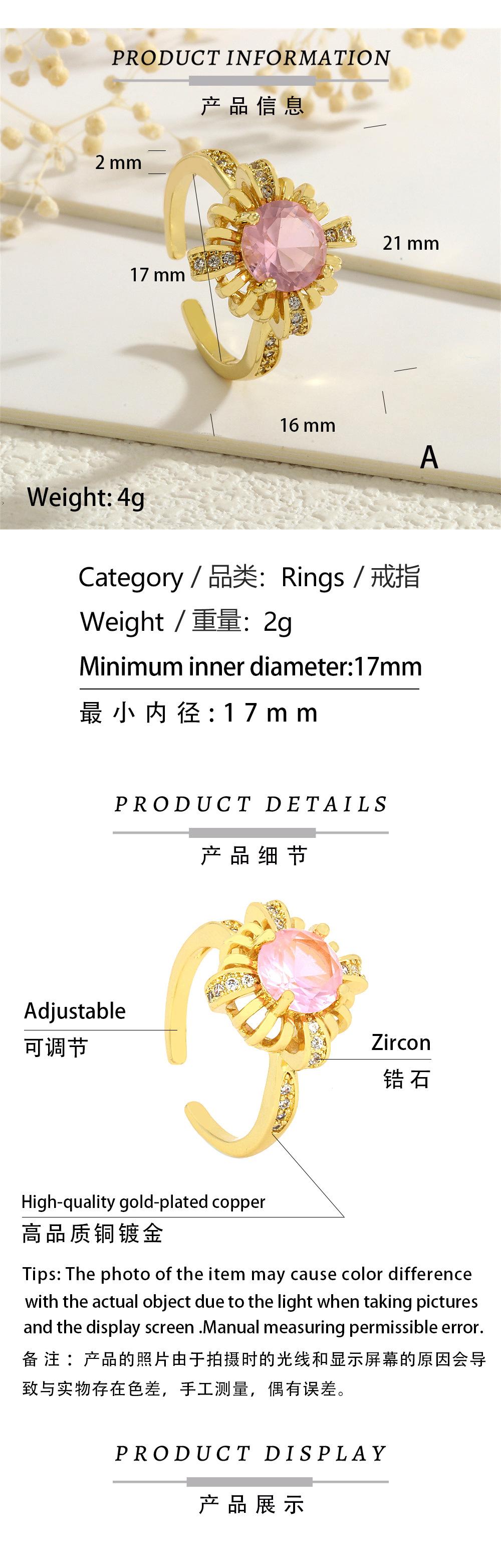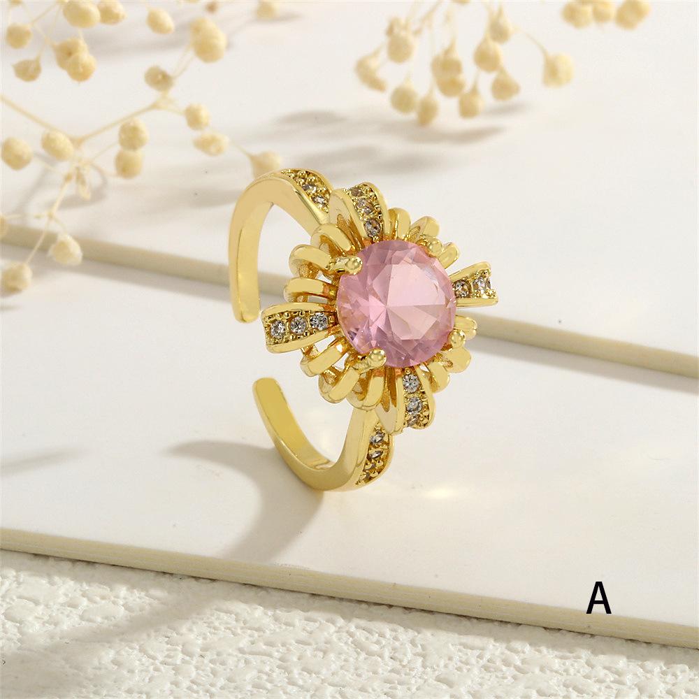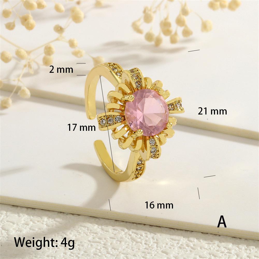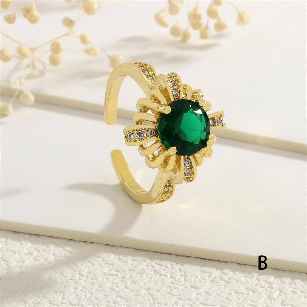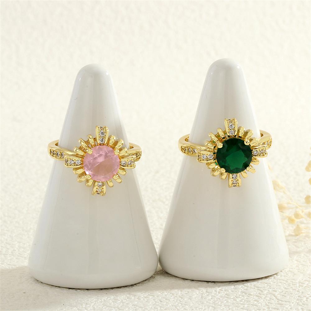 Moda transfronteriza chapado en cobre con incrustaciones de circonio de color anillo de lujo ligero geométrico oro girasol anillo de temperamento femenino al por mayor