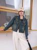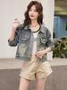 Chamarra de mezclilla corta mujer 2025 primavera nueva moda estilo extranjero reductor de edad diseño versátil letra celebridad de internet top