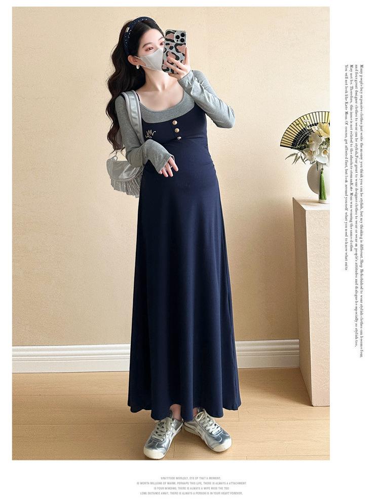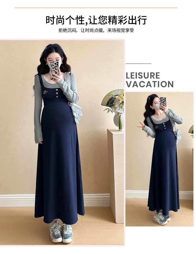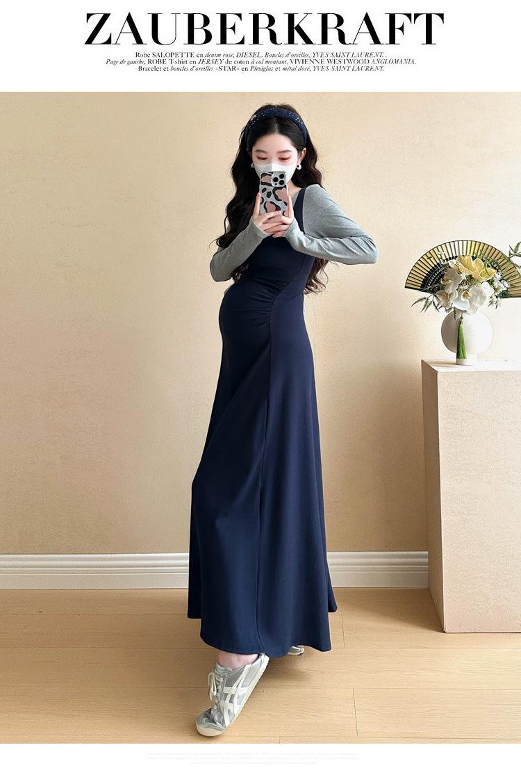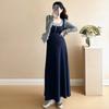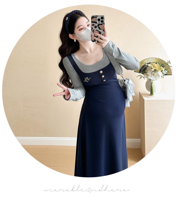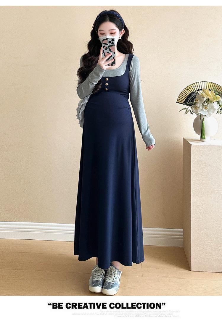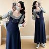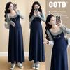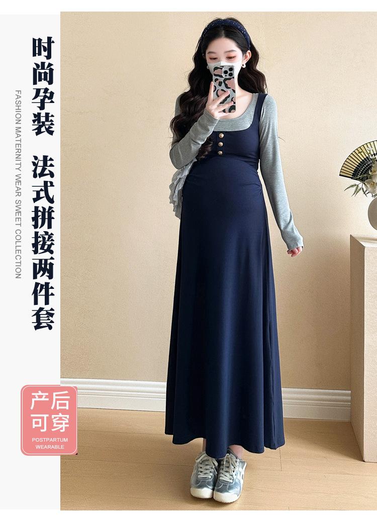 Vestido de maternidad 2025 otoño nueva moda patchwork falso dos piezas corte ajustado adelgazante temperamento mamá sexy vestido largo mujeres