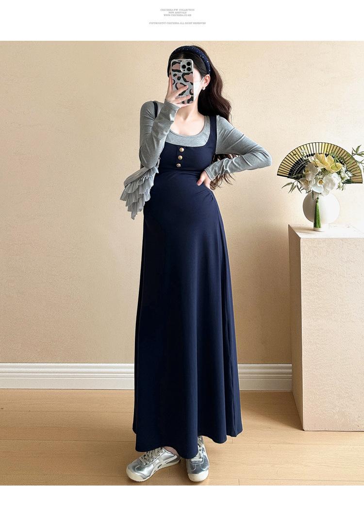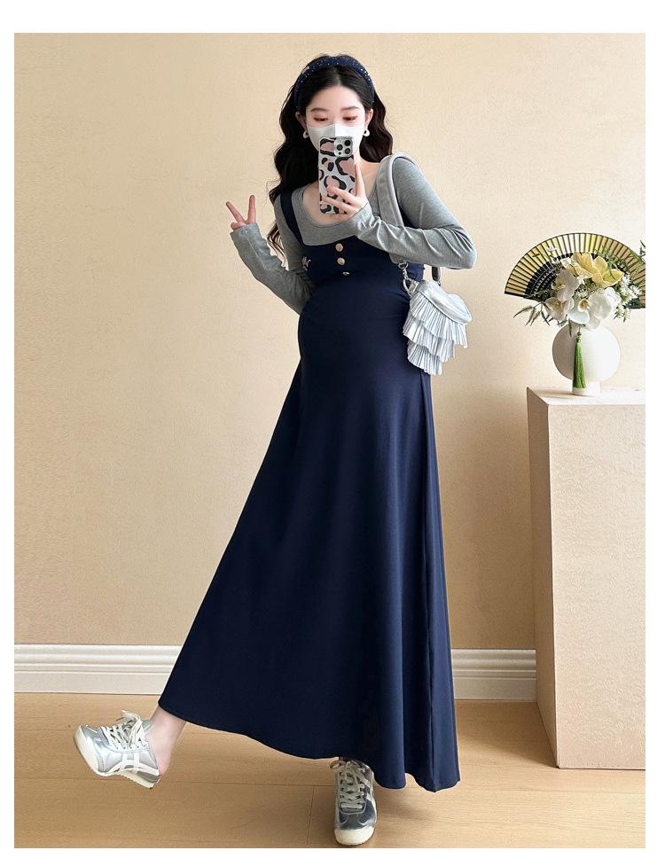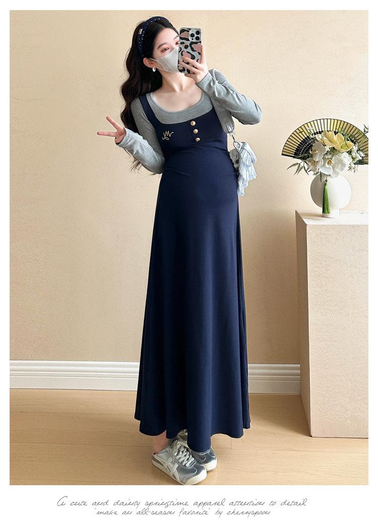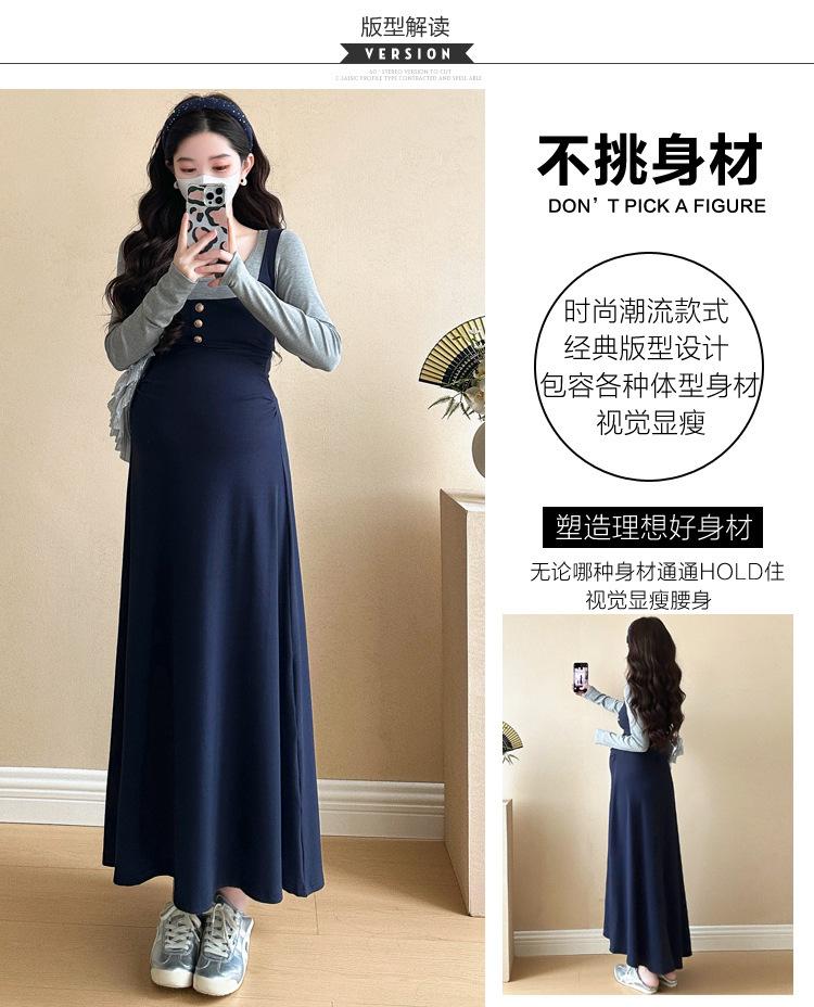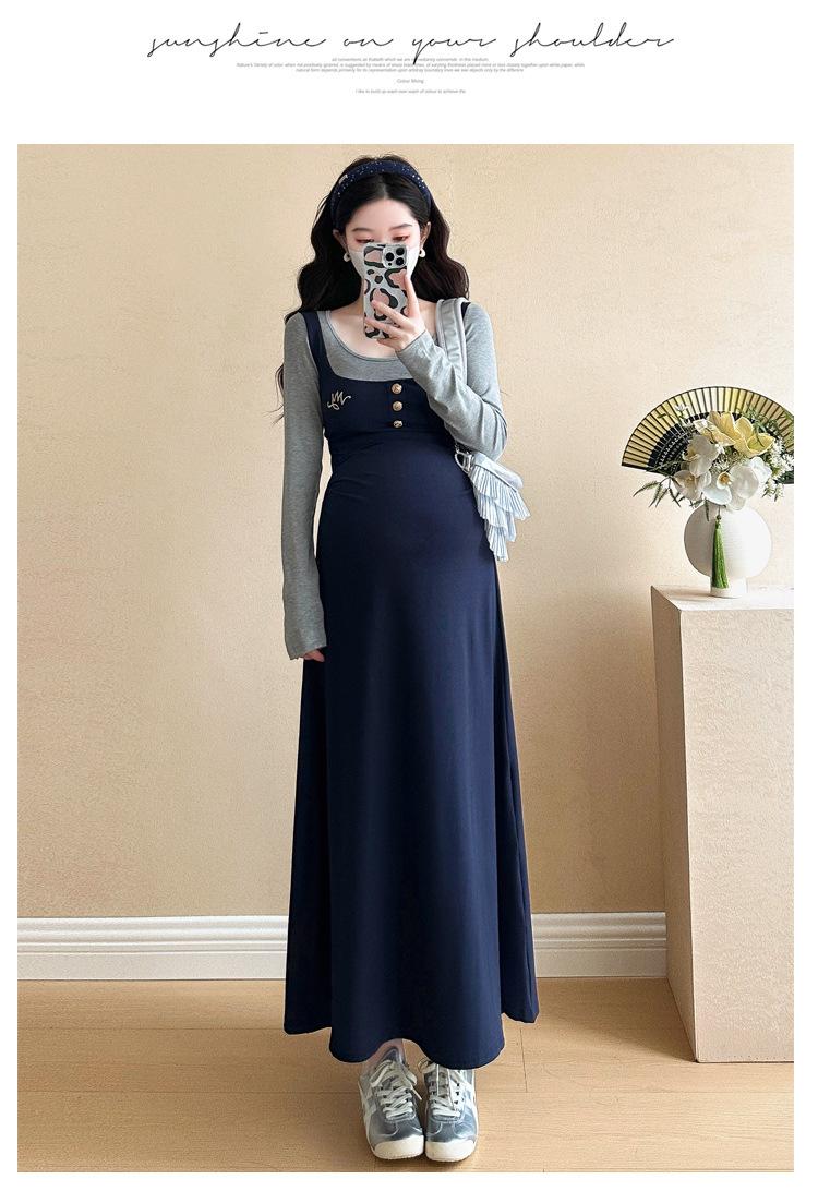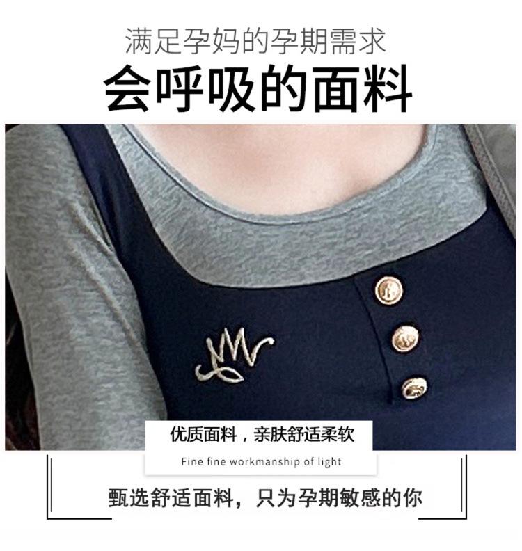 Vestido de maternidad 2025 otoño nueva moda patchwork falso dos piezas corte ajustado adelgazante temperamento mamá sexy vestido largo mujeres