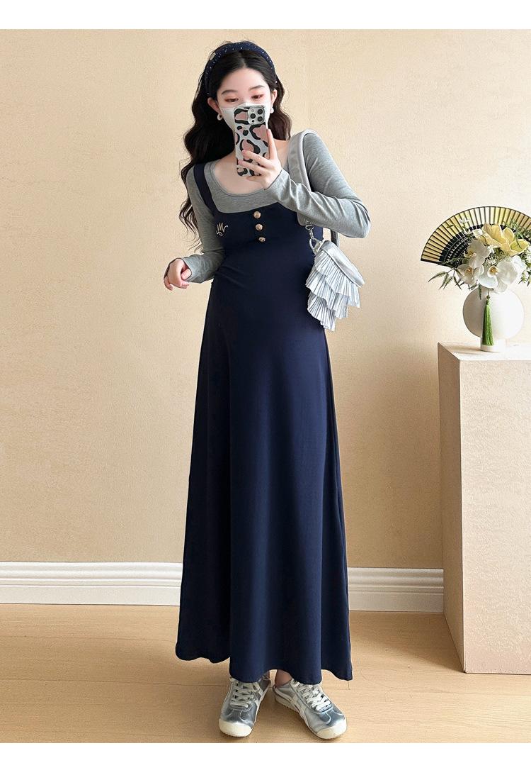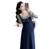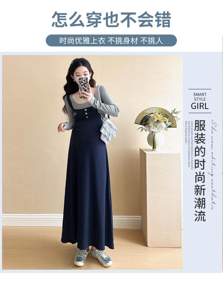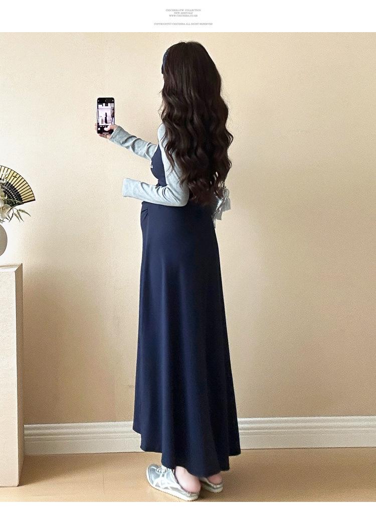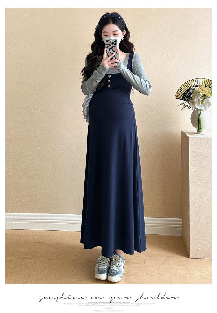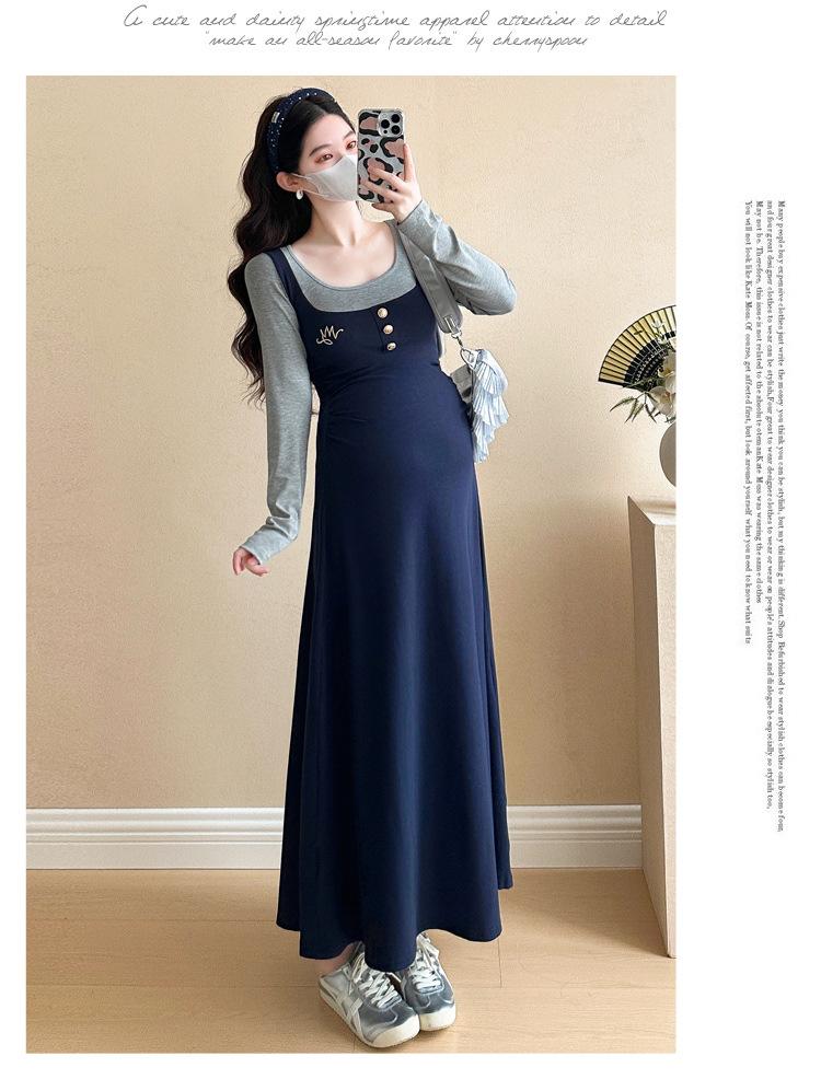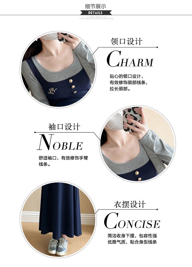 Vestido de maternidad 2025 otoño nueva moda patchwork falso dos piezas corte ajustado adelgazante temperamento mamá sexy vestido largo mujeres