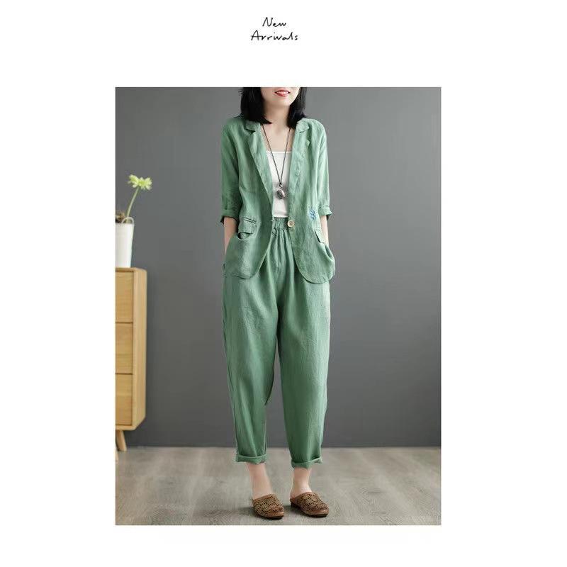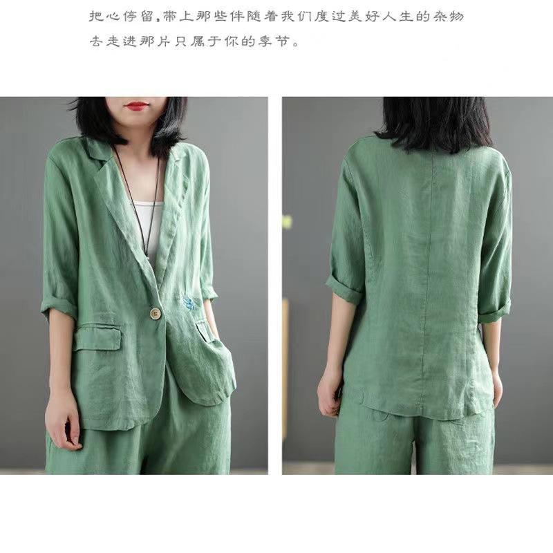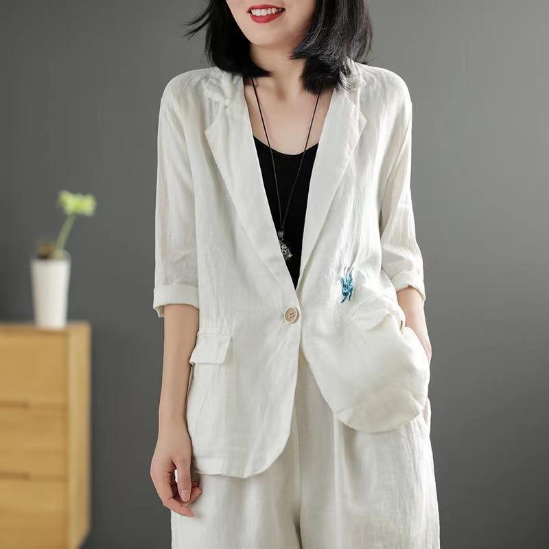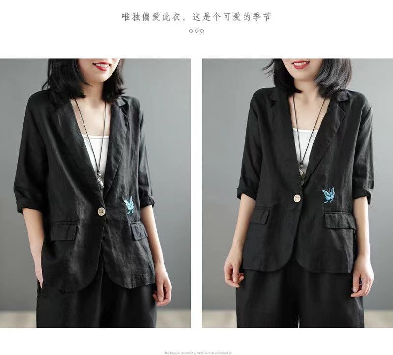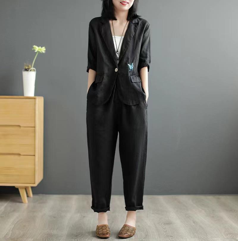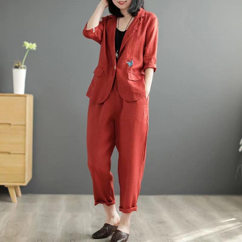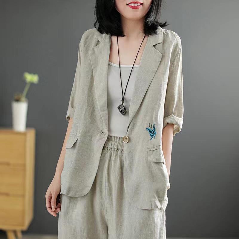 Traje casual de temperamento de primavera y otoño de algodón lino con bordado de mariposas Cárdigan moderno Conjunto de ropa deportiva de moda Venta al por mayor