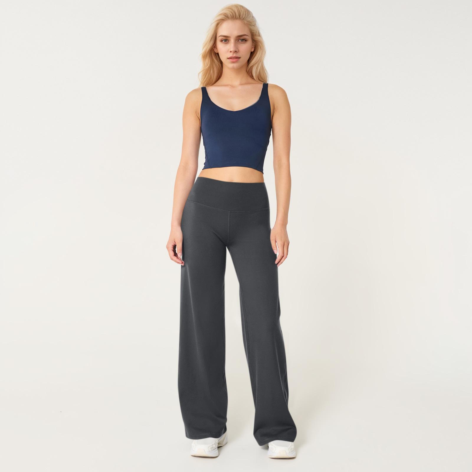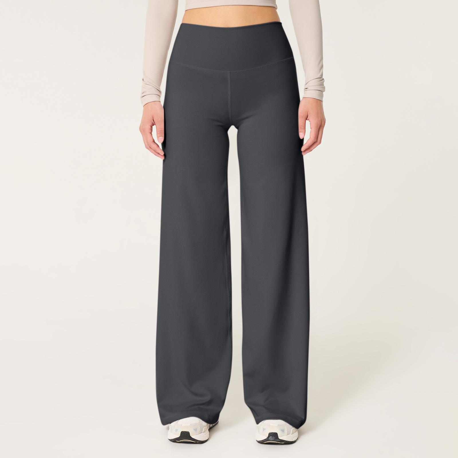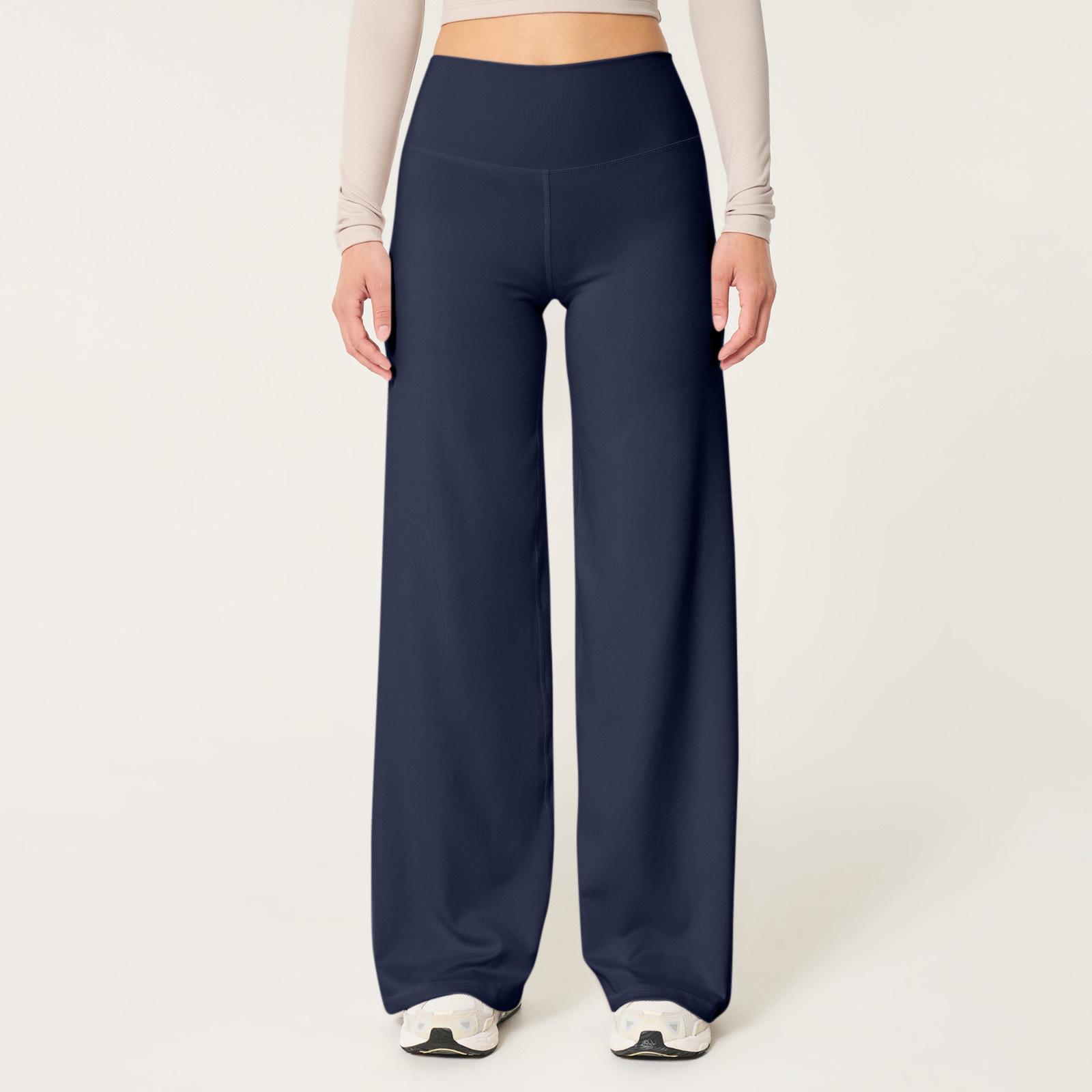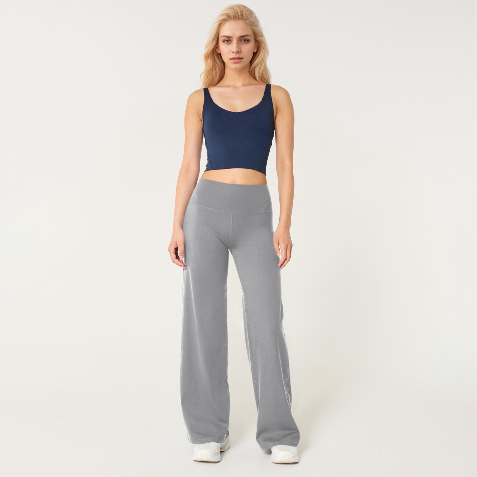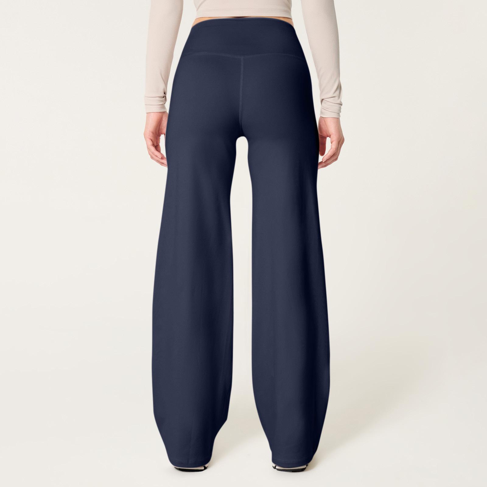 Calças de Yoga Soltas de Cintura Alta para Mulheres Europeias e Americanas Transfronteiriças Elásticas de Secagem Rápida Calças de Fitness Leggings Esportivas de Perna Larga em Estoque