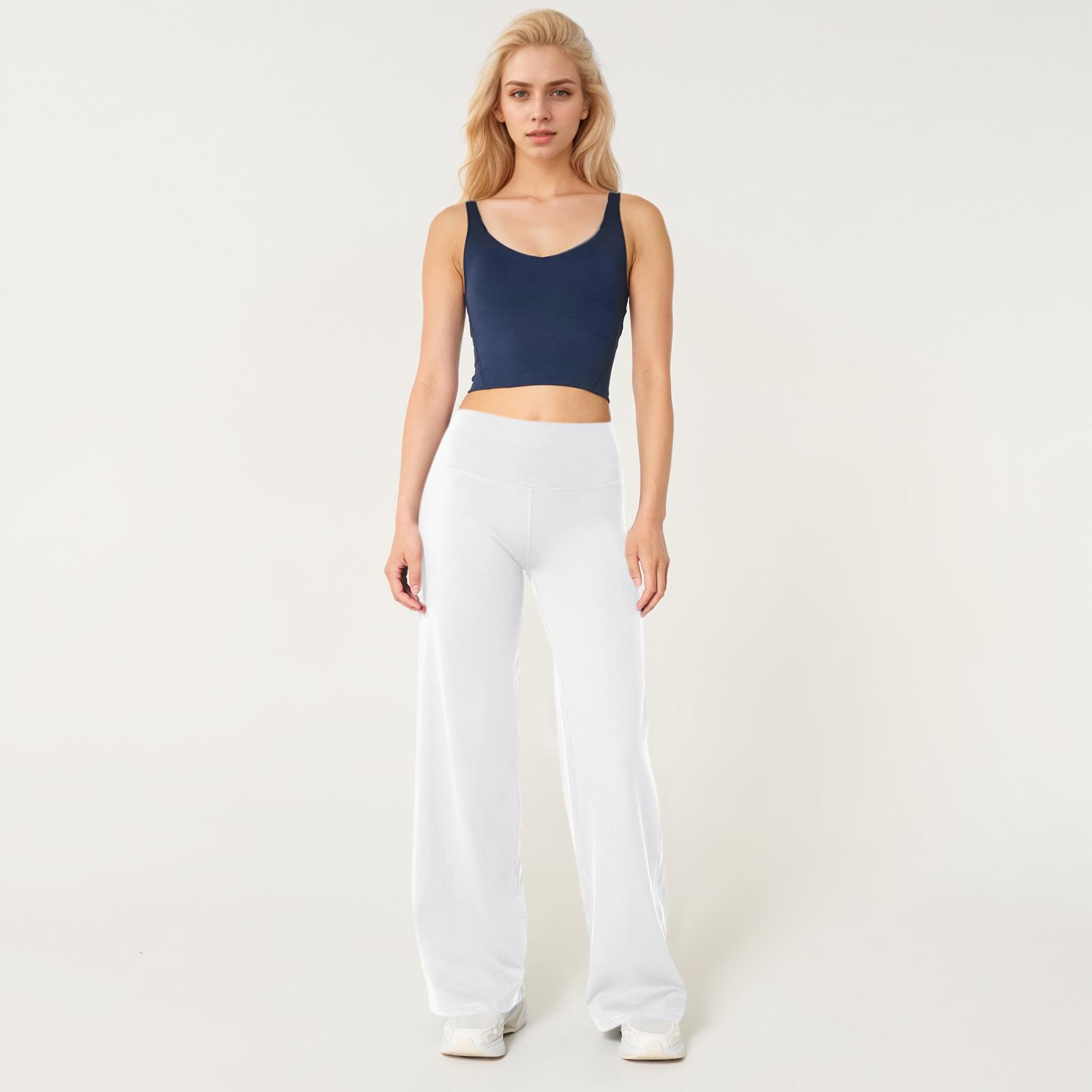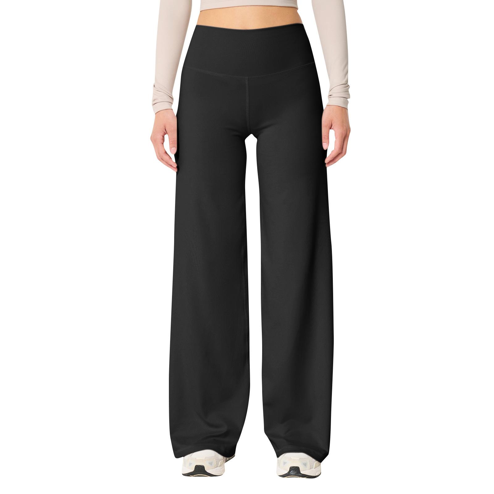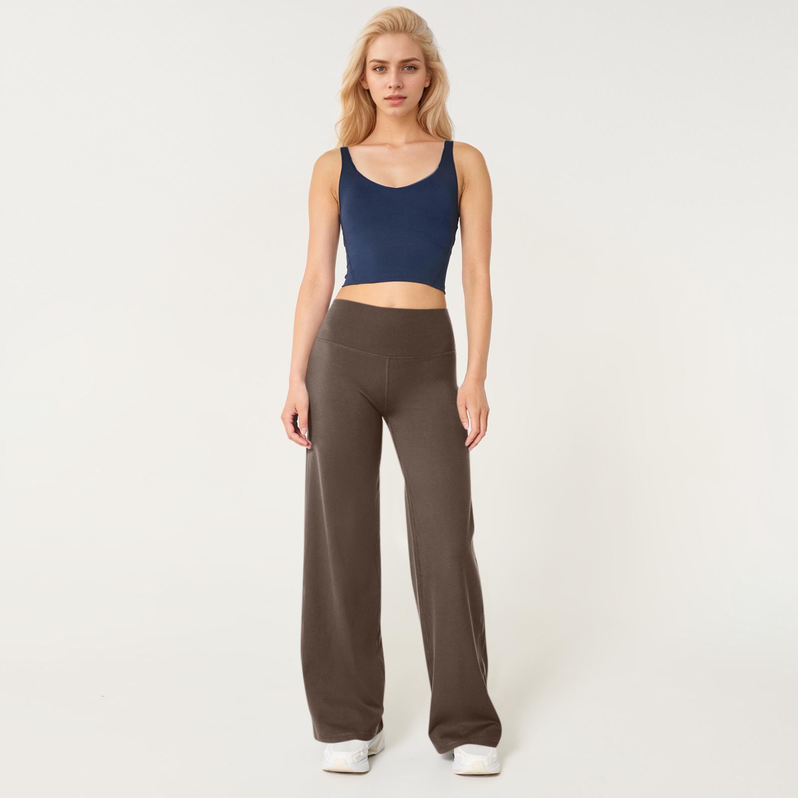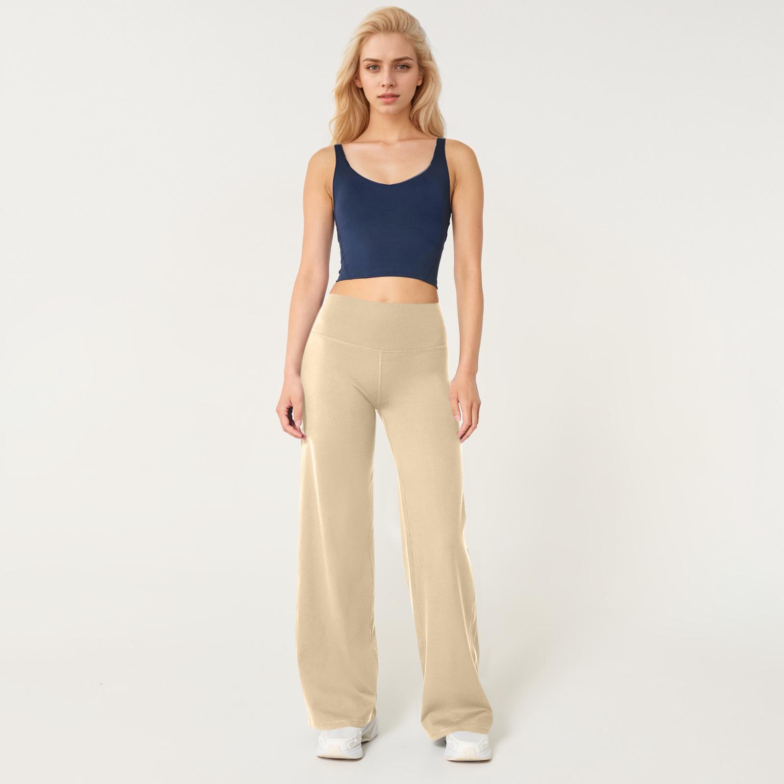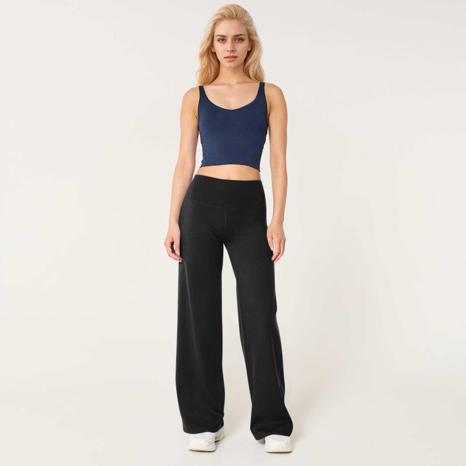 Calças de Yoga Soltas de Cintura Alta para Mulheres Europeias e Americanas Transfronteiriças Elásticas de Secagem Rápida Calças de Fitness Leggings Esportivas de Perna Larga em Estoque