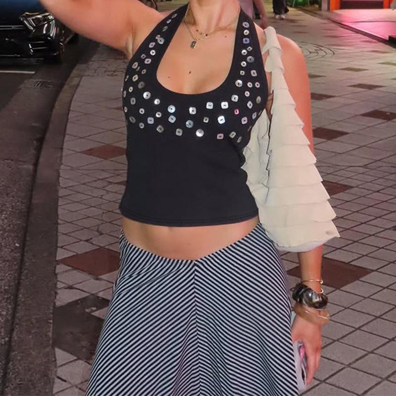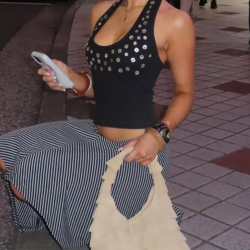 2025 Europeo y Americano ins moda urbana moderna sin espalda halter sin mangas chaleco sexy ropa al por mayor transfronteriza