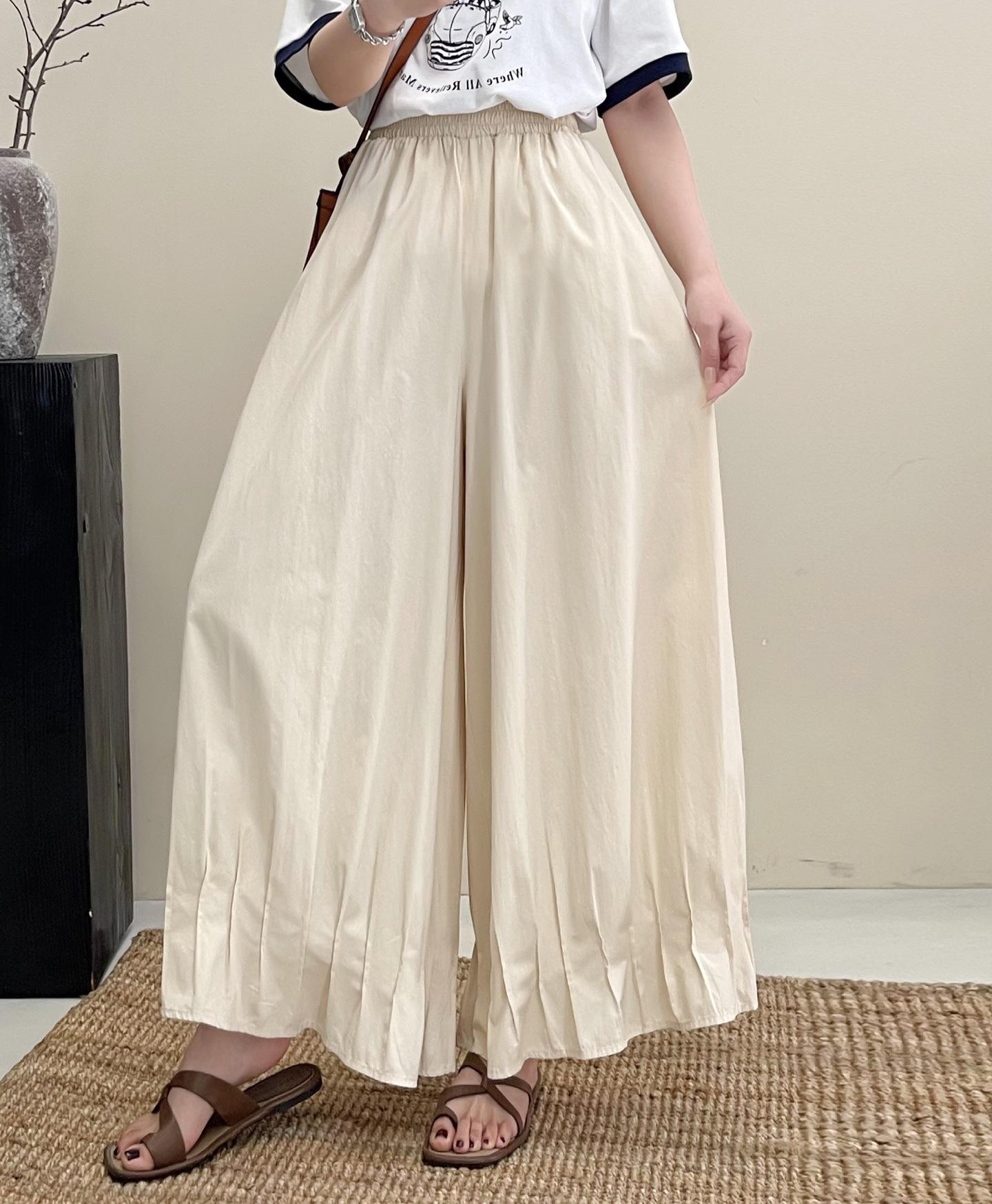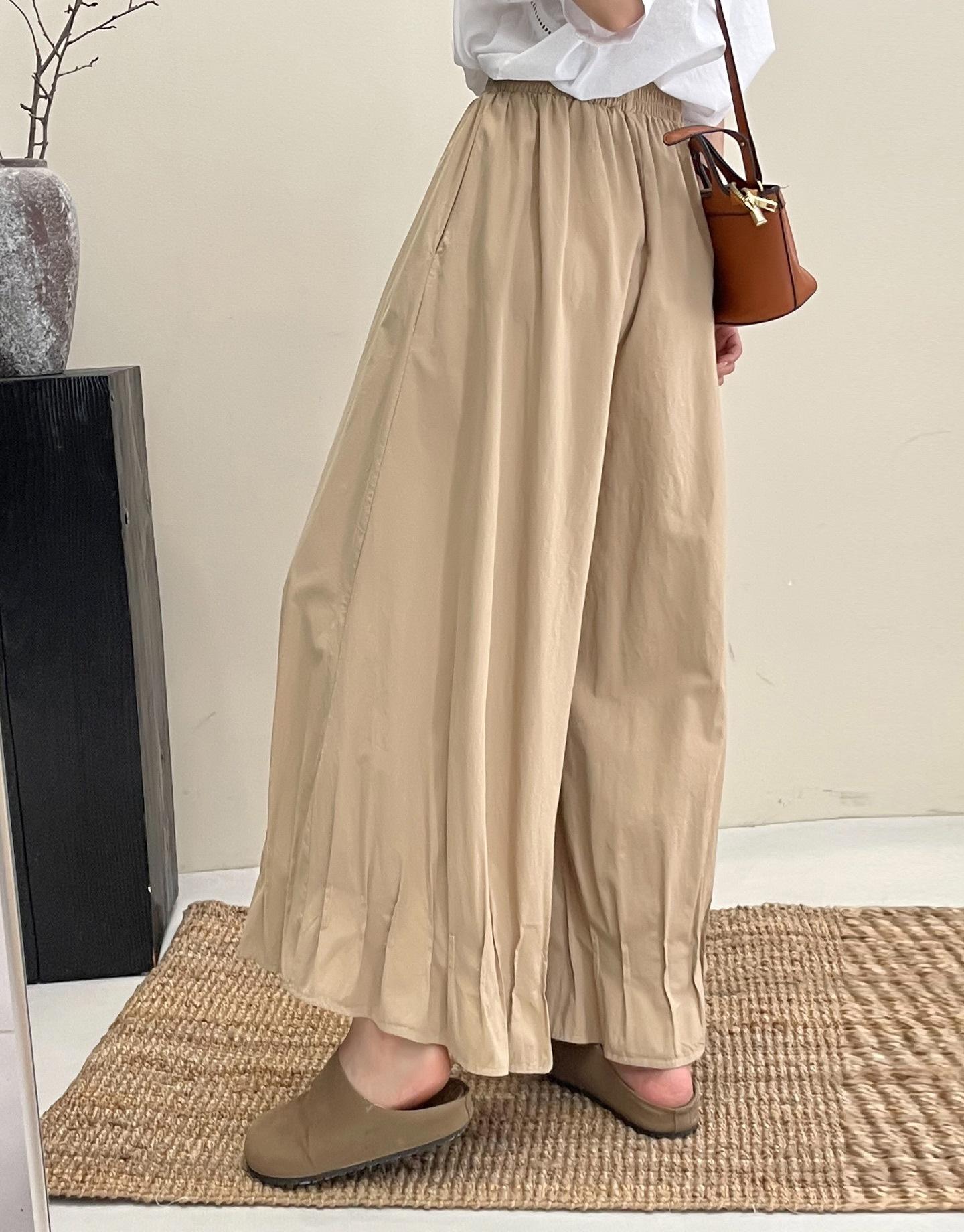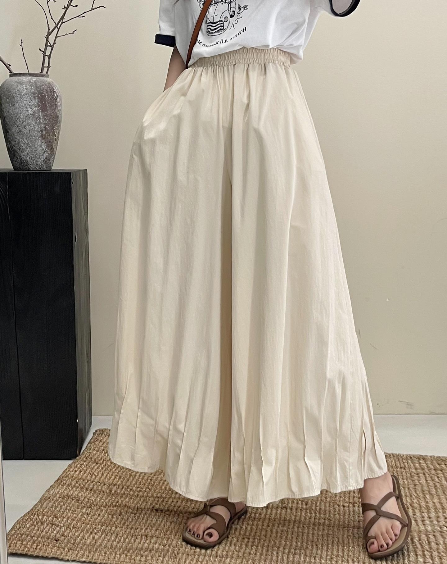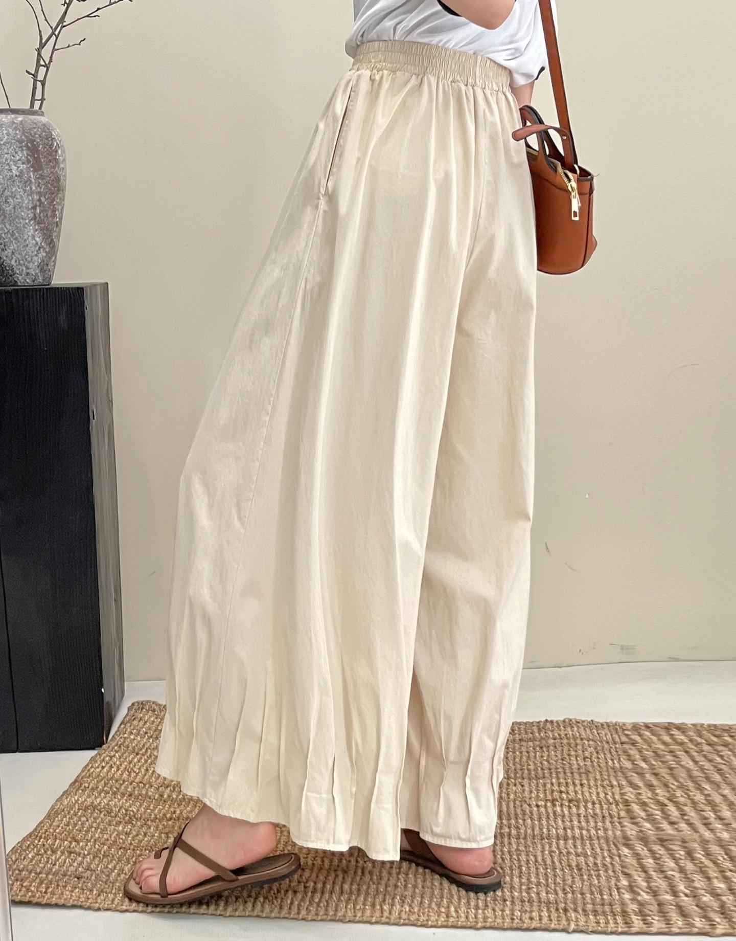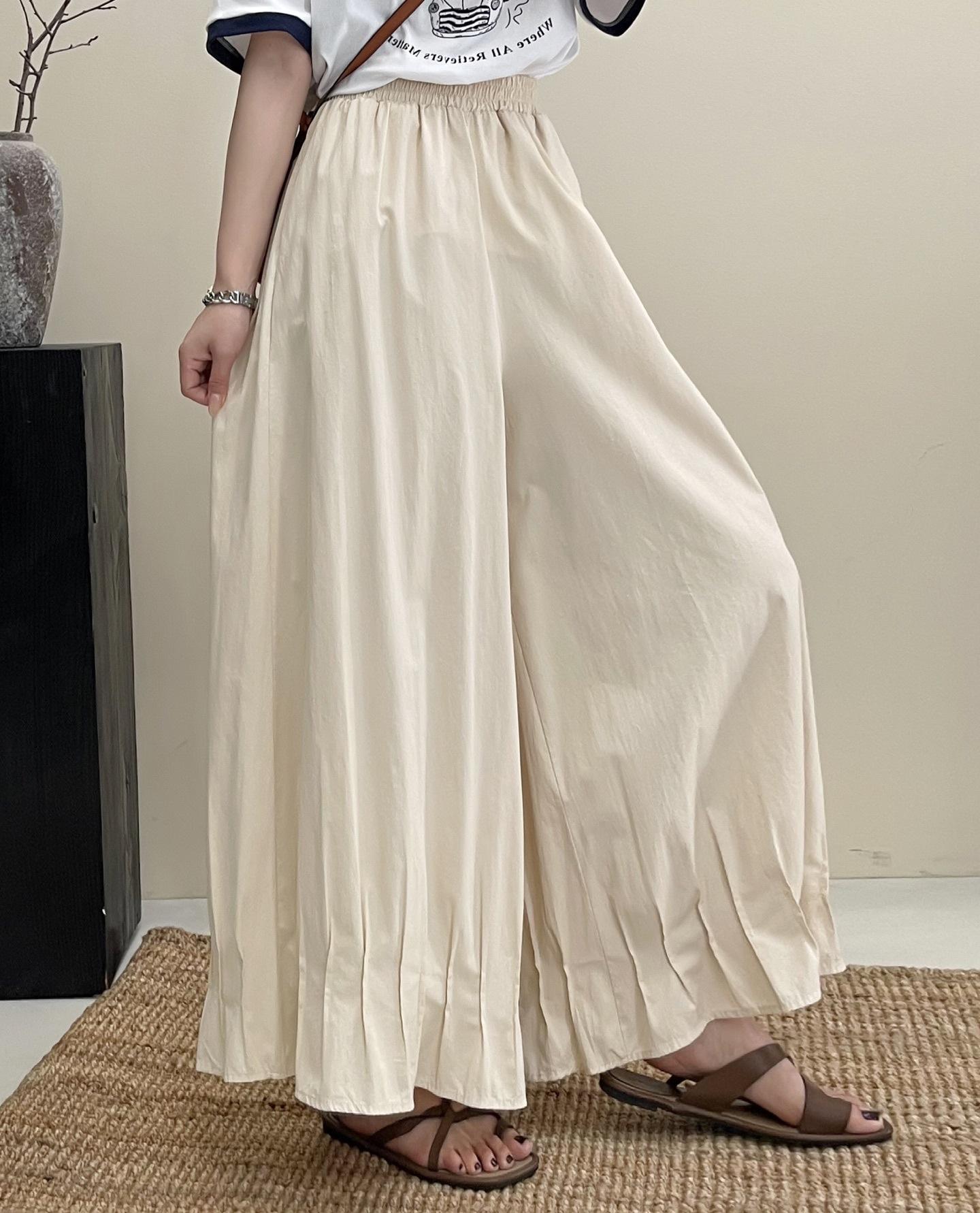Pantalones de Verano de Color Sólido de Pierna Ancha, Artísticos Retro de Cintura Elástica Plisados Adelgazantes Holgados Casuales de Pierna Recta para Mujer