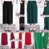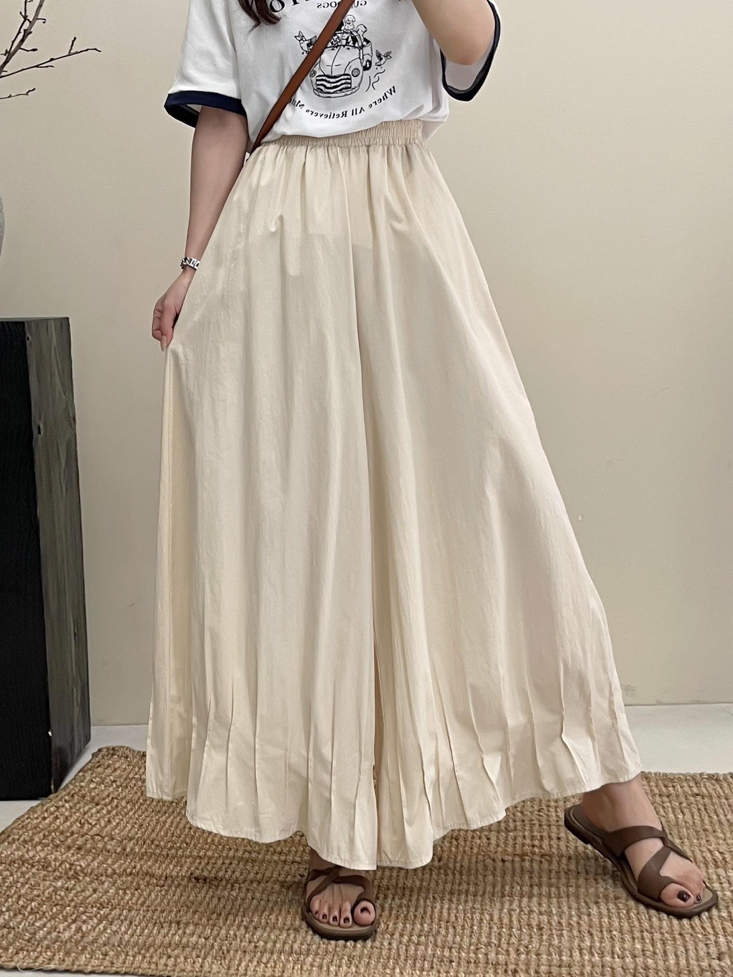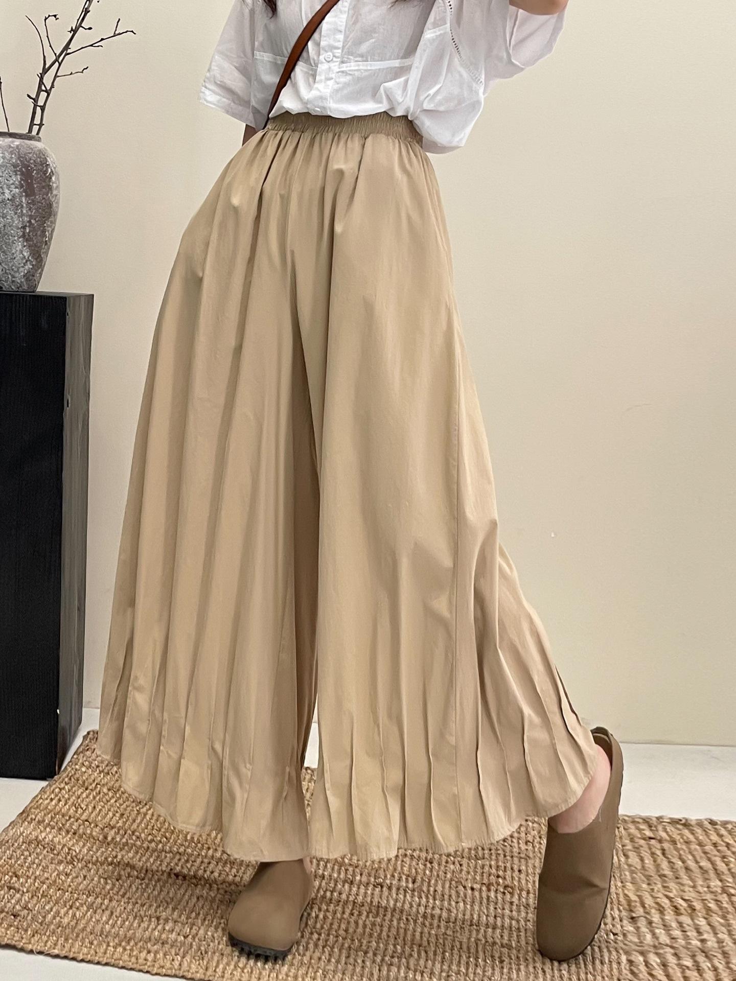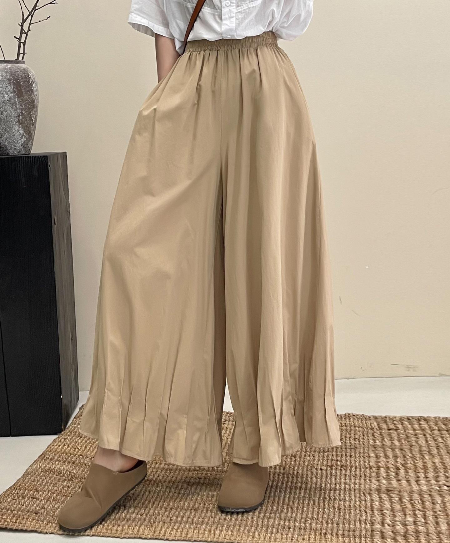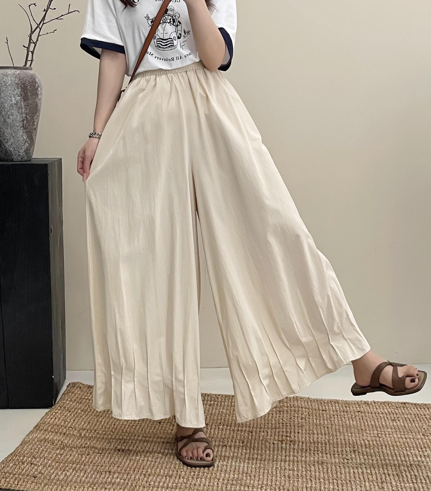 Pantalones de Verano de Color Sólido de Pierna Ancha, Artísticos Retro de Cintura Elástica Plisados Adelgazantes Holgados Casuales de Pierna Recta para Mujer