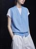 Chaleco Cardigan de Punto Azul con Cuello en V para Mujer 2025 Primavera y Otoño Nuevo Estilo Sin Mangas Moderno Estilo Extranjero Estilo Relajado