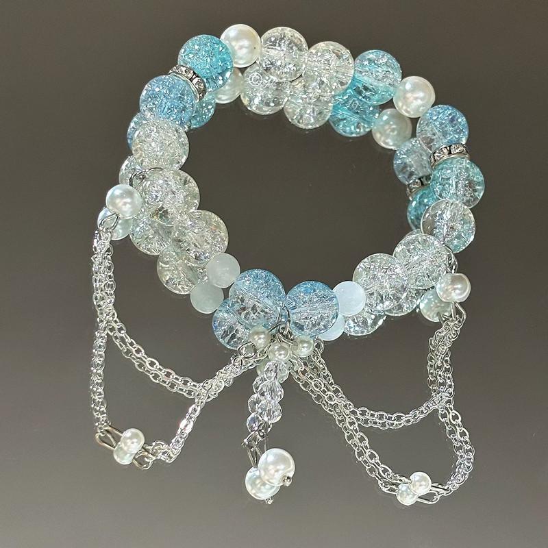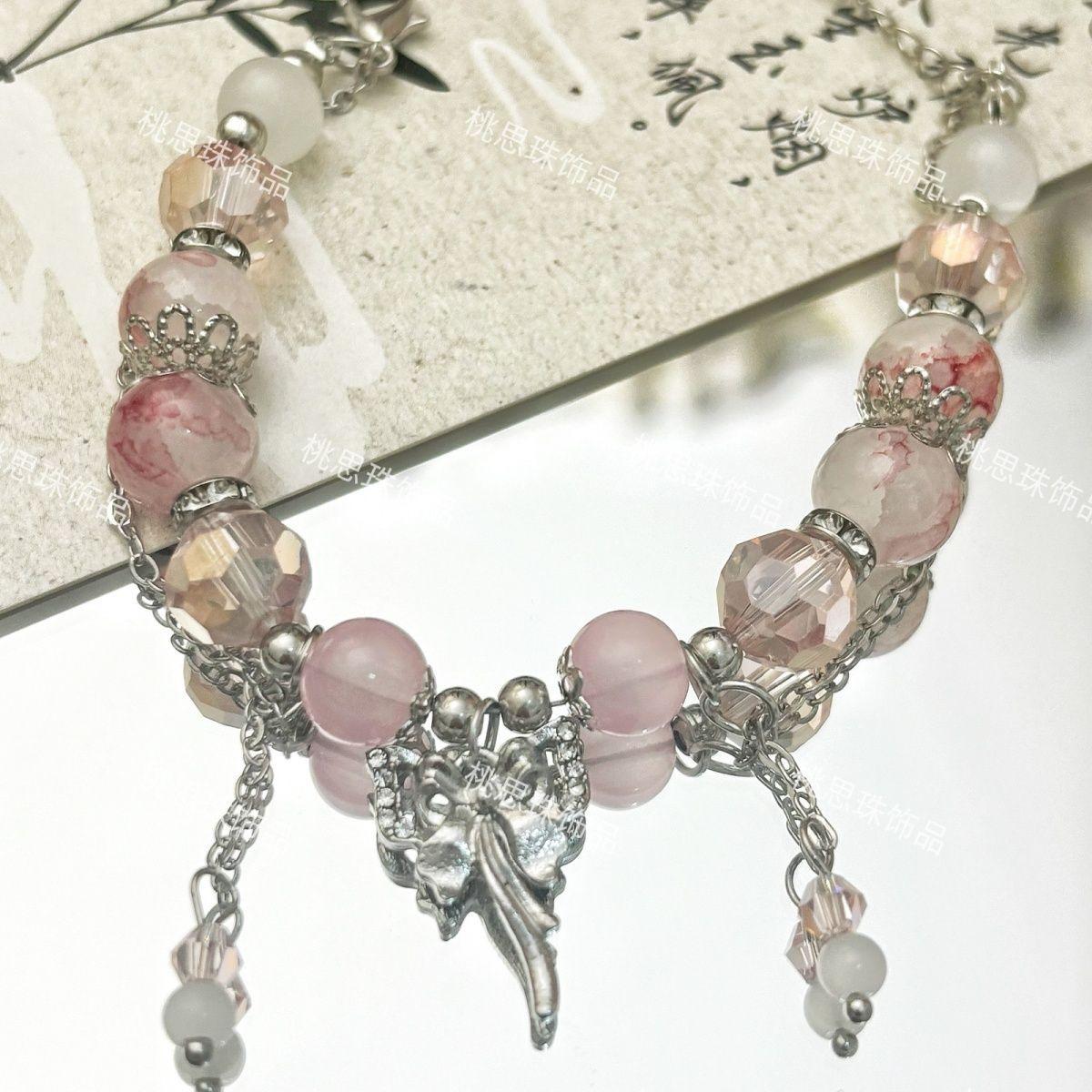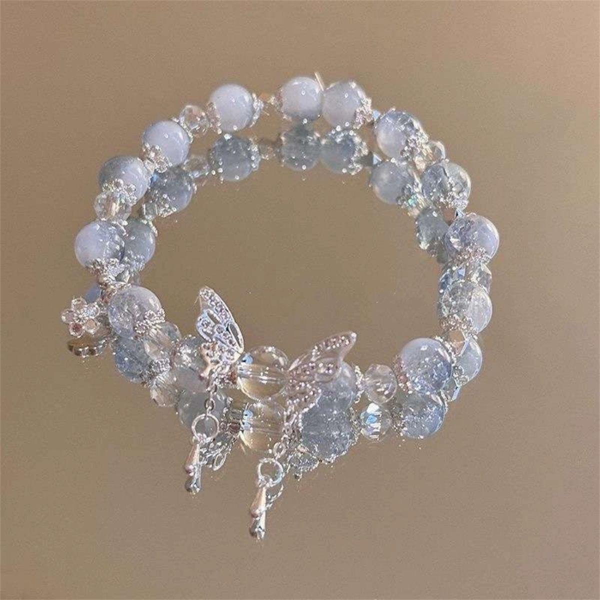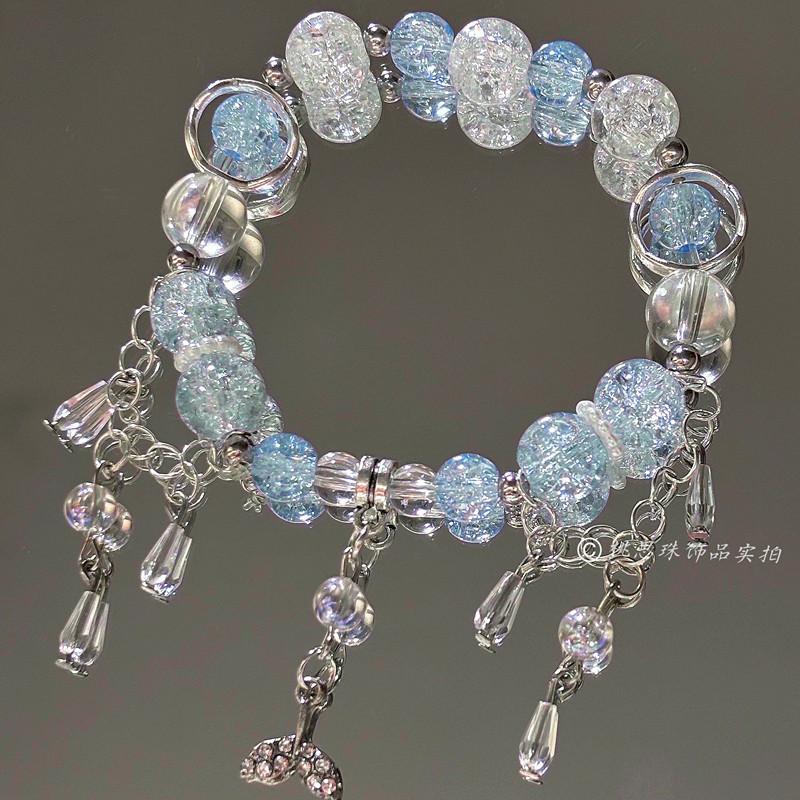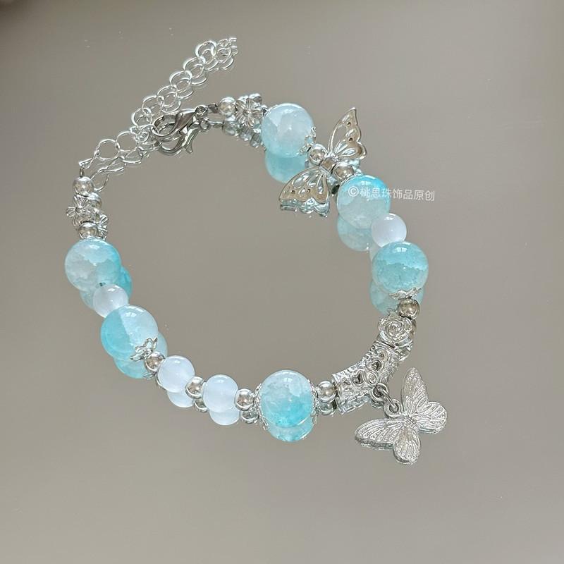 Blue pearl star sea, Butterfly beaded tassel, Star sea blue bow bracelet, Pink bead bow, Sauna bracelet, Deep ...
