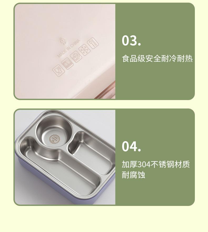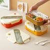 Fiambrera de Acero Inoxidable 304 Fiambrera de Doble Capa Fiambrera de 3 Compartimentos Fiambrera Calentable Portátil Fiambrera para Estudiantes con Cubiertos