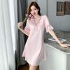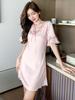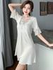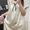2025 Talla Grande Manga Corta Pijama de Seda de Hielo para Mujer Verano Nuevo Ropa para el Hogar Verano Delgada Suelta con Almohadilla en el Pecho Camisón