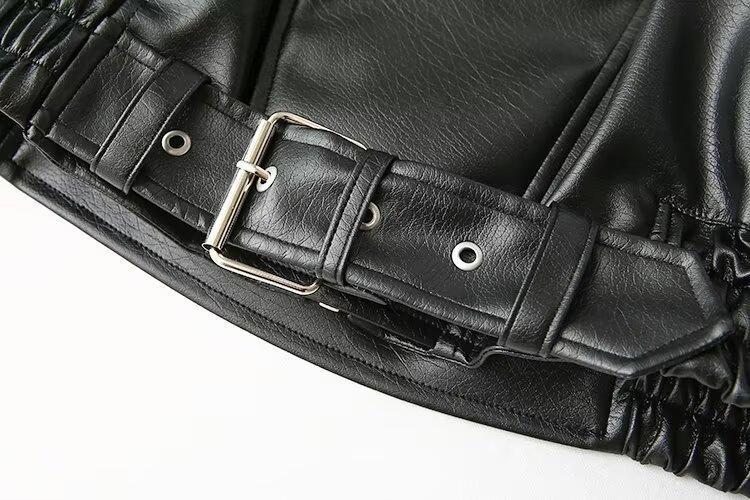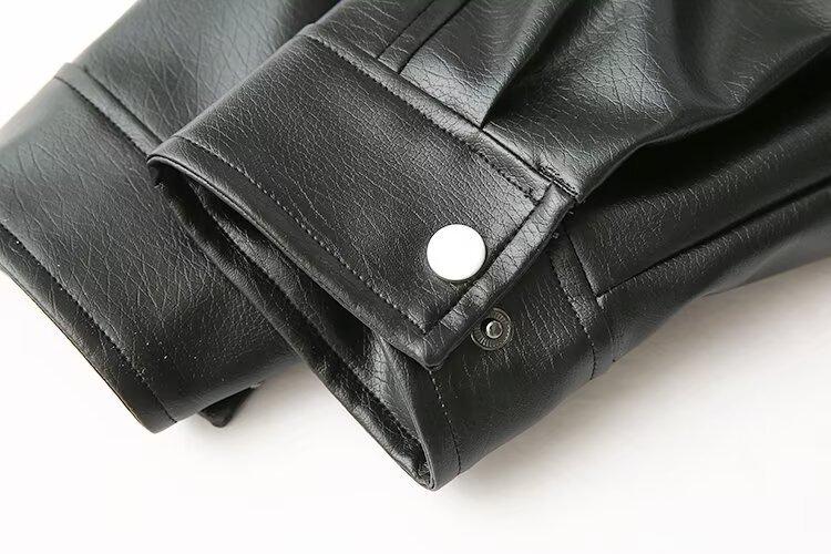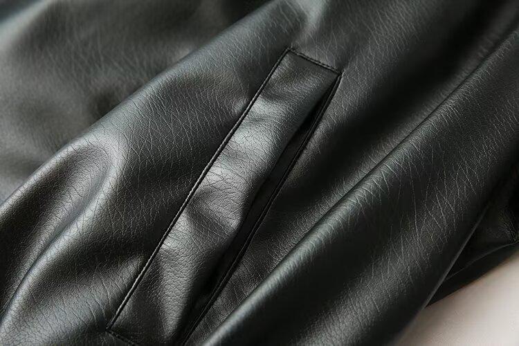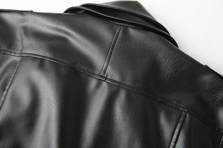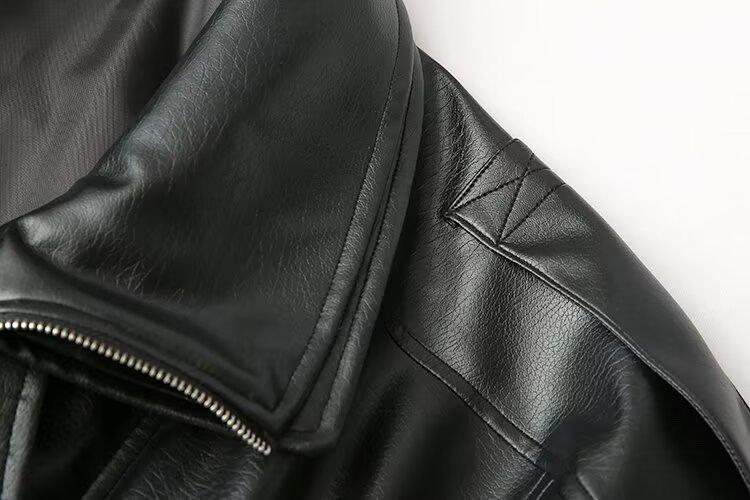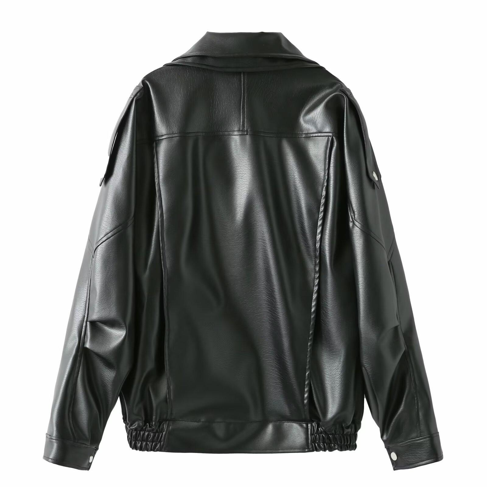 Amazon Transfronterizo 2025 Otoño Nuevo Ropa de Mujer Estilo Europeo y Americano Moda Suelta Chaqueta de Cuero Exterior Mujer Negro