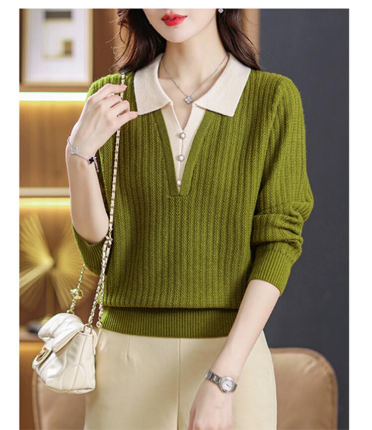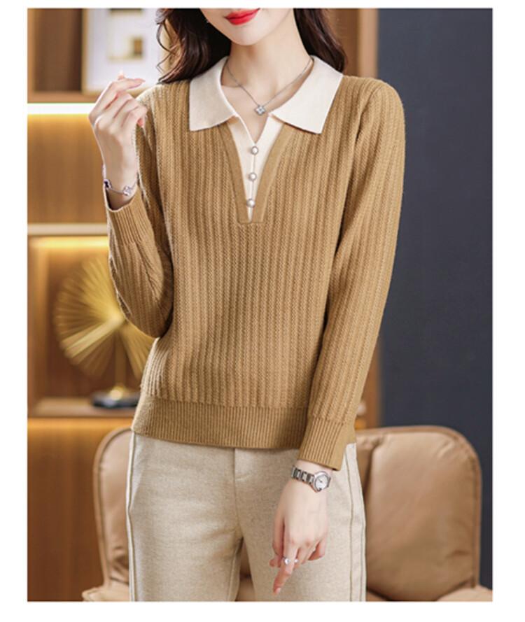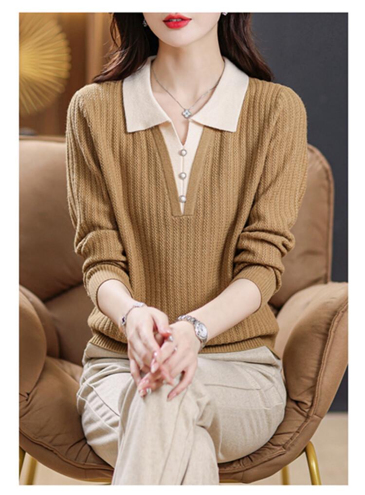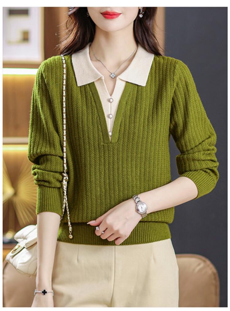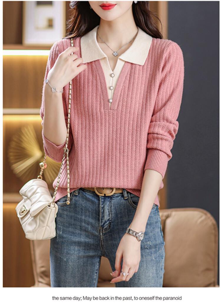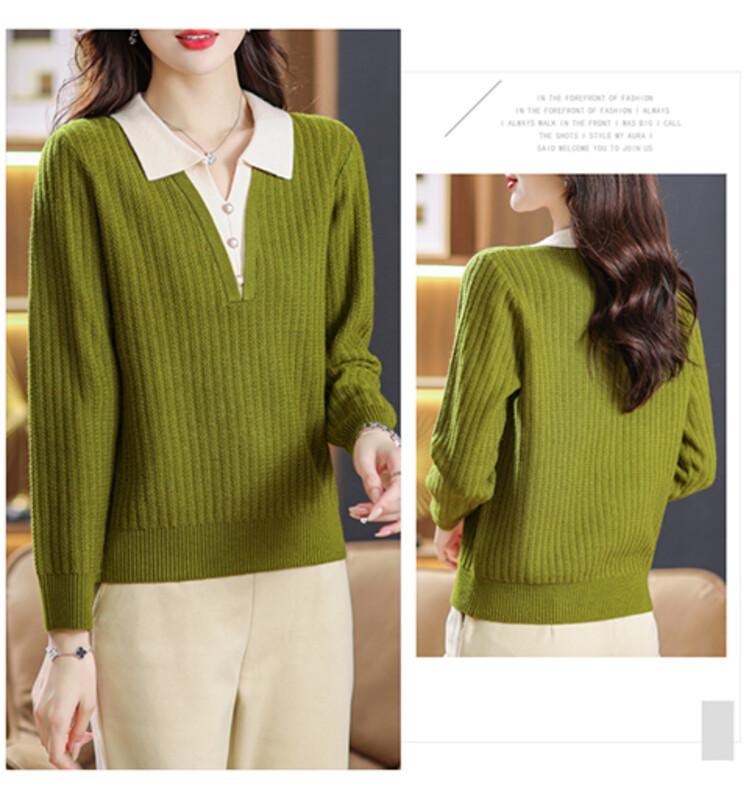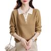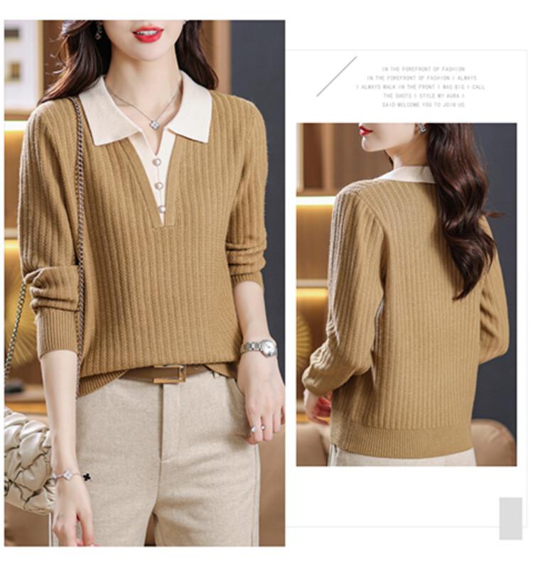 Suéter de alta gama súper bonito con solapa, top de suéter, camisa básica de otoño e invierno, suéter de dos piezas falsas para mujer, nuevo