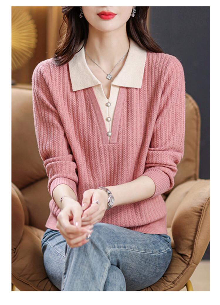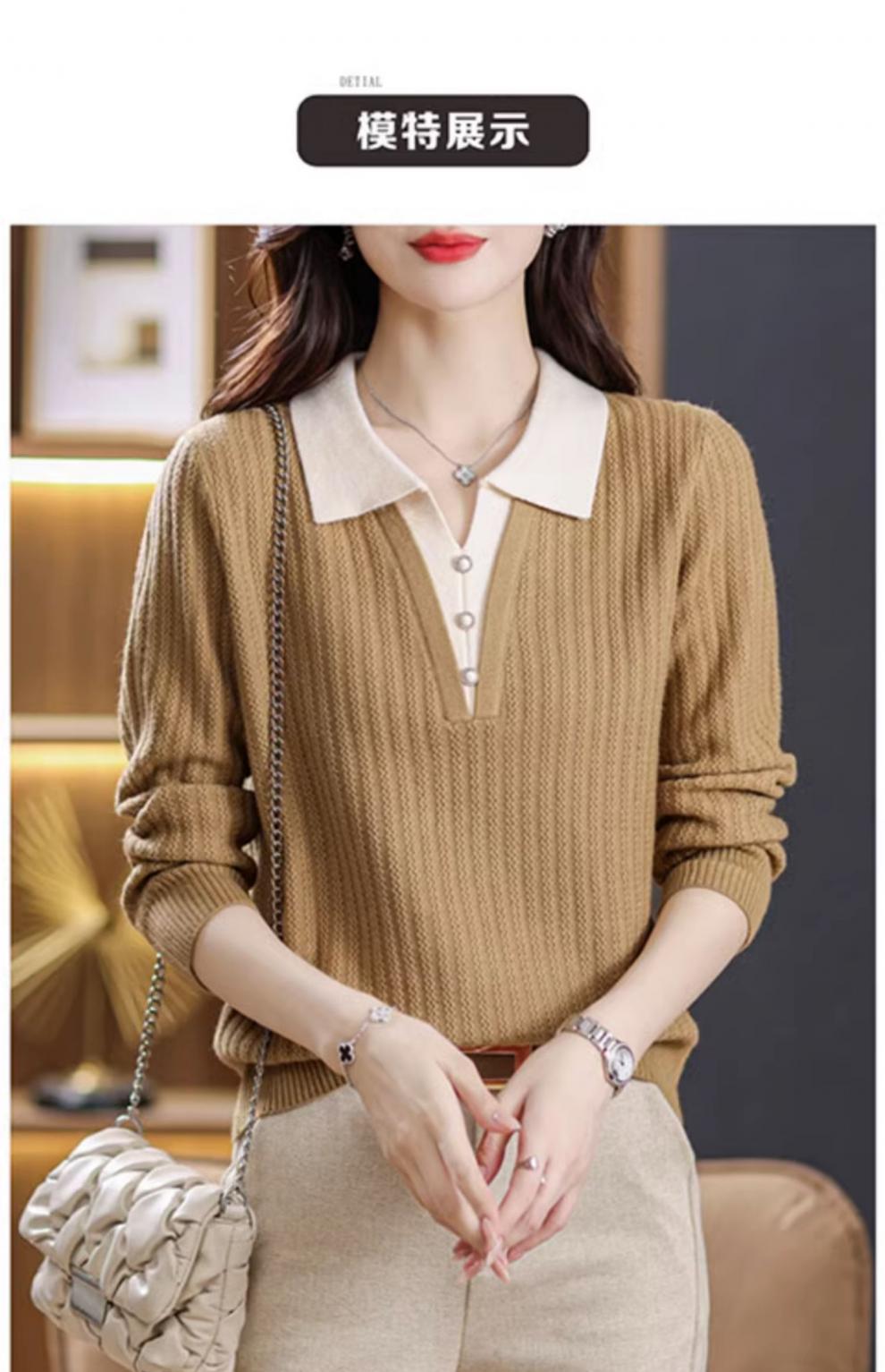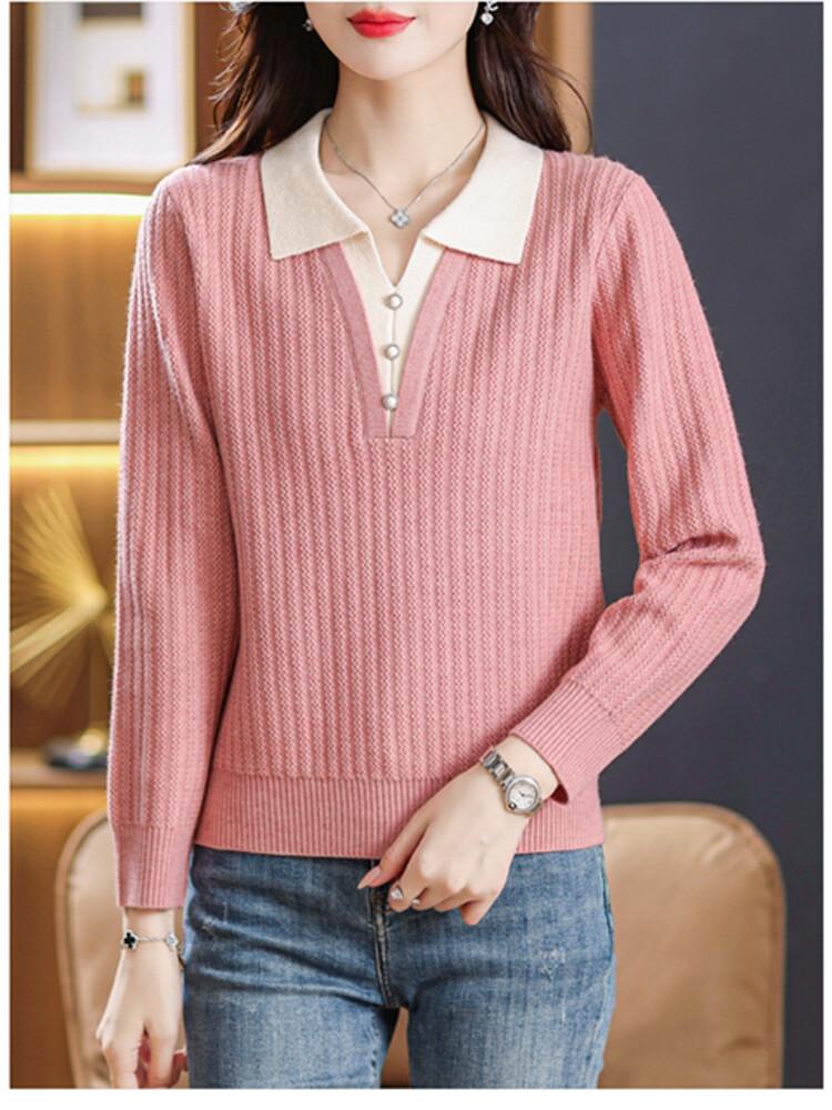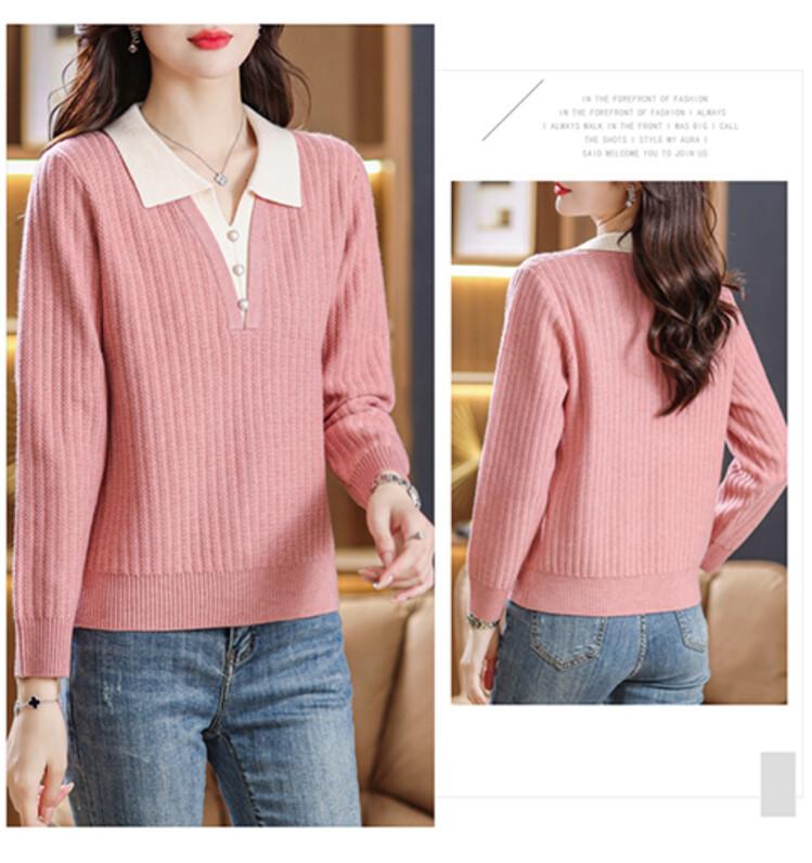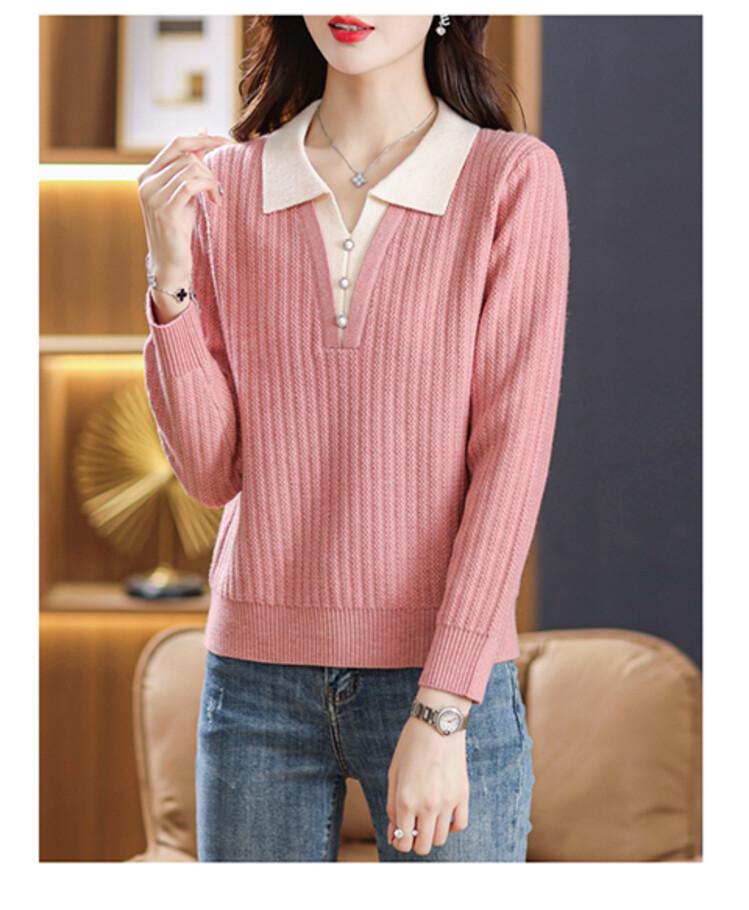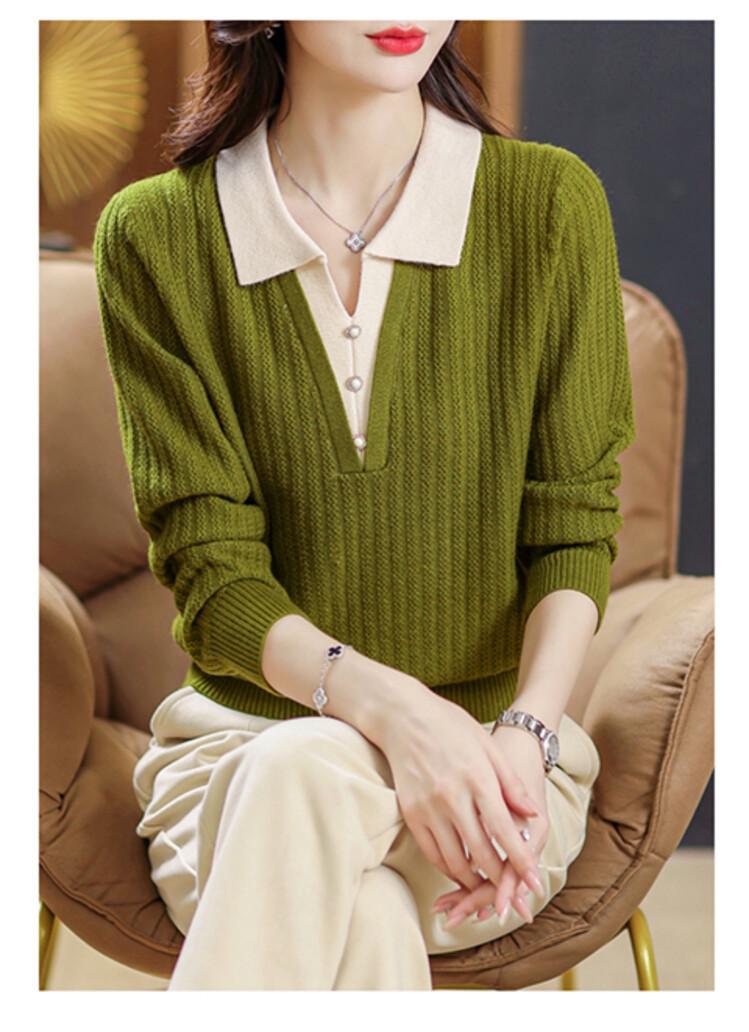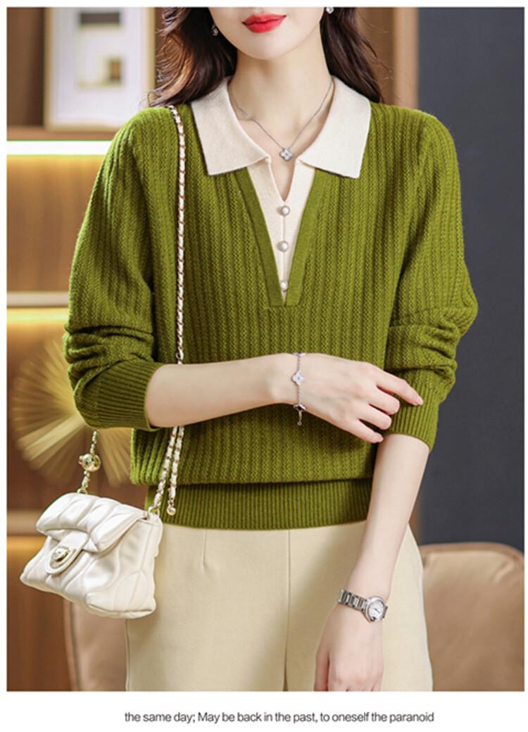 Suéter de alta gama súper bonito con solapa, top de suéter, camisa básica de otoño e invierno, suéter de dos piezas falsas para mujer, nuevo
