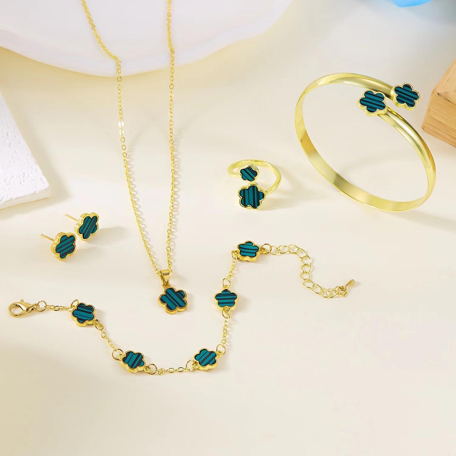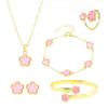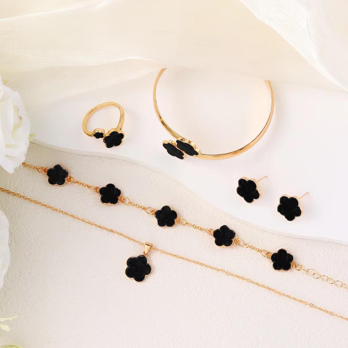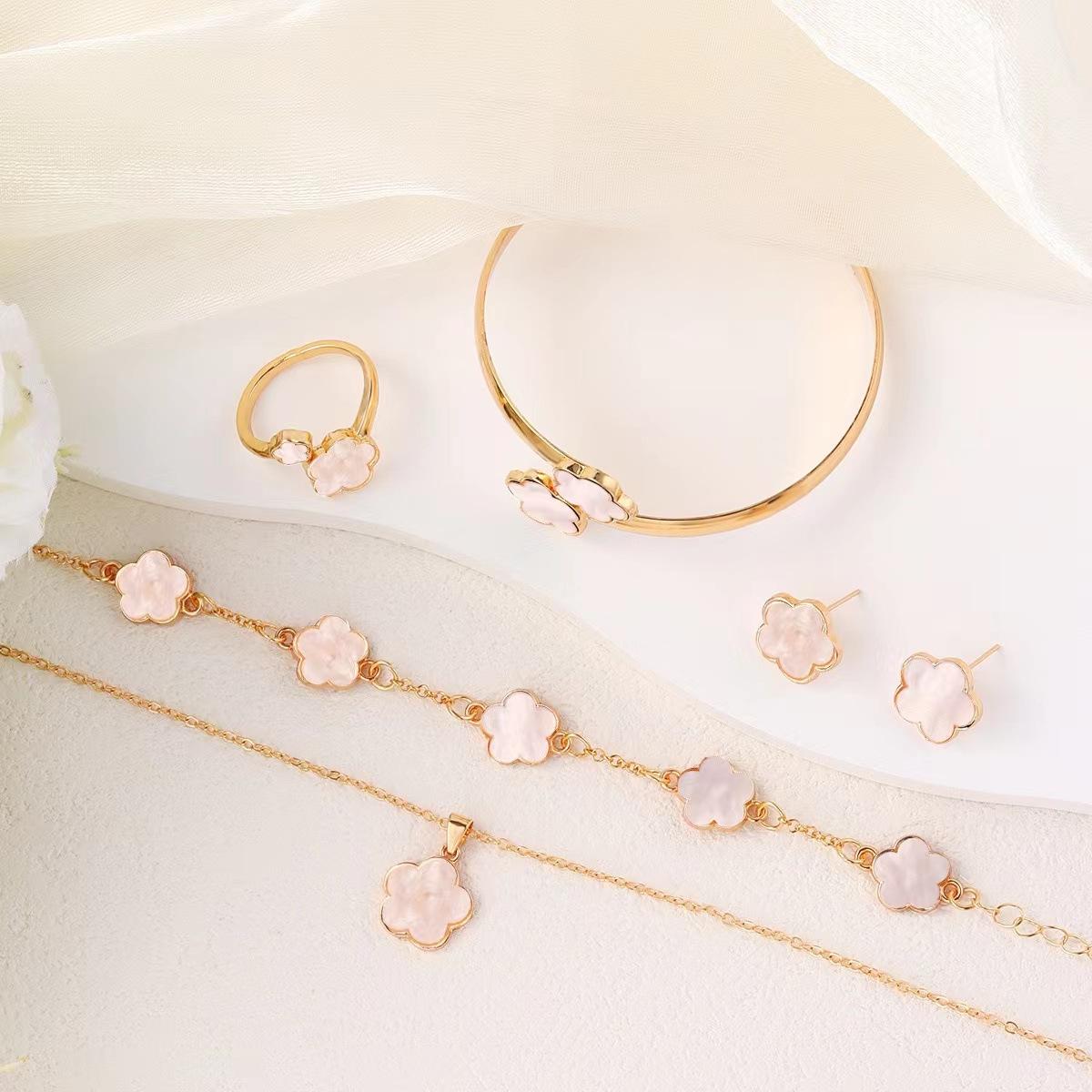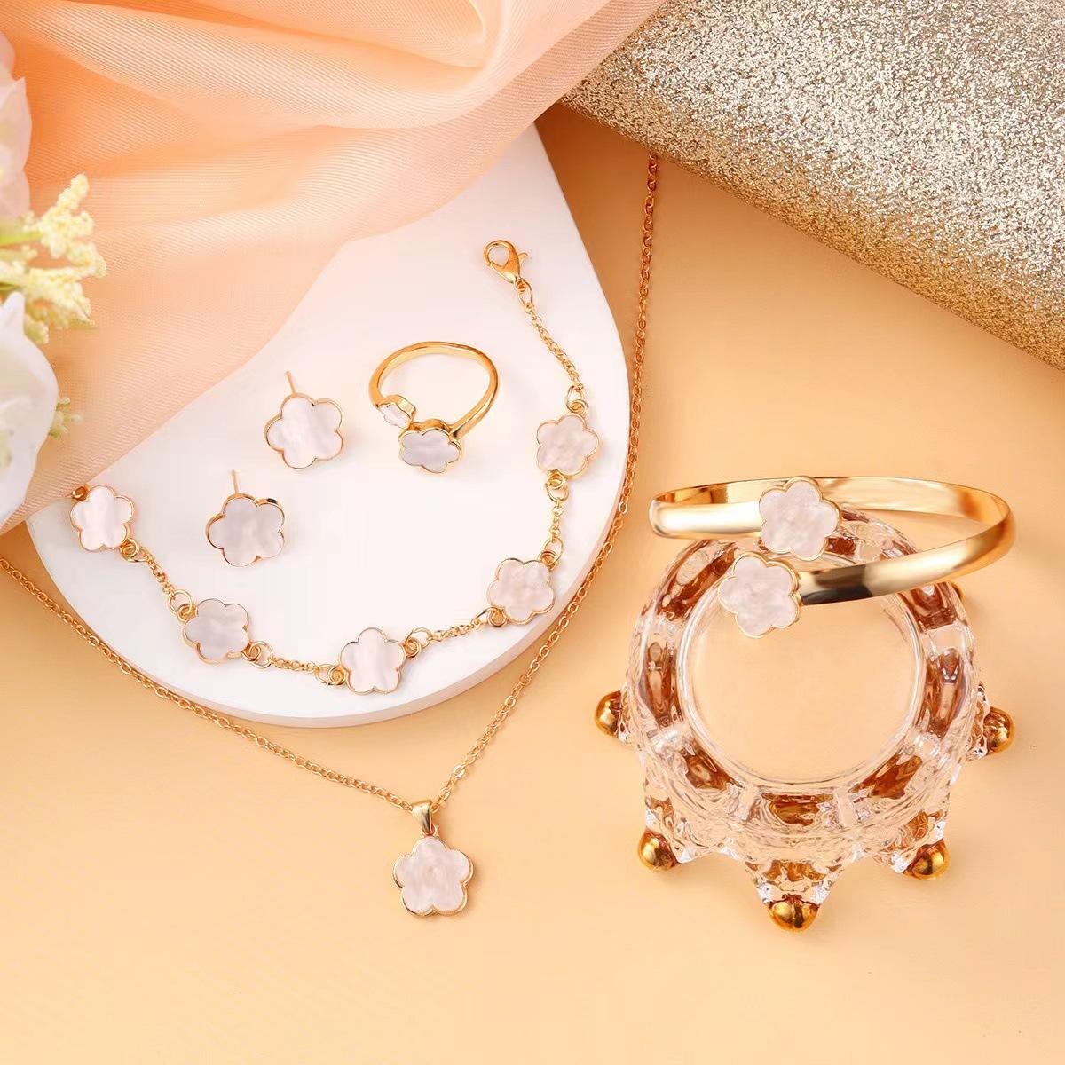 Set de collar de cinco piezas de flor de cinco pétalos de venta caliente transfronteriza + pulsera + aretes + anillo Juego elegante europeo y americano