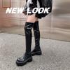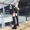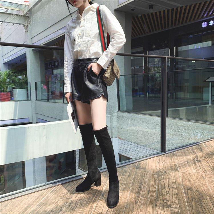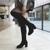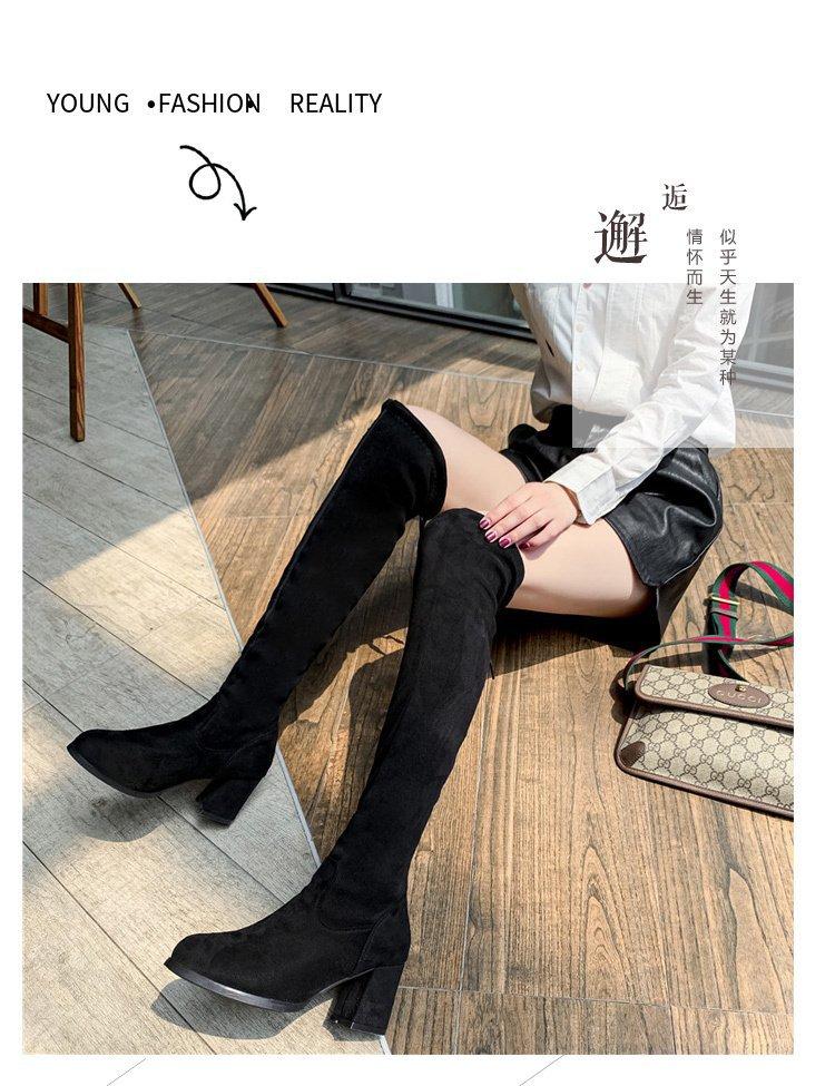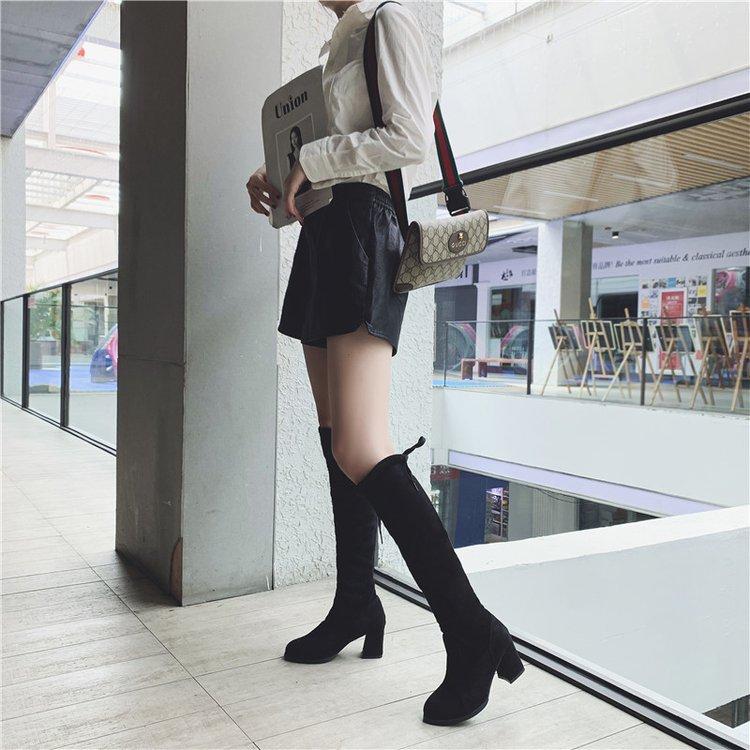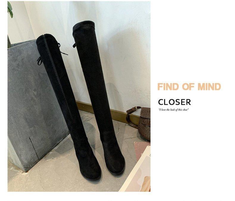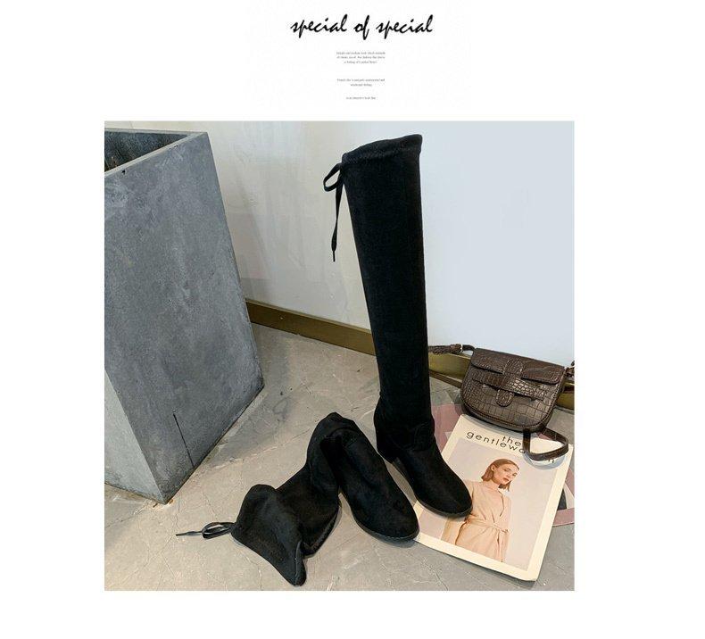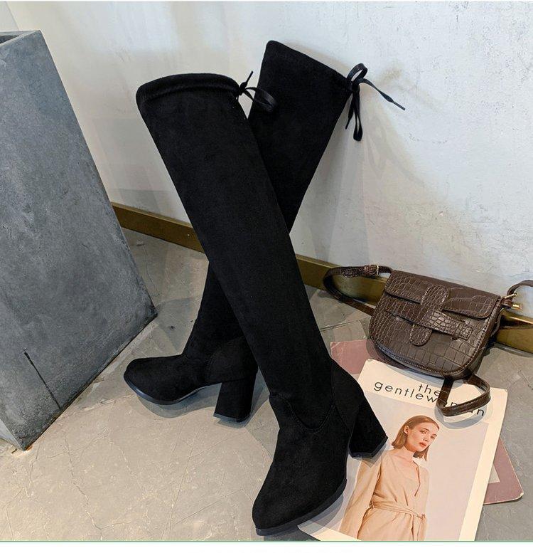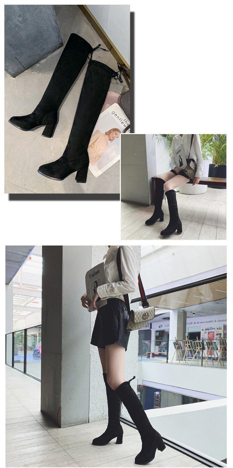 Botas por encima de la rodilla Botas de montar para mujer Gamuza Tacón grueso con cordones Felpa corta sintética Caña alta Gamuza Goma Tacón alto Punta redonda
