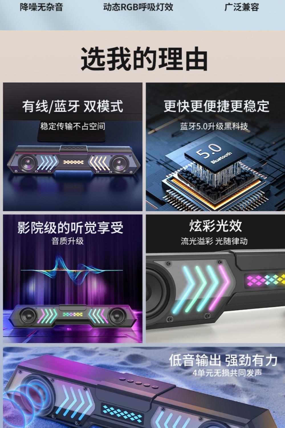 Barra de sonido Mecha RGB Colorida Nueva Transfronteriza Computadora de Escritorio Subwoofer de Alto Volumen Altavoz Bluetooth para Exterior Fuerte