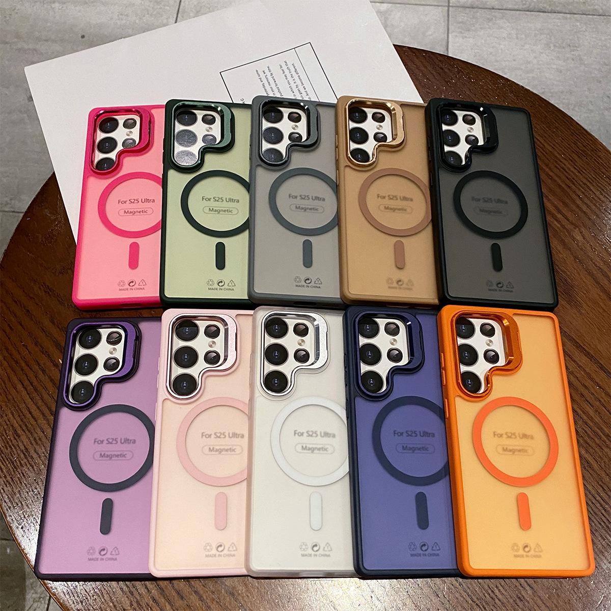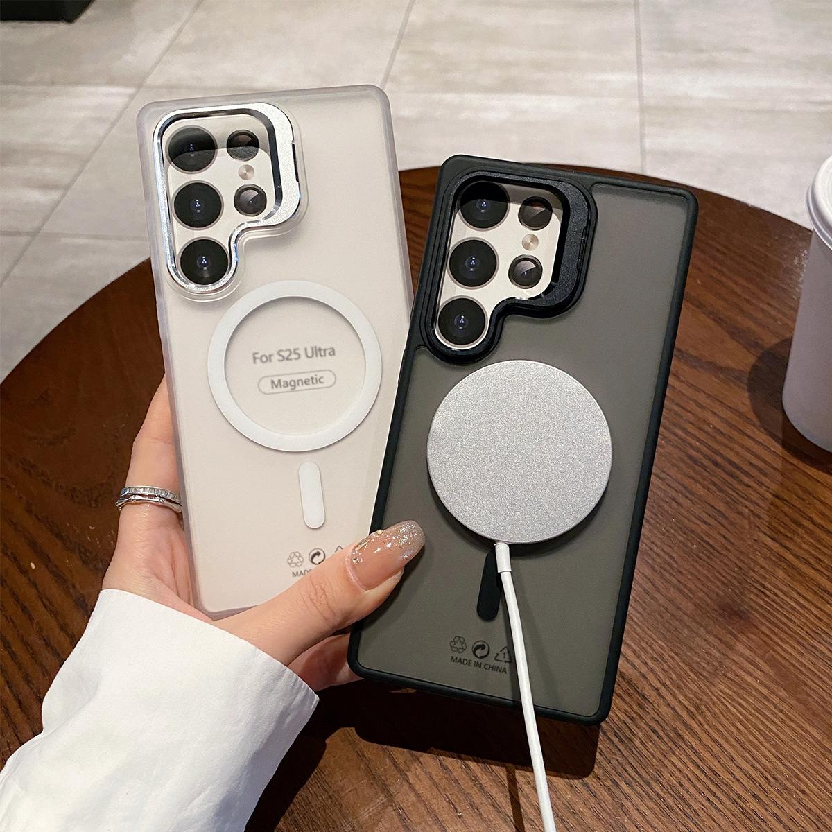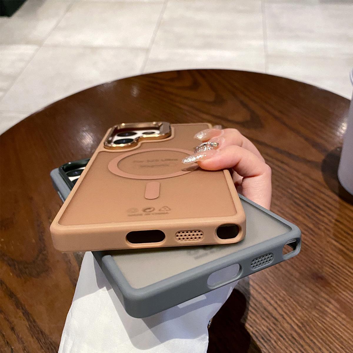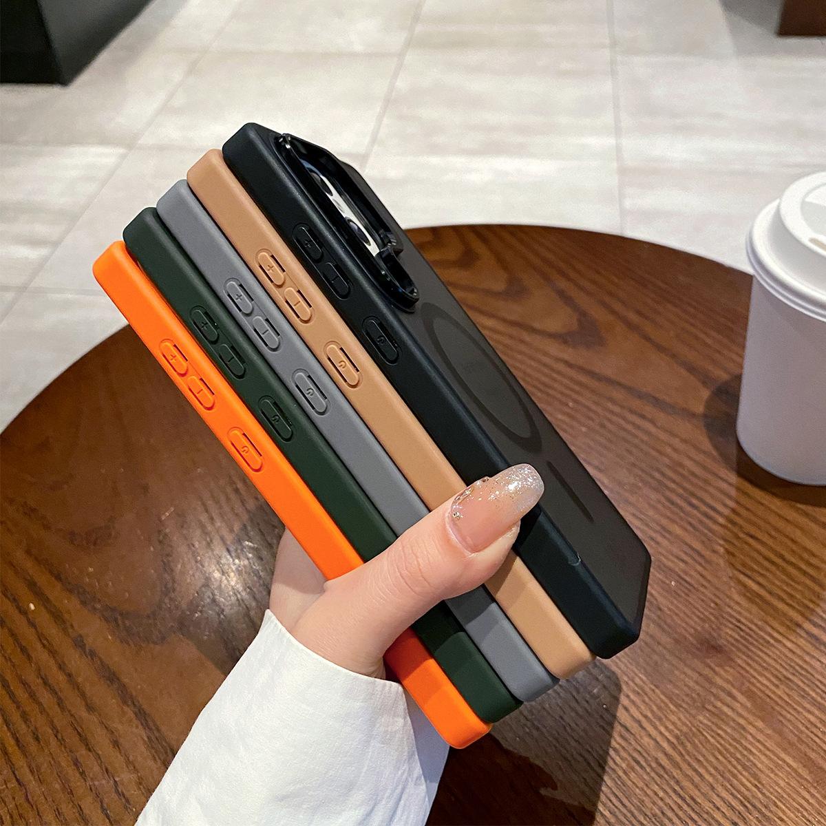 Soporte Metálico Carcasa de Succión Magnética Sensación de Piel Esmerilada Soporte con Orificio para Cámara Funda para Teléfono Móvil Adecuada para Iphone14 Carcasa de Succión Magnética Apple