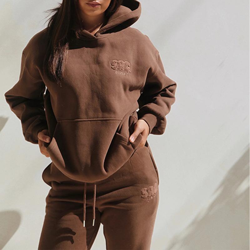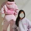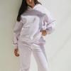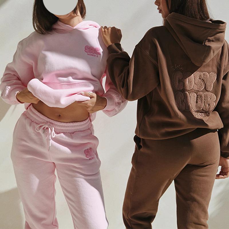 Pink sweatshirt, Purple sweatshirt, green sweatshirt, dark brown sweatshirt, Pink trousers, purple trousers, G...