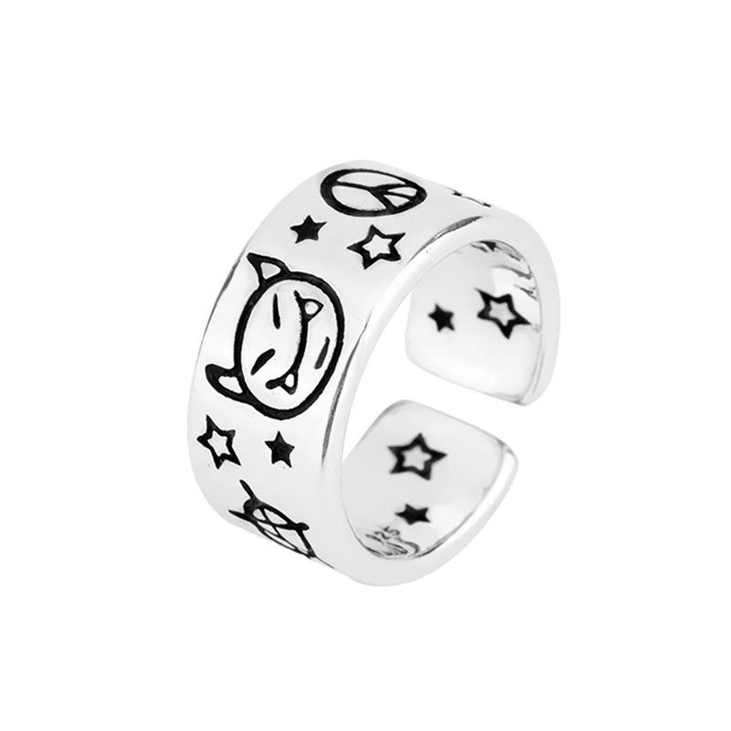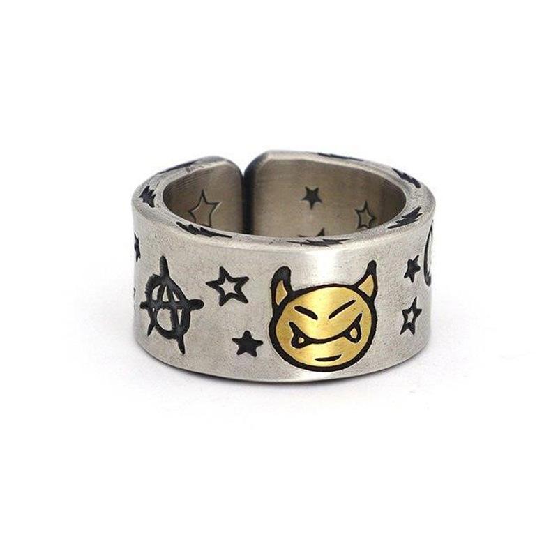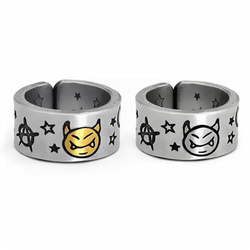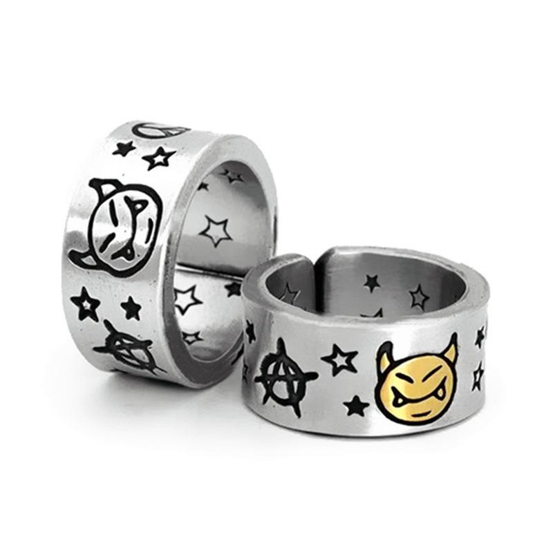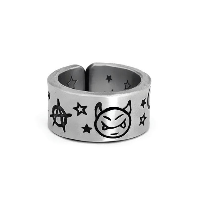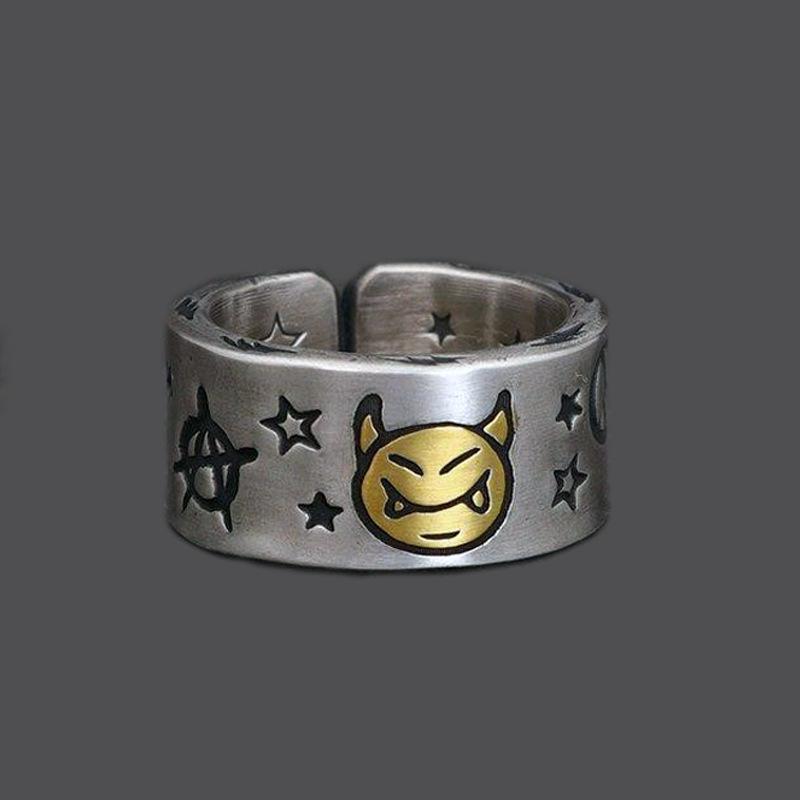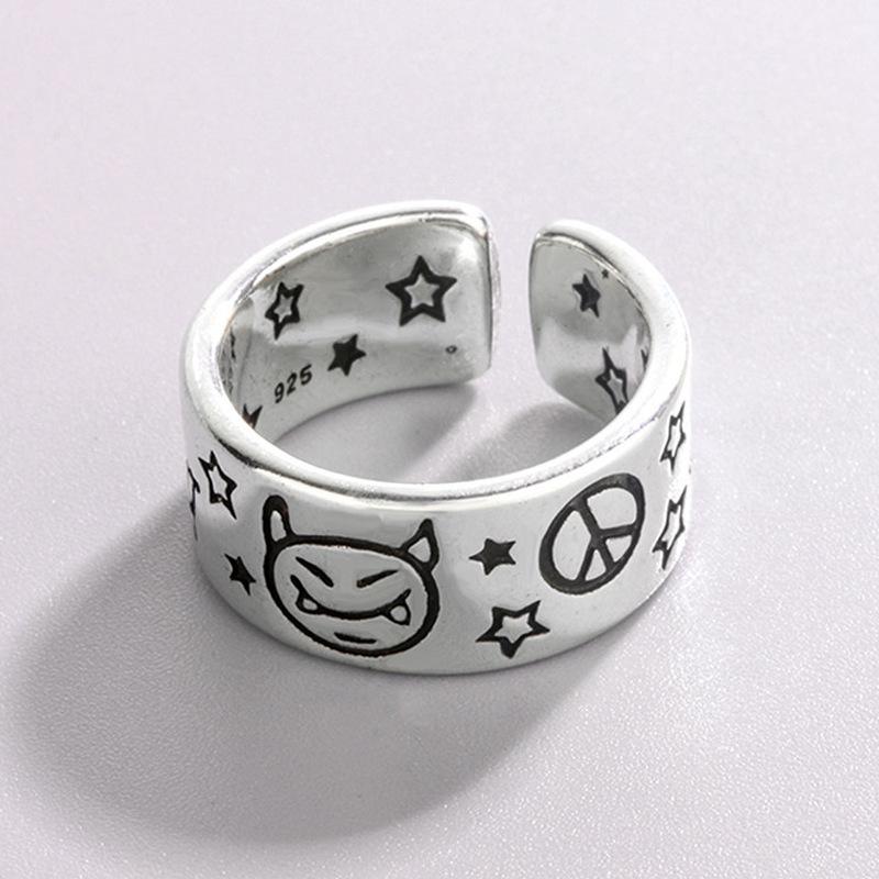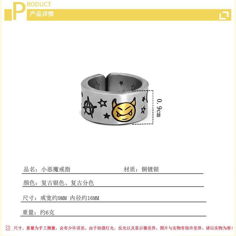 Anillo Nuevo Diablo Imp Moda Japonesa y Coreana Personalidad Plateado Tendencia Cara Ancha Estrella Abertura Anillo Ajustable Venta al por Mayor