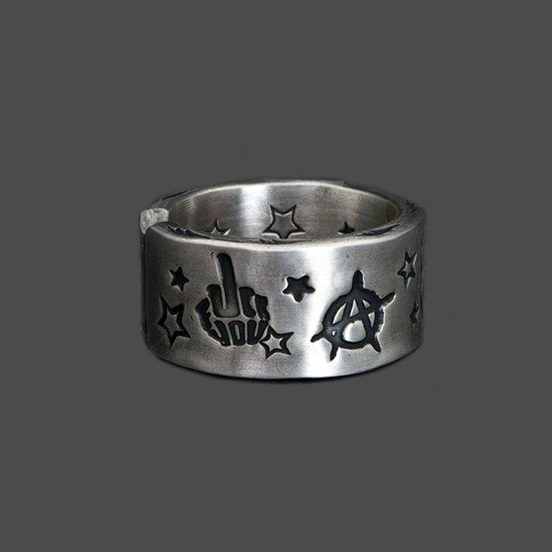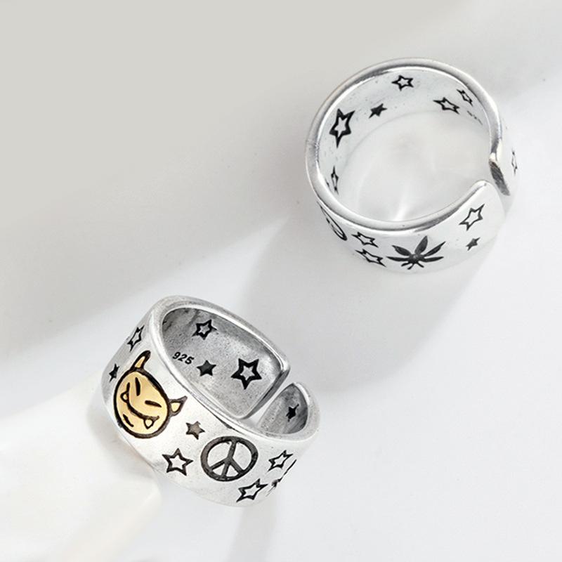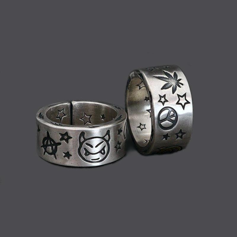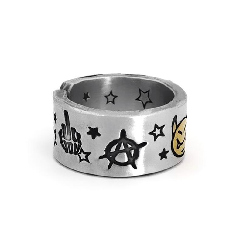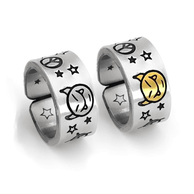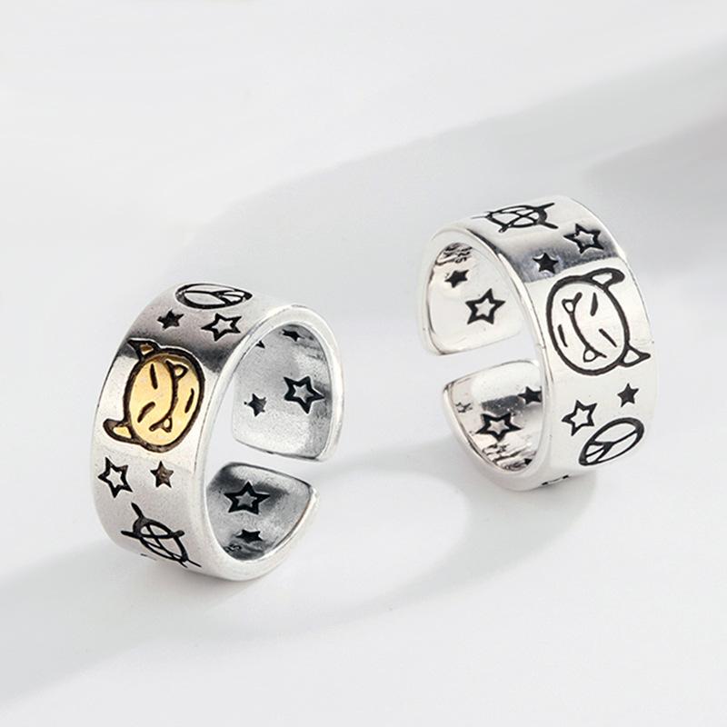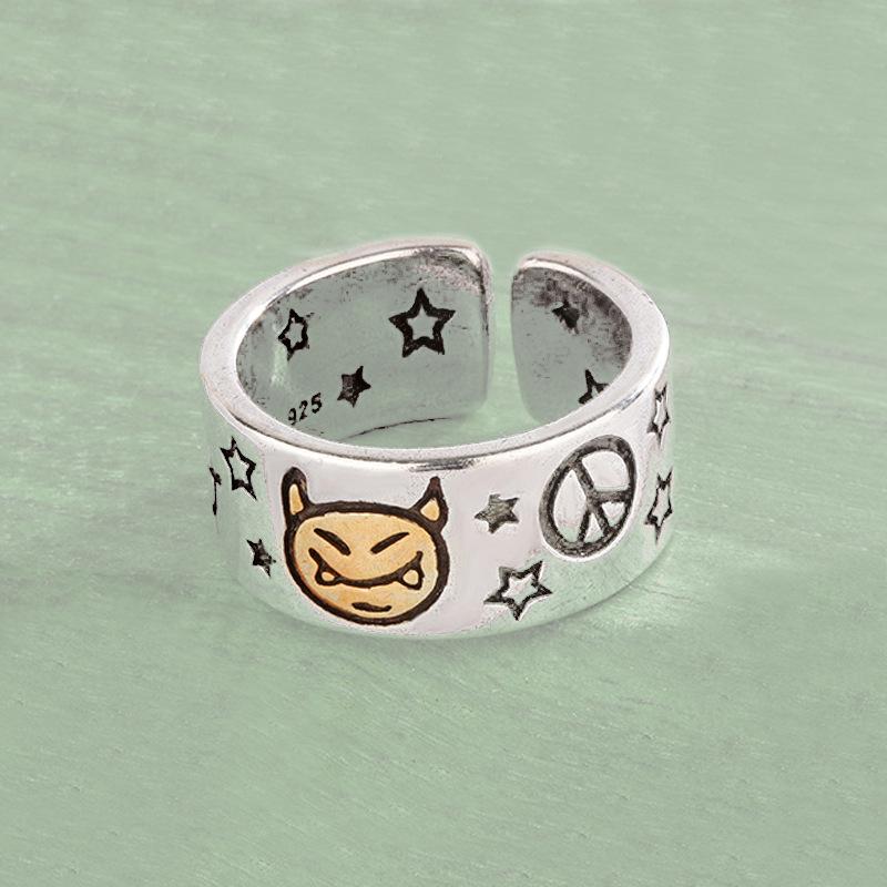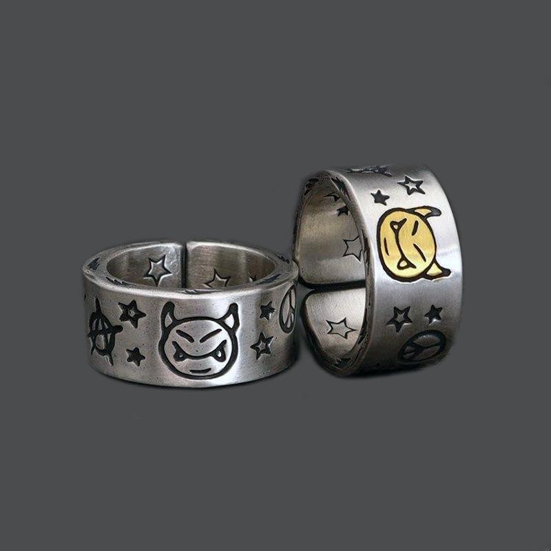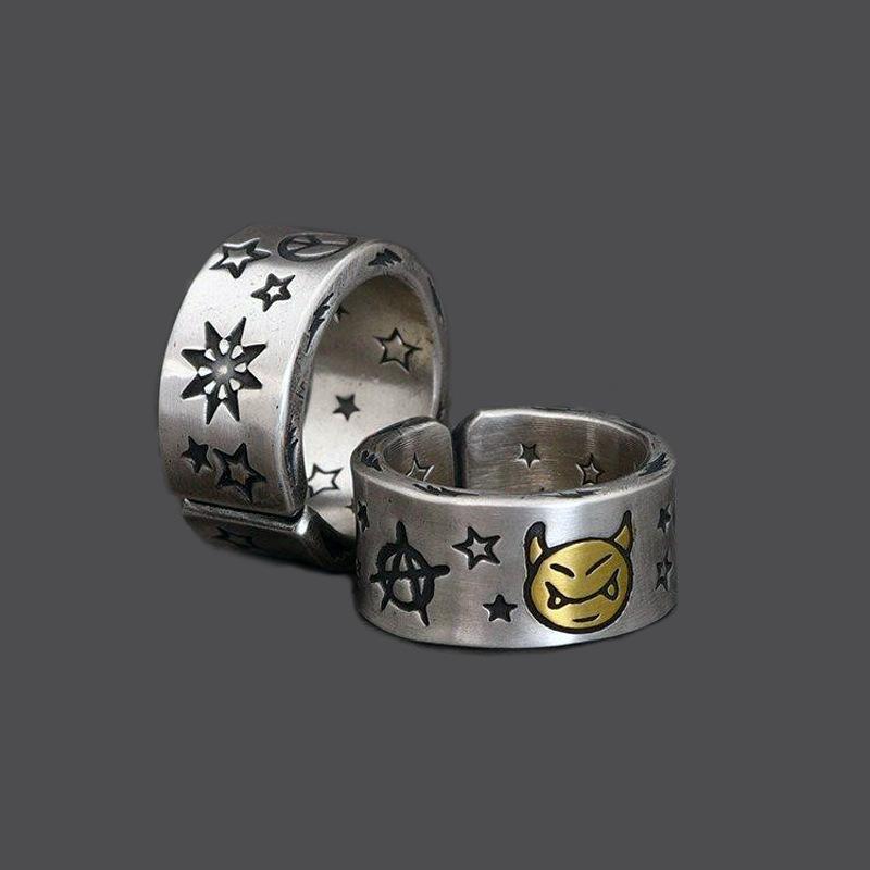 Anillo Nuevo Diablo Imp Moda Japonesa y Coreana Personalidad Plateado Tendencia Cara Ancha Estrella Abertura Anillo Ajustable Venta al por Mayor