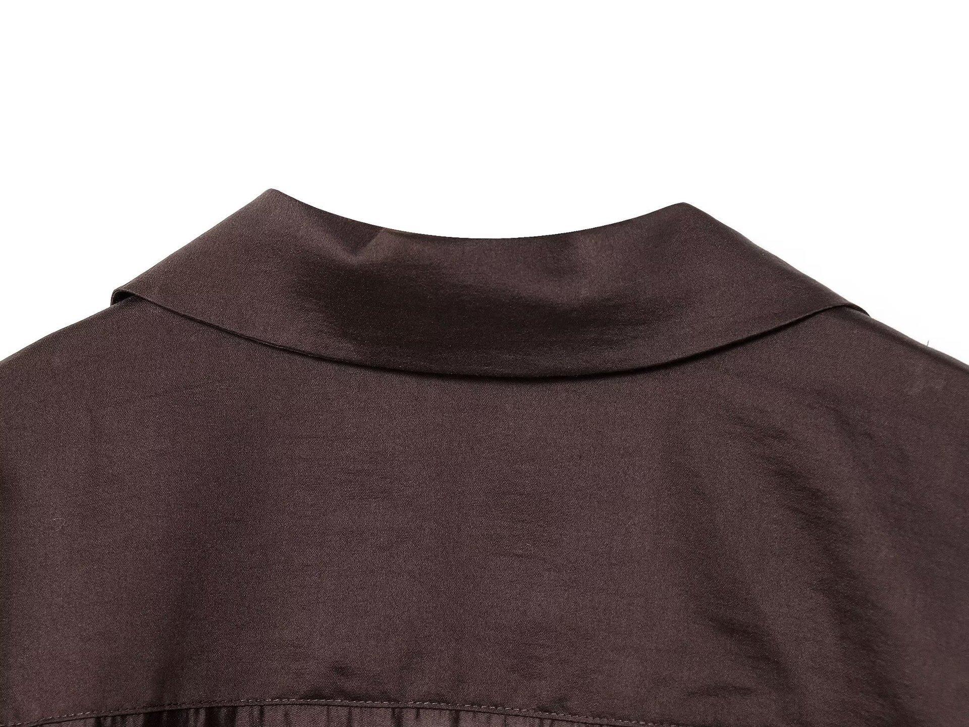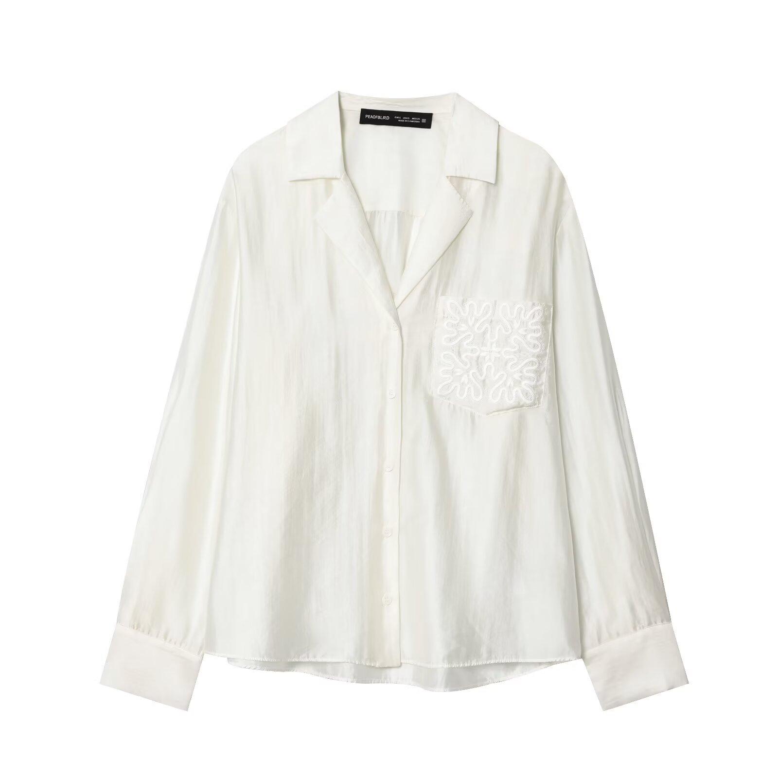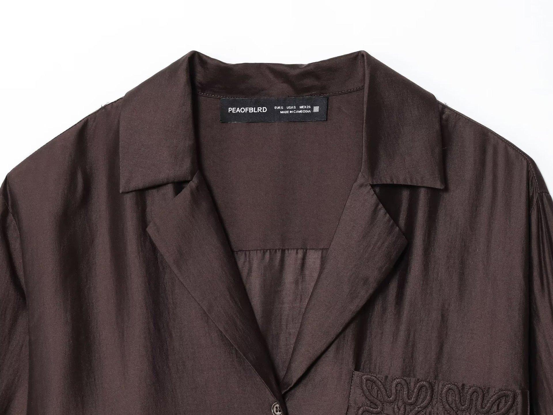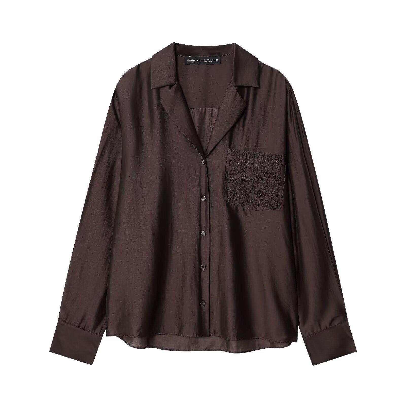 Venta al por mayor transfronteriza Otoño 2025 Nueva Ropa de Mujer Moda Callejera Europea y Americana Bordado Decoración de Bolsillo Camisa de Manga Larga Color Café