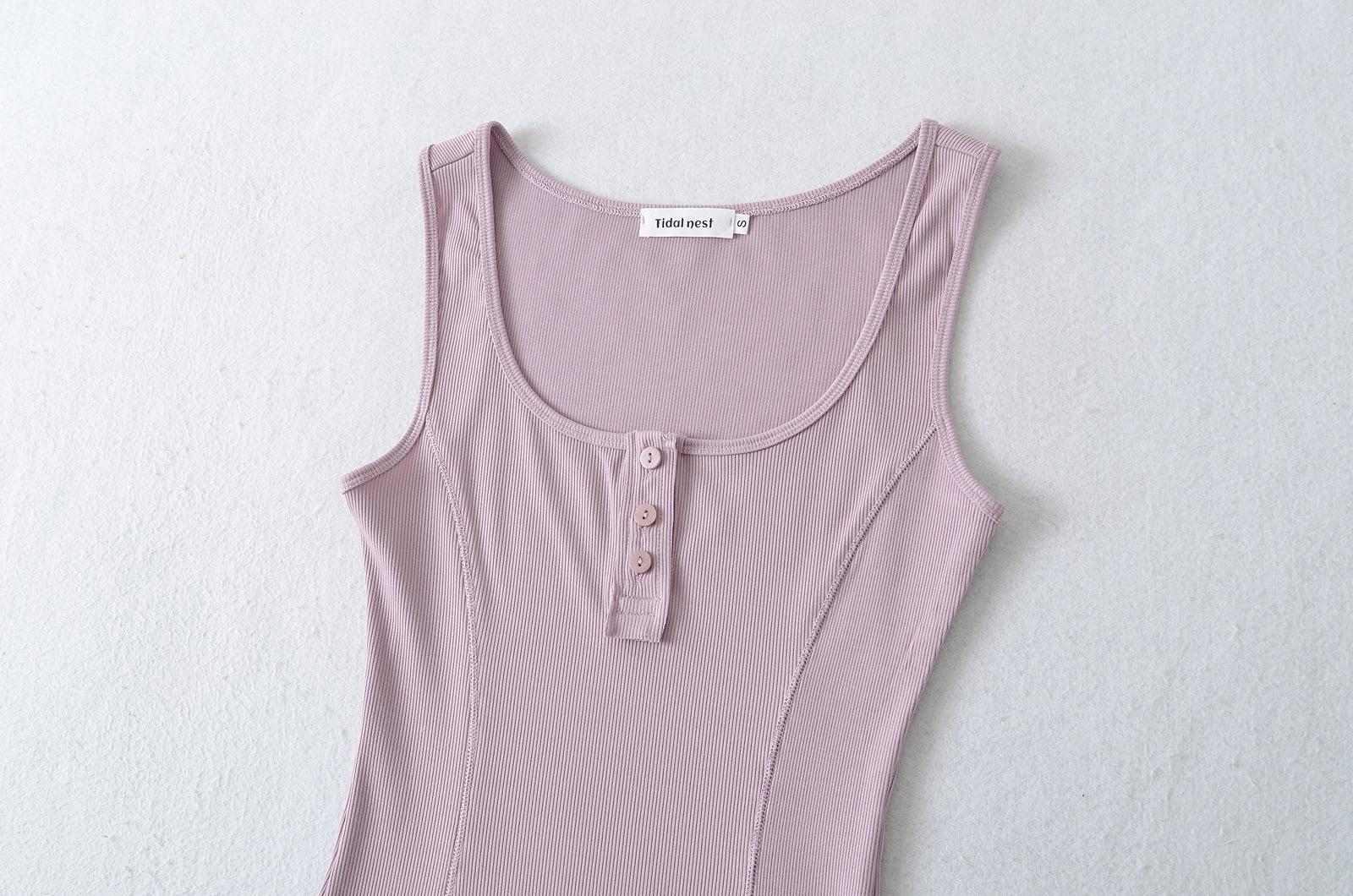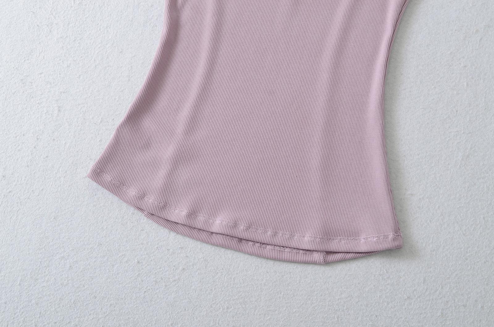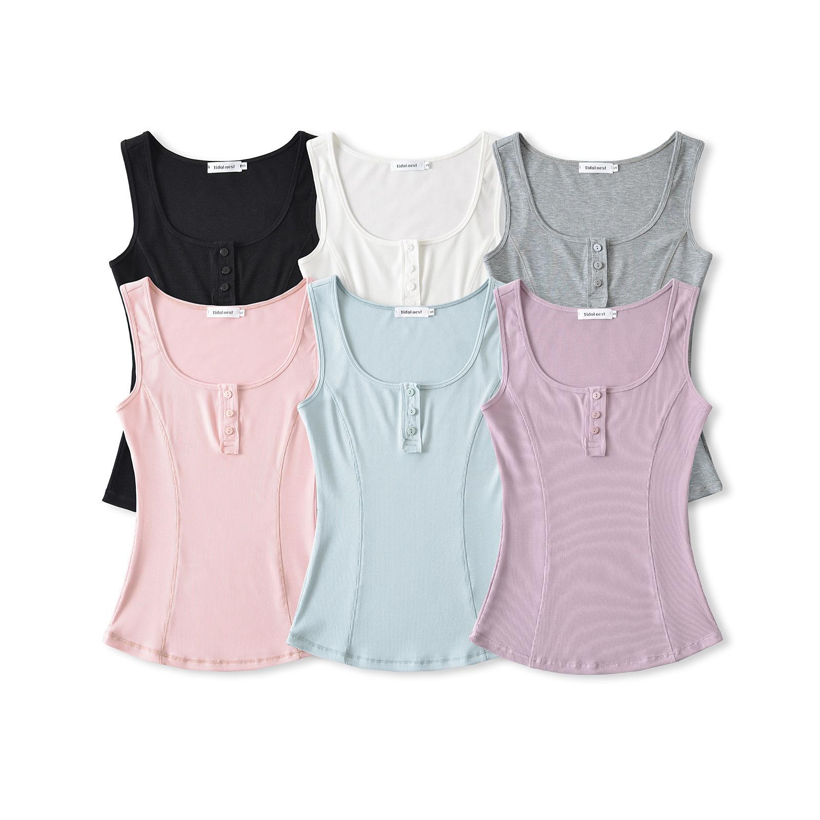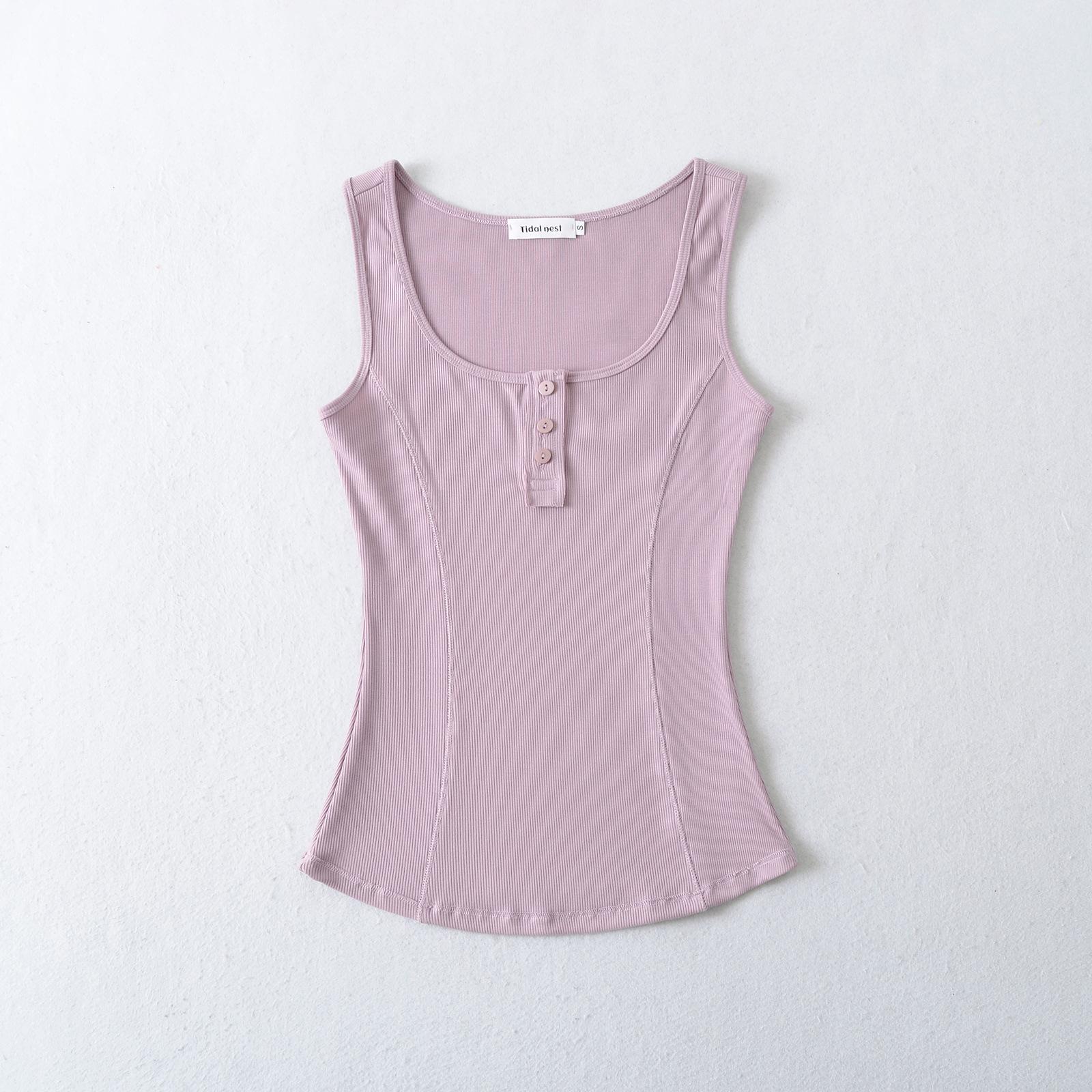 2025 Camisola Francesa Slim Sexy Cuello Cuadrado Verano Top Corto Básico Adelgazante de Cintura con Tres Botones
