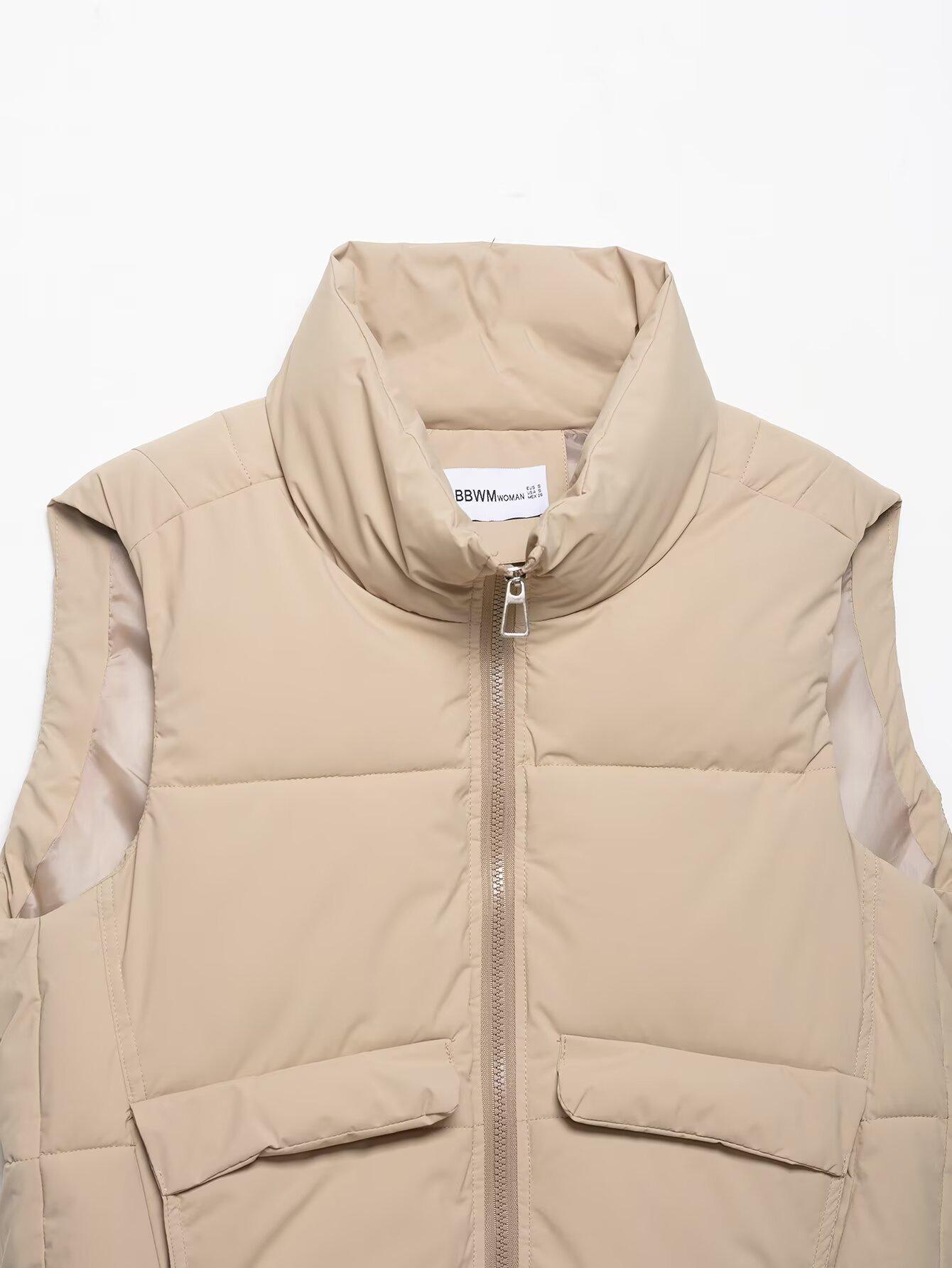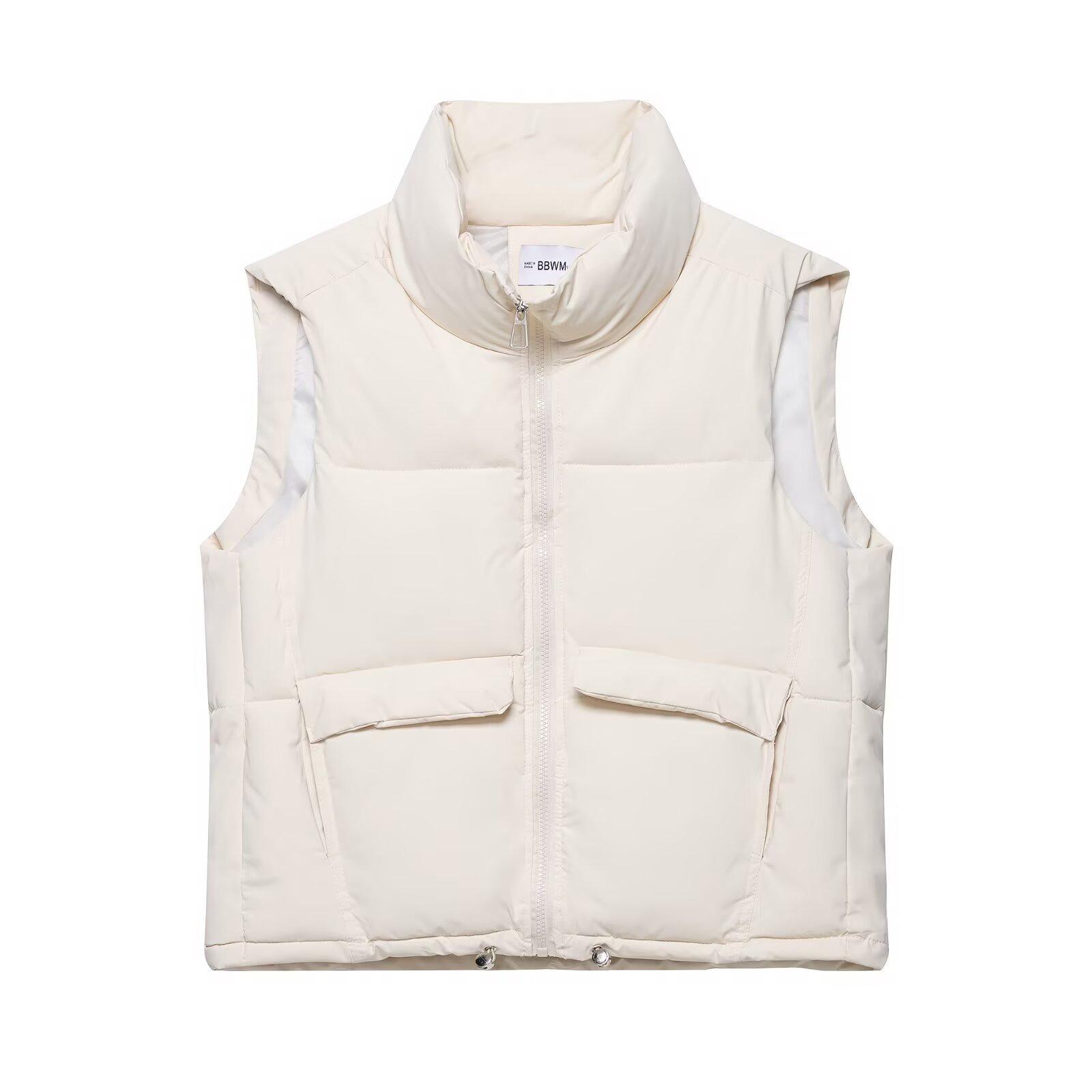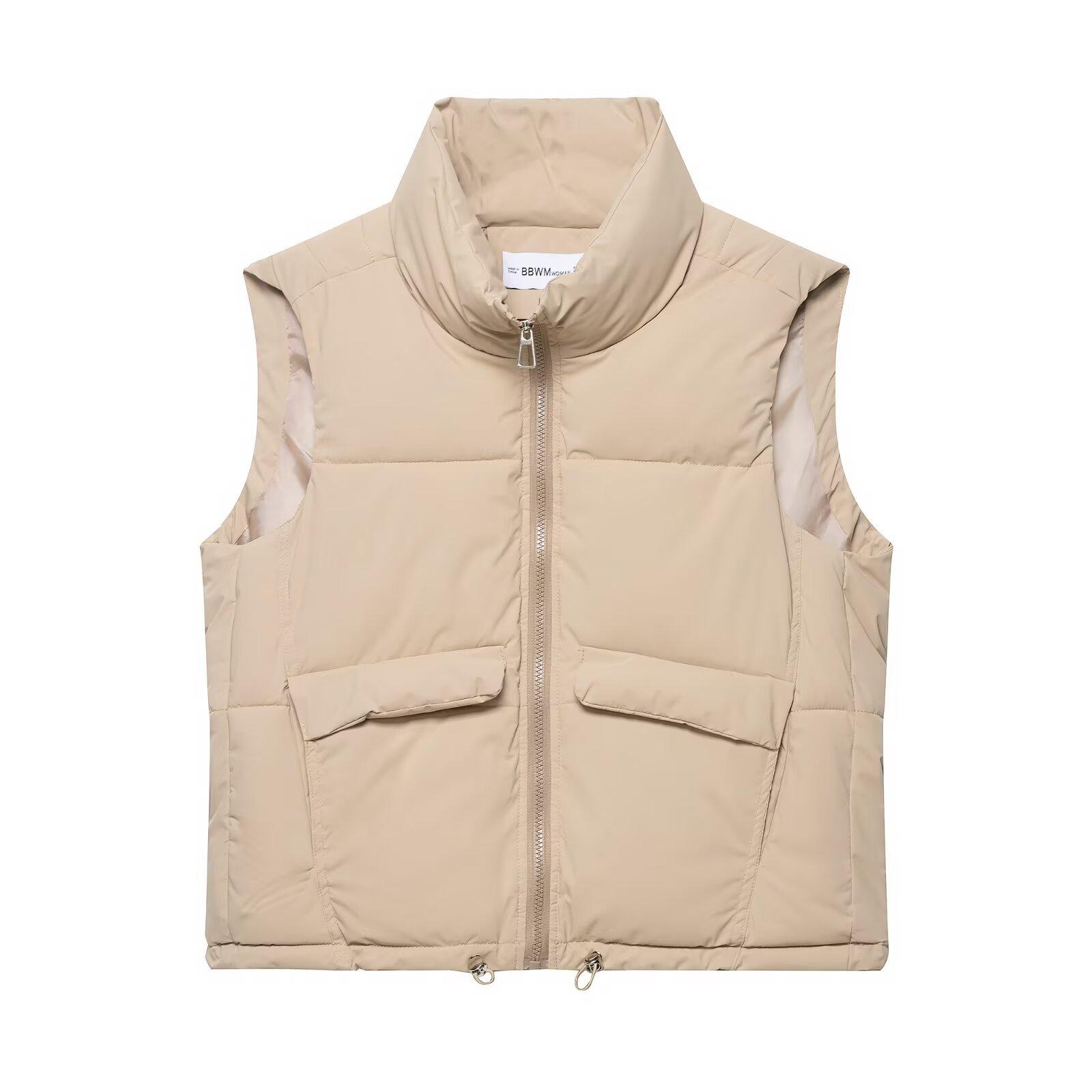 6762 stand-up collar off-white vest, 6762 stand-up collar black vest, 6762 stand-up collar khaki vest, 6762 st...
