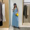 Foto real Vestido de ramio Temperamental adelgazante vestido camisola mujer orquídea negro malla tie-dye largo medio estilo con capucha