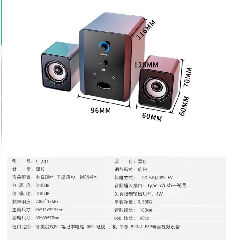 201 altavoces de computadora altavoces pequeños altavoces para computadora portátil conexión de una línea USB/TC de escritorio Bluetooth subwoofer con micrófono