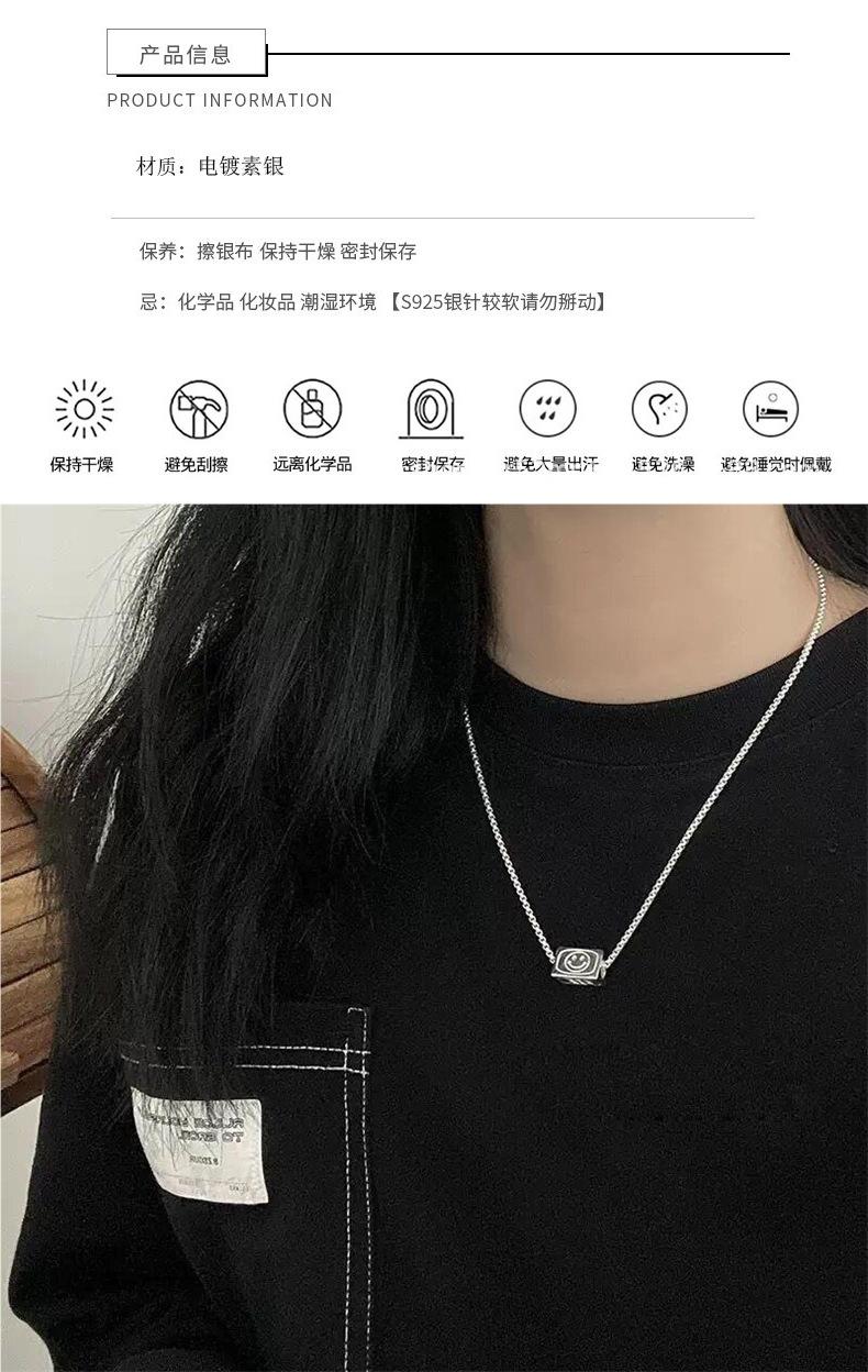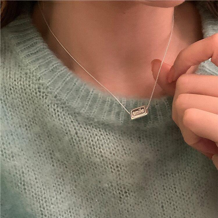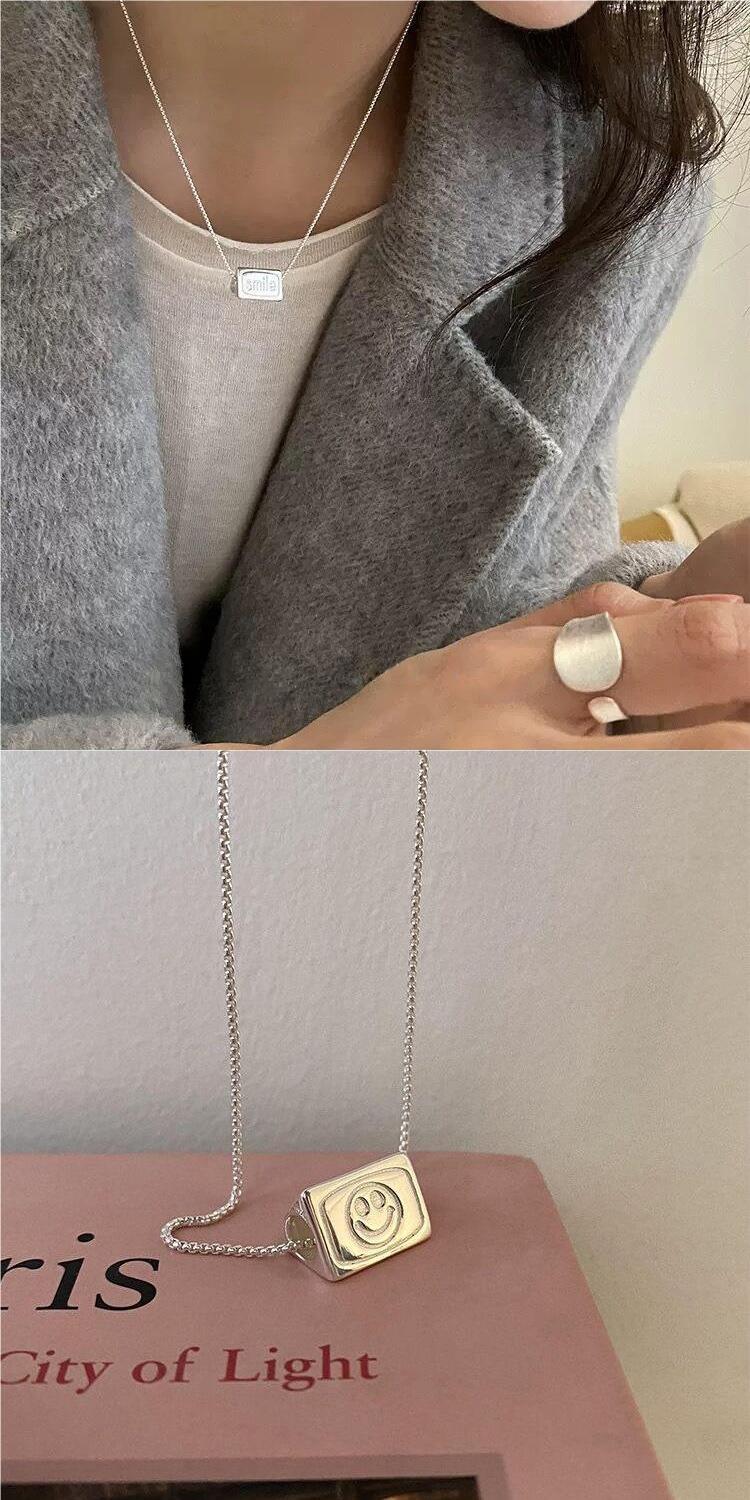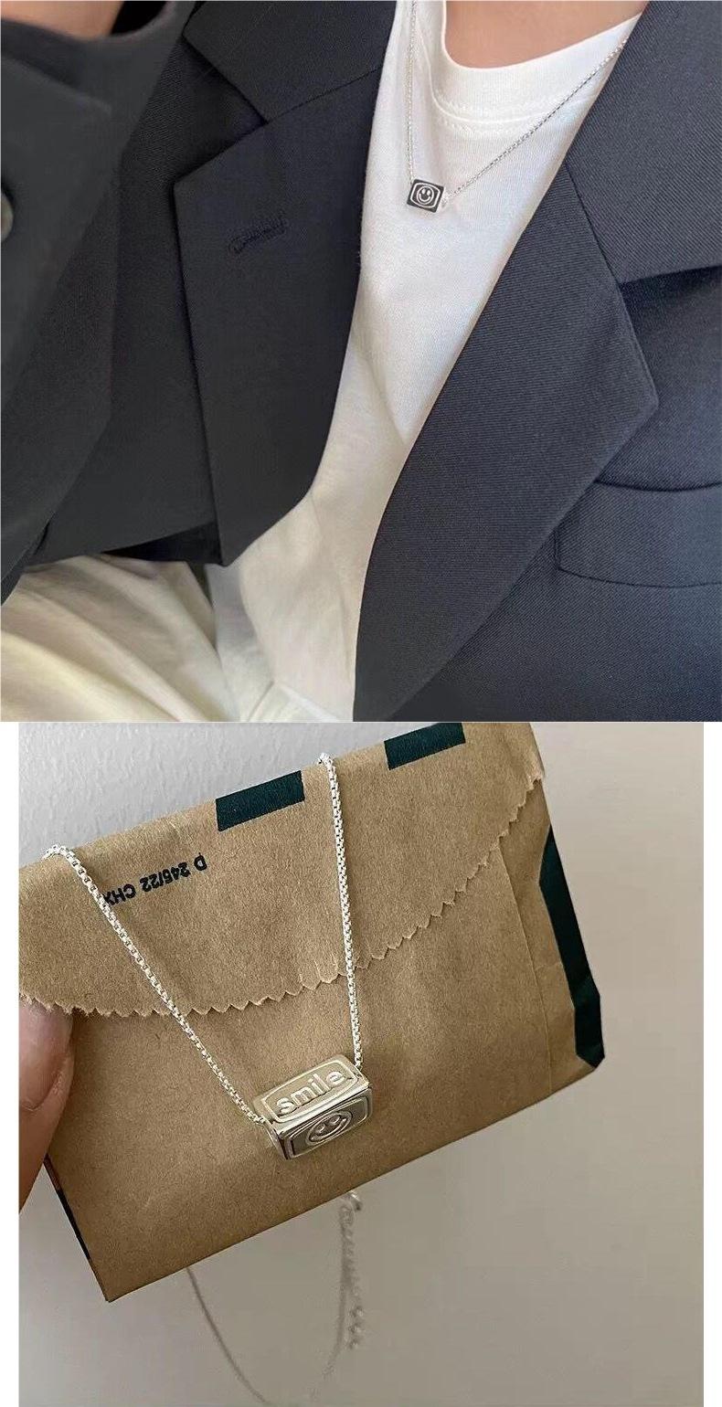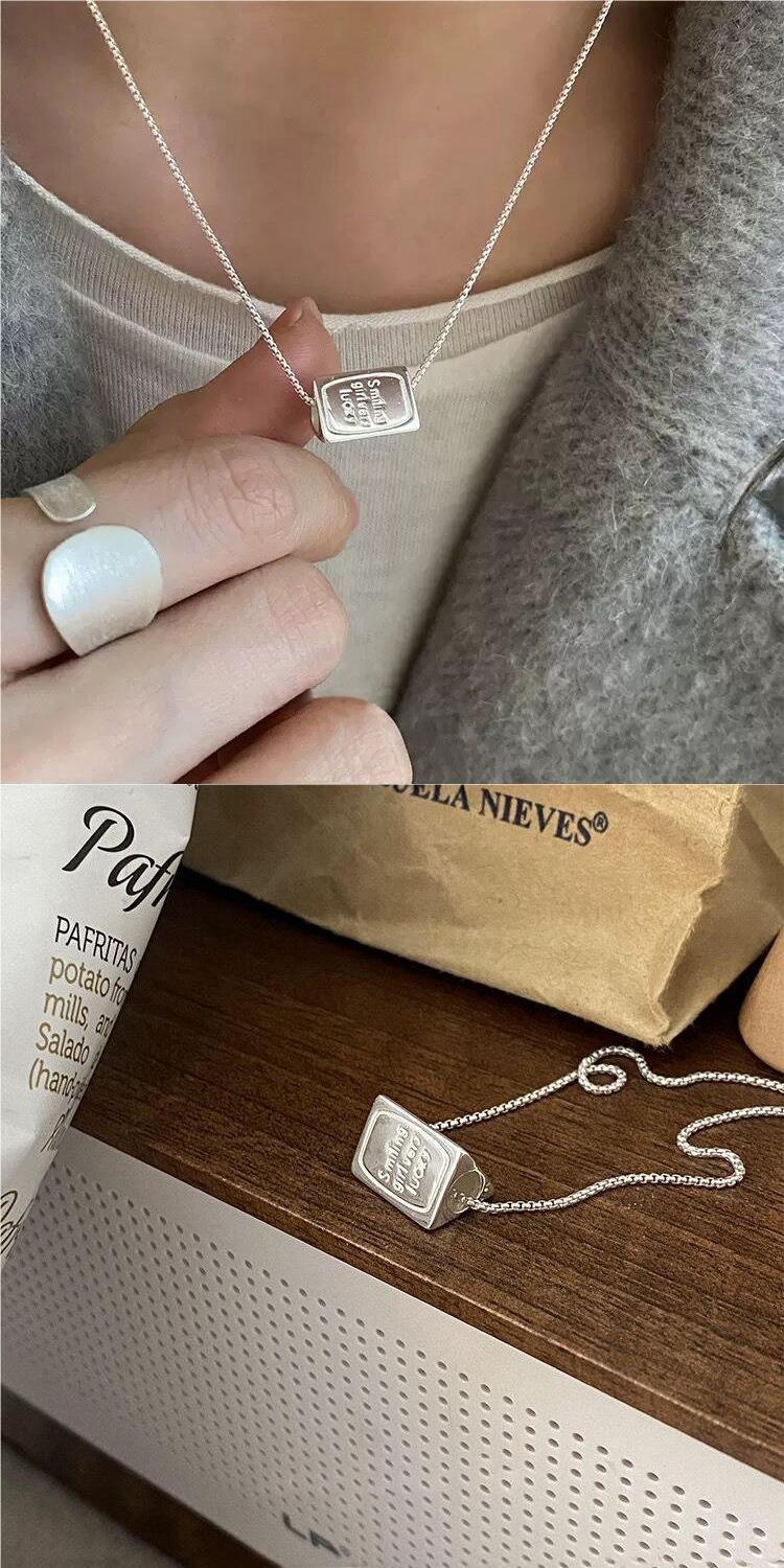 Collar con colgante abatible de tres lados para mujer, estilo coreano, personalidad, moda, letra, versátil, chapado en plata S925, cadena para clavícula versátil, gargantilla