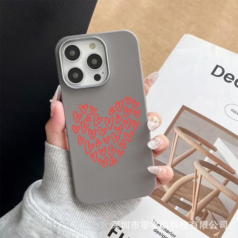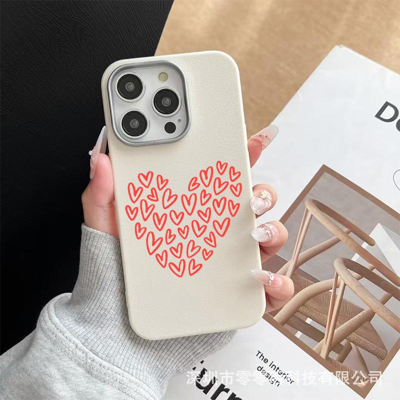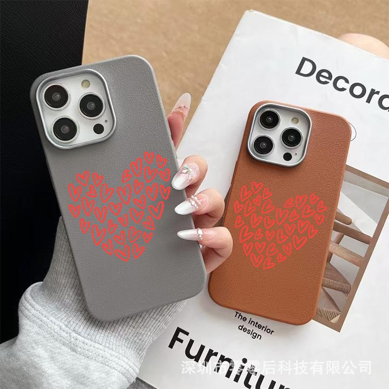 Carcasa de Cuero Rojo Amor para iPhone15pro max Carcasa para Teléfono Móvil Apple 16 Nuevo 14/13 Cubierta Protectora 12