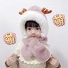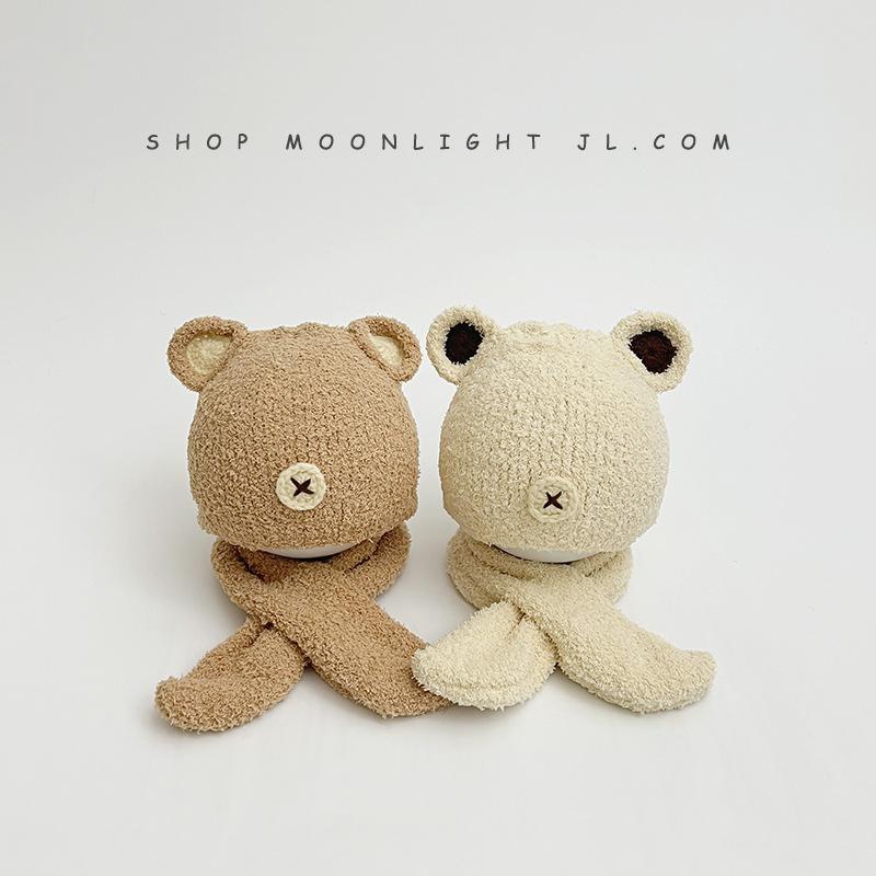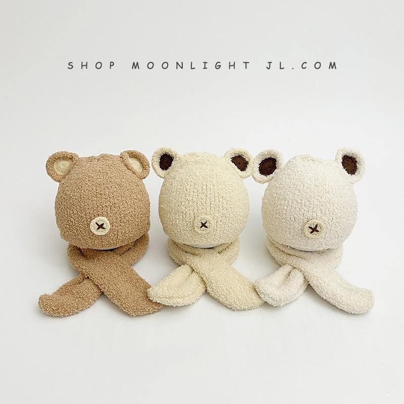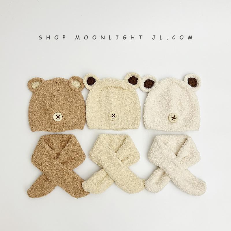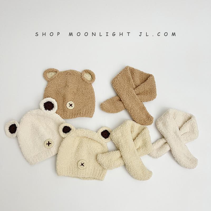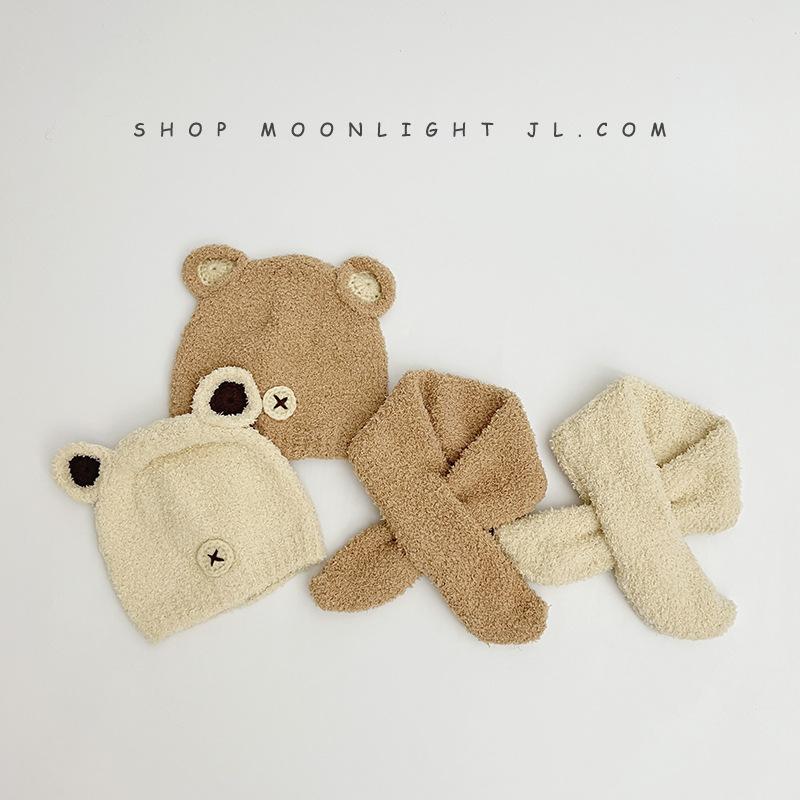 Beige hat + scarf set, soft contrasting color small ears bear + 44-48cm (recommended for 0-3 years old) + one size fits all