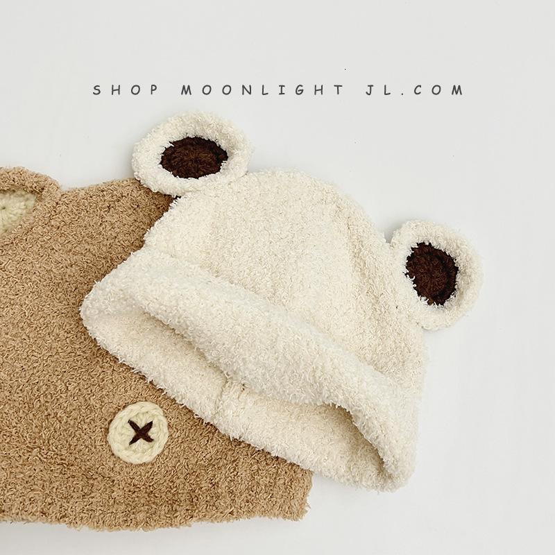 Beige single hat, super soft contrasting color small ears bear + 44-48cm (recommended for 0-3 years old) + one size fits all