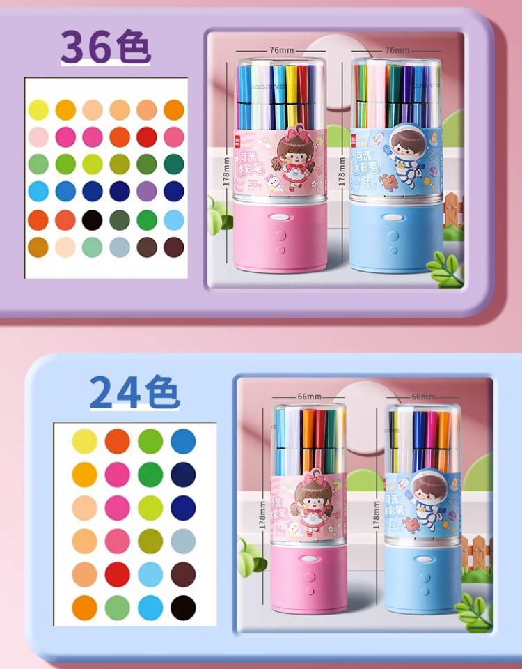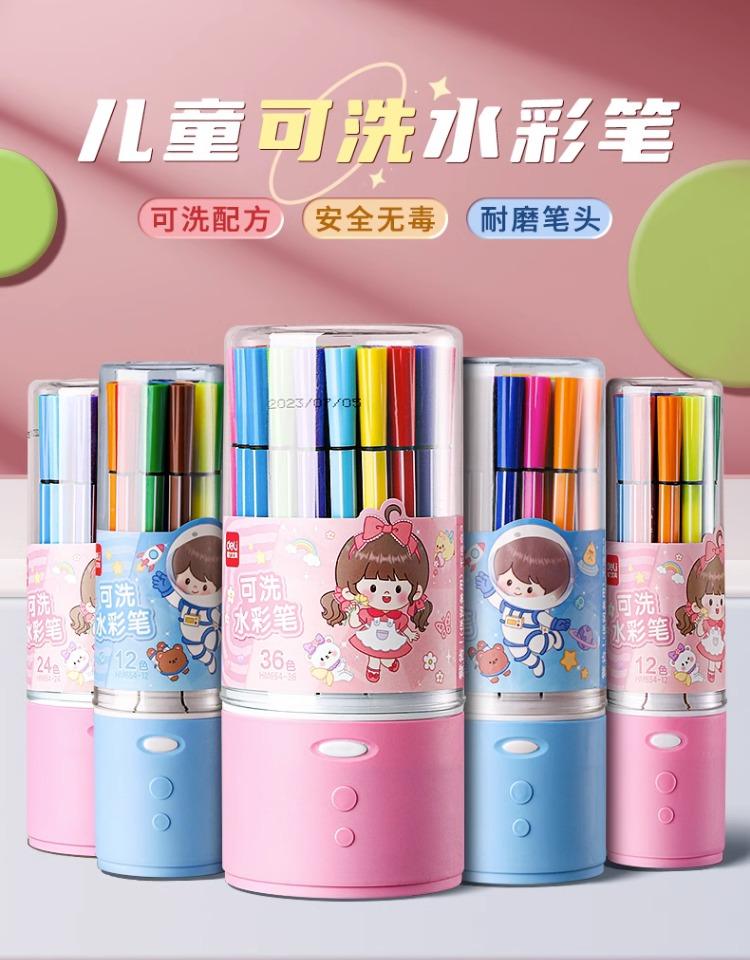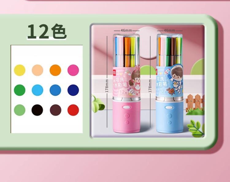 Deli Pluma de Acuarela 24 Colores Lavable para Niños Jardín de Niños Bebé Estudiante de Primaria Pincel para Pintar Pluma de Color Set de Herramientas de Pintura