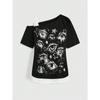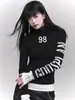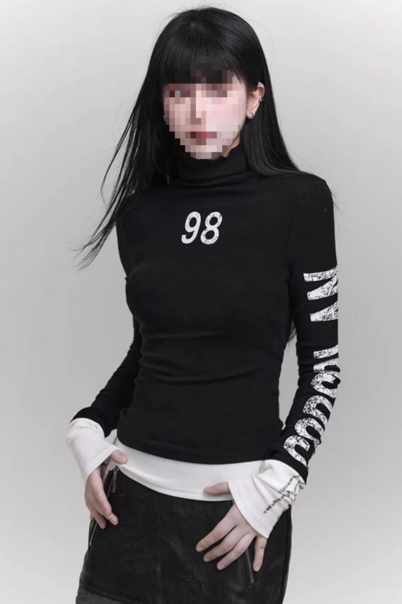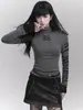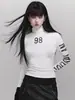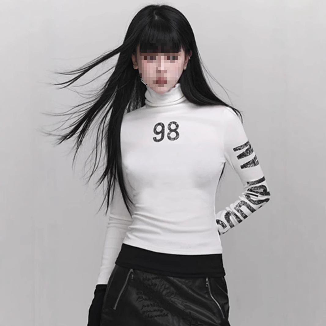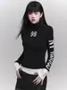 Estilo callejero americano transfronterizo cuello redondo estampado patrón ajuste ceñido súper cool minimalista se puede usar dentro top otoño camiseta chica caliente