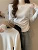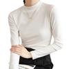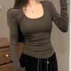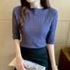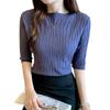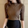 Camiseta básica de manga corta para mujer 2023 Otoño Nuevo delgada manga media color sólido estilo occidental top ajustado suéter