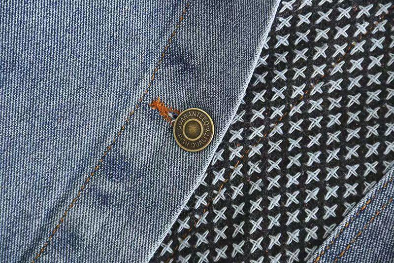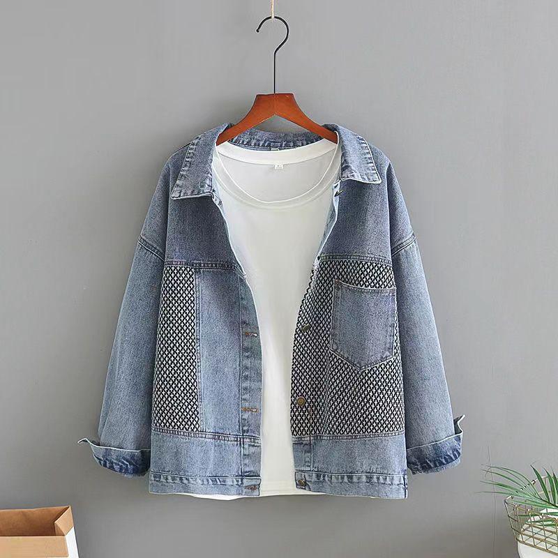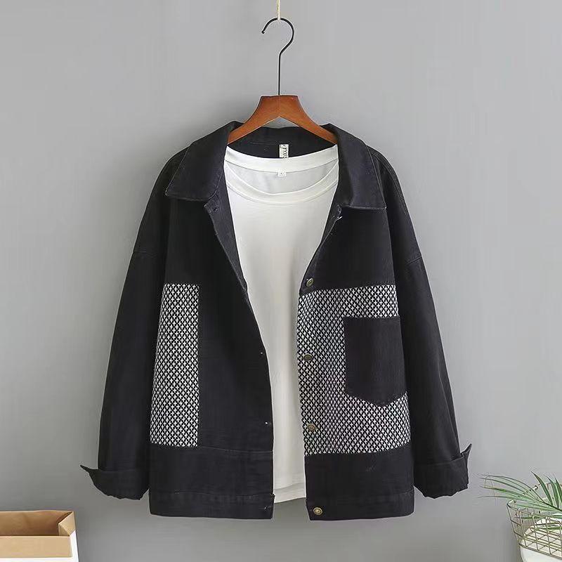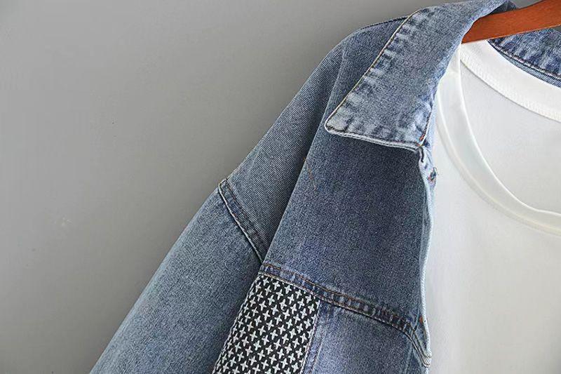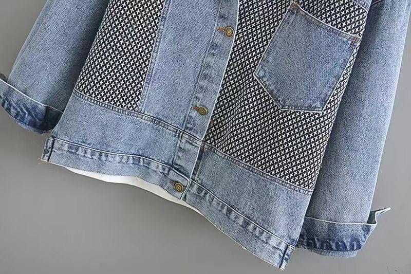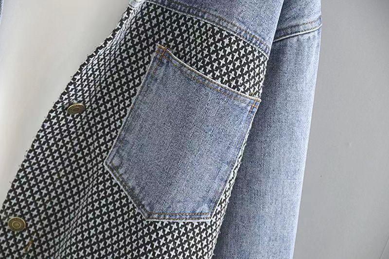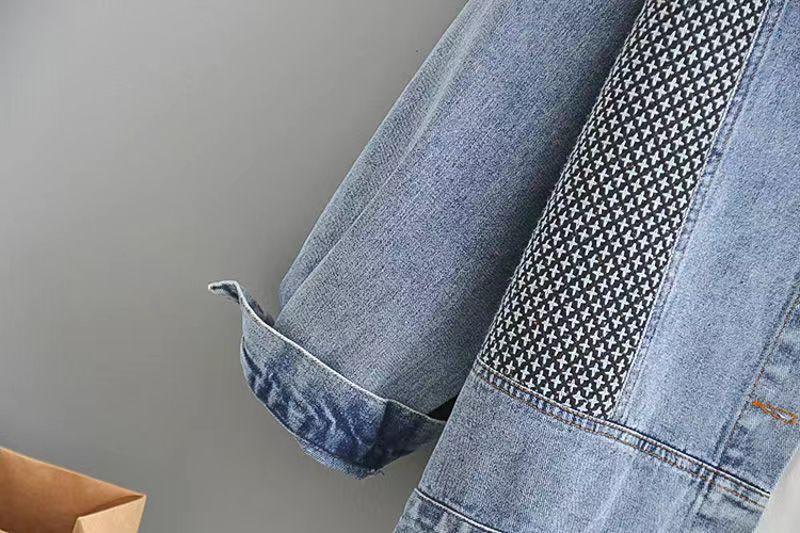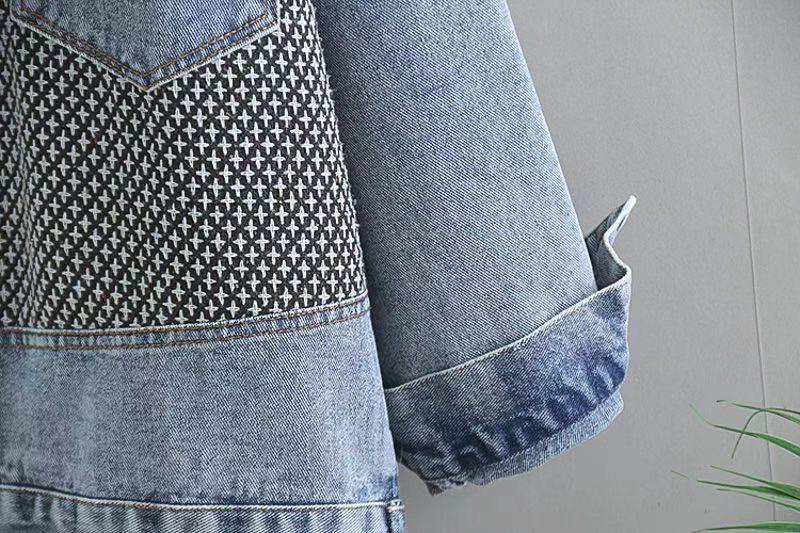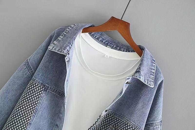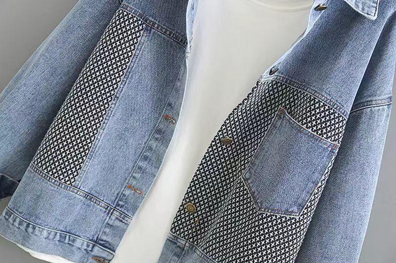 Chaqueta Casual de Mezclilla Estilo Coreano Empalmada a Color Talla Grande Slim 2023 Nueva Moda Moda Chaqueta de Mezclilla con Costuras para Mujer